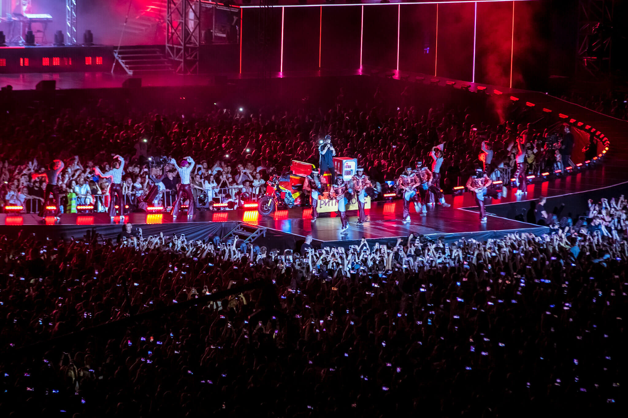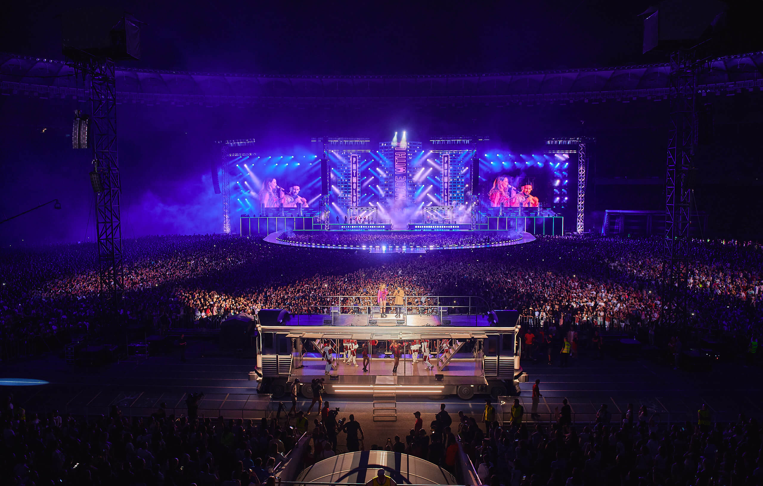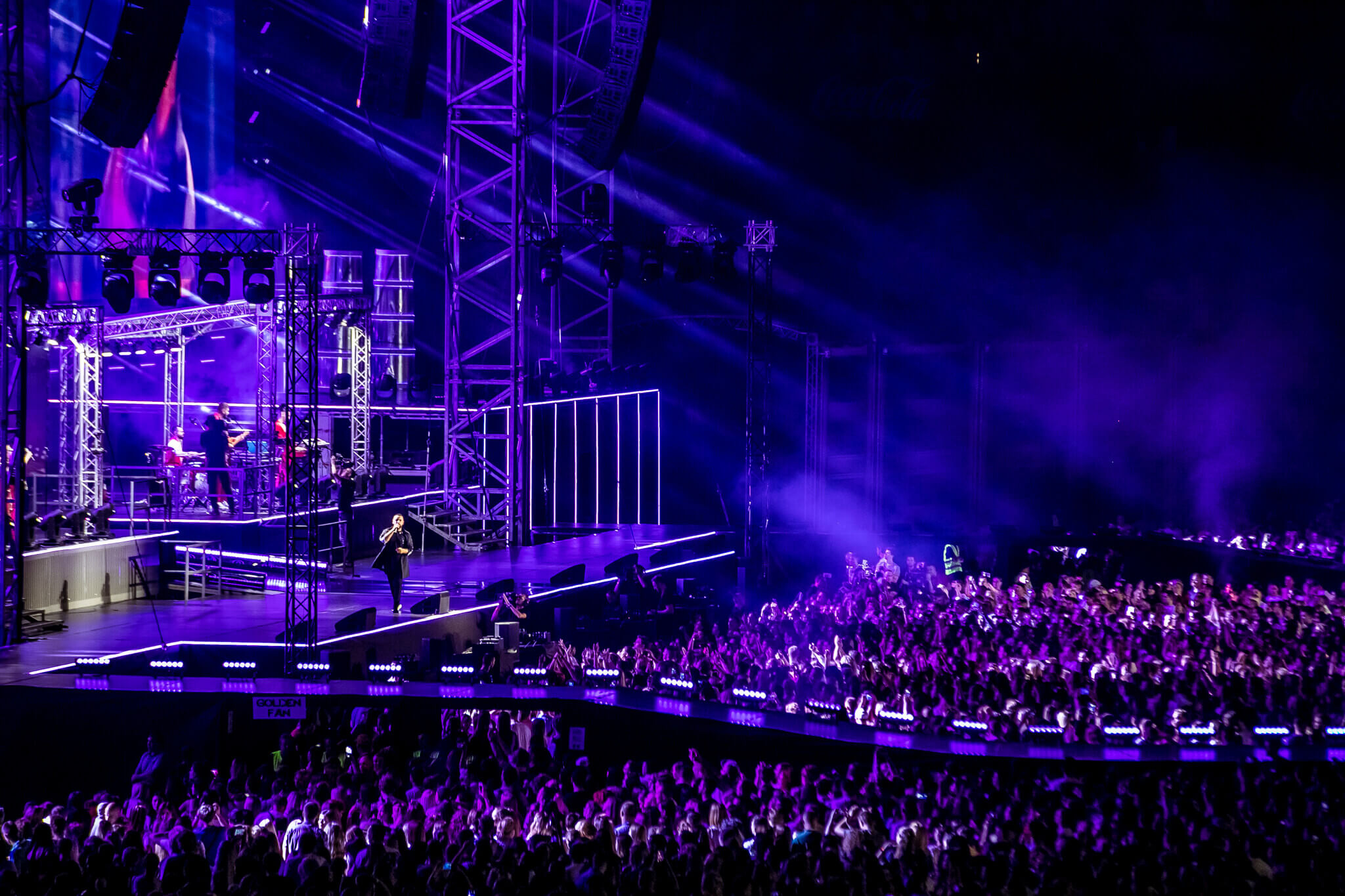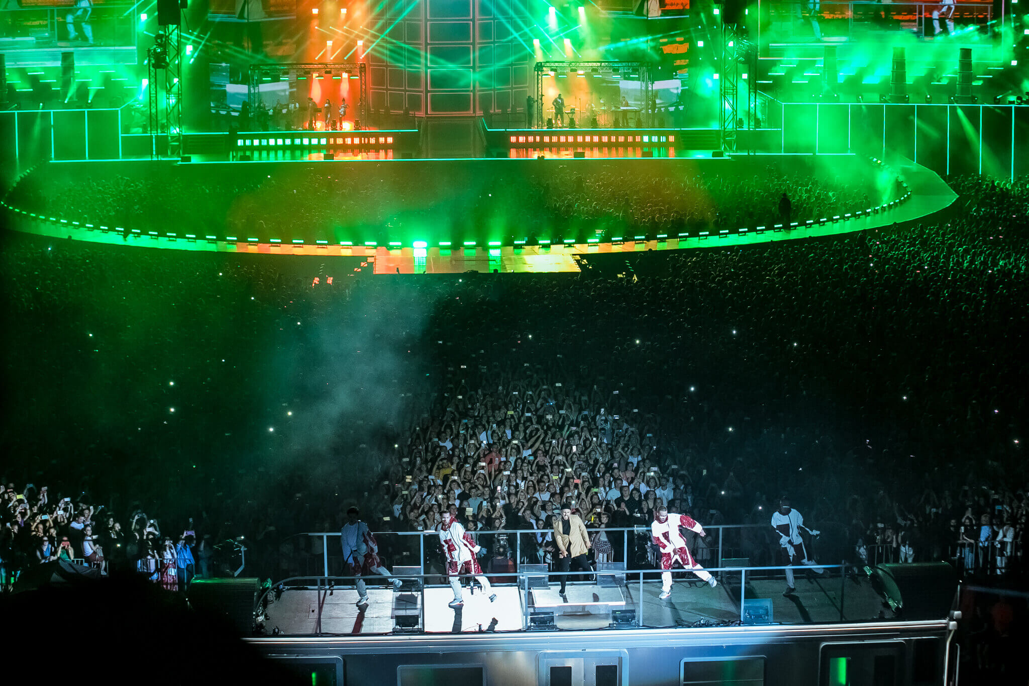 Одним из кульминационных моментов шоу стало появление музыканта на крыше вагона поезда. На нем мультиартист добрался до самых дальних секторов, чтобы быть еще ближе к своему слушателю. На сцене в этот вечер также появились и спели с Monatik дуэтом Надя Дорофеева, Alyona Alyona и Lida Lee. Также артист пригласил исполнить в дуэте композицию "Вечность" свою подопечную из проекта "Голос. Діти" Нино Басилаю.