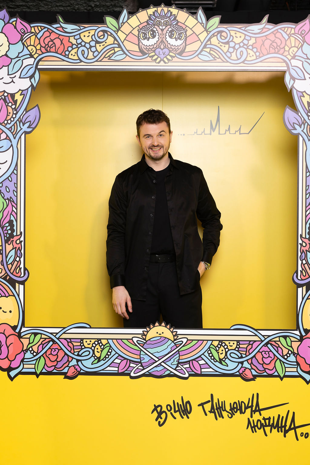 З моменту входу до простору «Вічно танцюючої людини» гості поринали у світ музики та візуального мистецтва: картини, артоб'єкти, актори та цитати з пісень на стінах і підлозі прокладали шлях до головної події вечора. Разом із партнерами заходу команда MONATIK реалізувала концептуальну ідею сцени у формі рамки, що підкреслила унікальність концертної програми та відсилала до обкладинки альбому артиста.