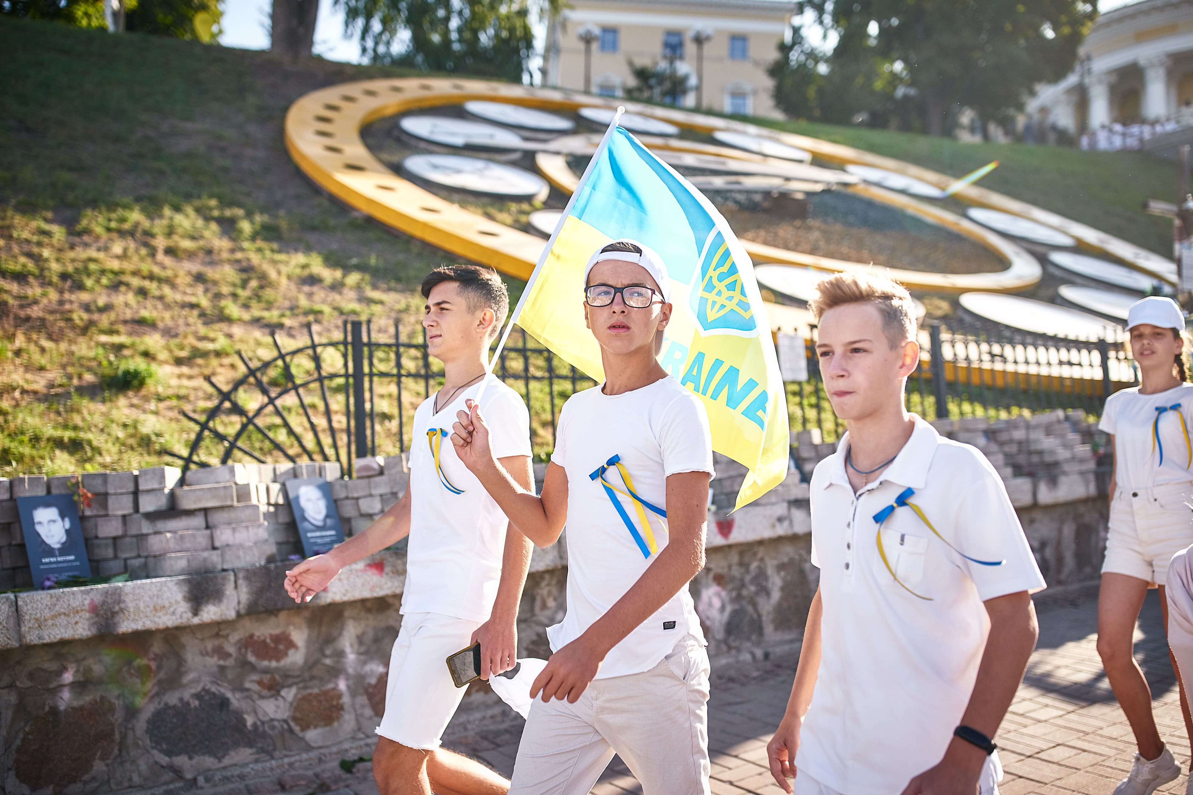 Потім Володимир Зеленський попрямував до дзвона під пішохідним мостом, де дитина, чий батько загинув рівно рік тому, захищаючи країну, запустила передзвін дзвонів в різних містах України. У цій же частині, саунд-продюсером якої виступив Євген Філатов (The Maneken), покладання квітів загиблим супроводжувалося вокалізом та грою на сопілці від ONUKA.