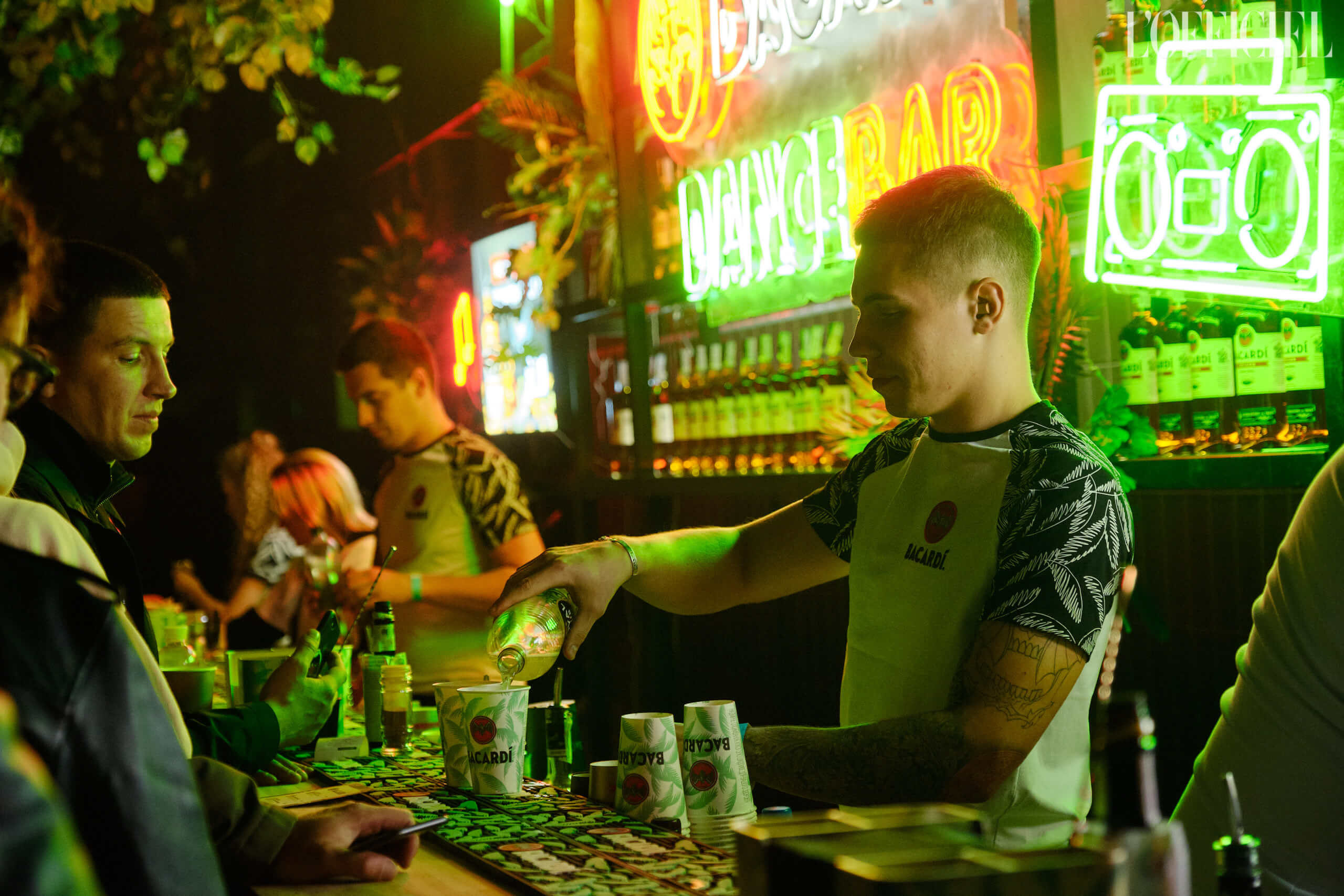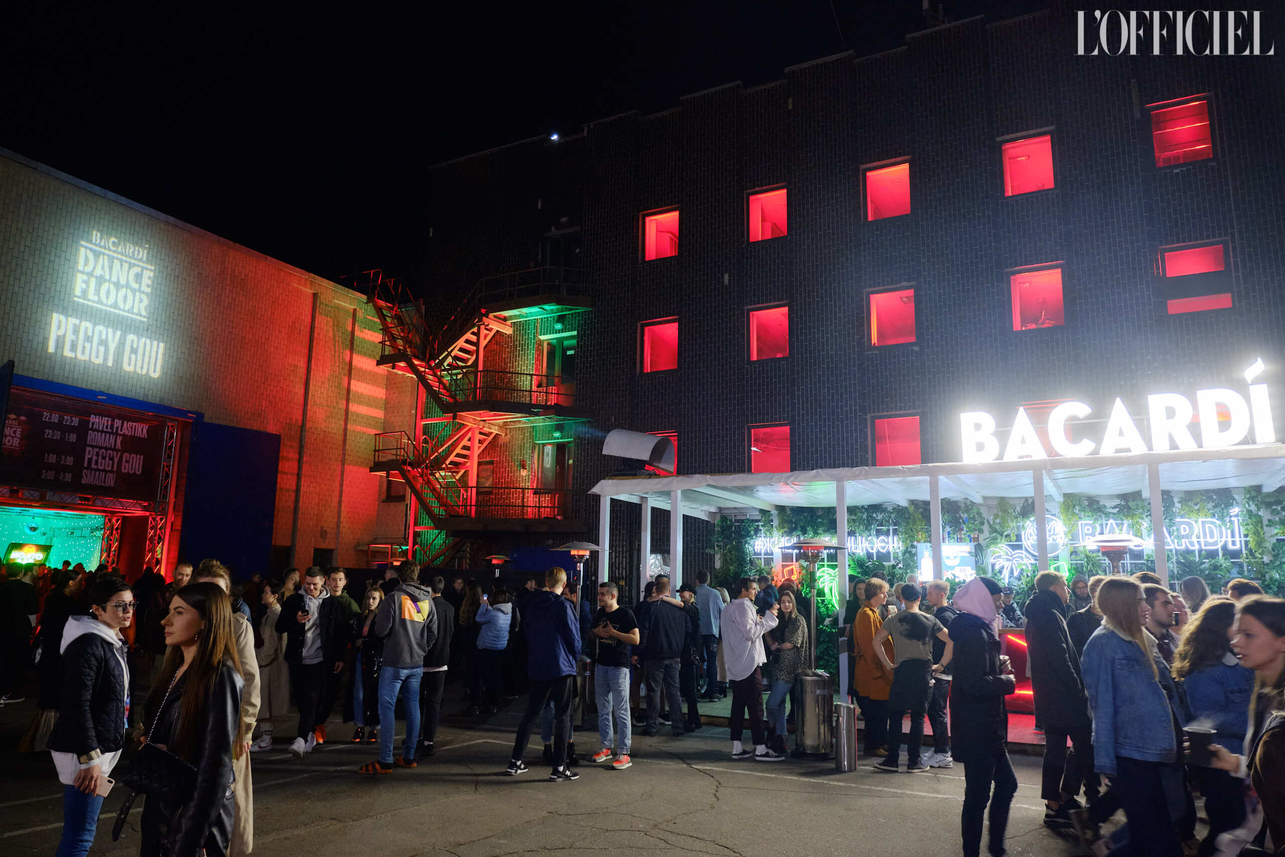 В качестве локации для ее выступления концертное агентство H2D выбрало пространство М82 – бывшую территорию завода Tetra Pak, превратив ее в ночной клуб за счет света и дым-машин. Огромную промышленную территорию разделили на тематические зоны, где можно было выпить коктейль на основе Bacardi, поваляться на кожаном диване в полутьме, слегка остыть после танцпола на улице и даже поесть вьетнамской еды. Увидеть и послушать Пегги вживую пришло несколько тысяч человек.