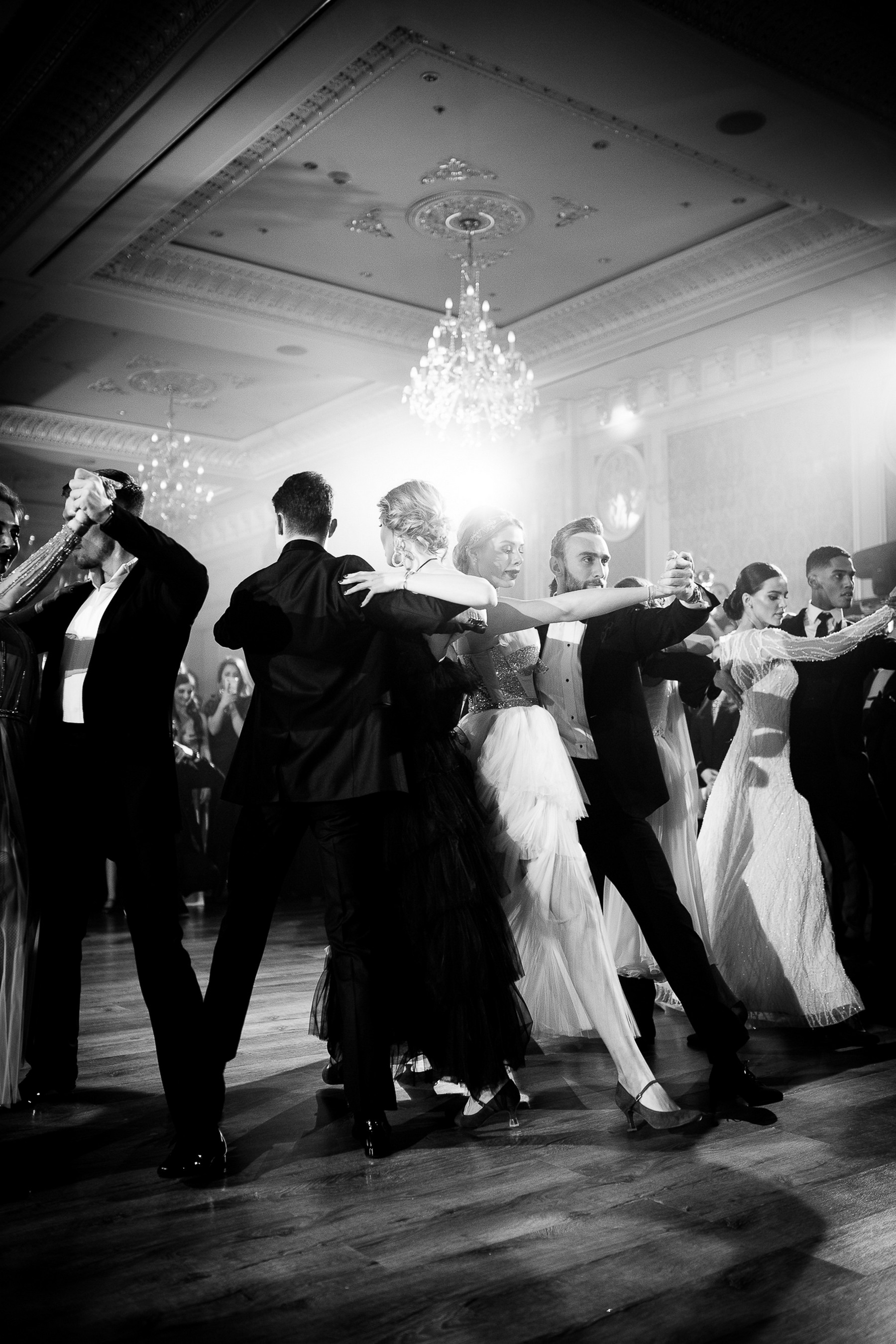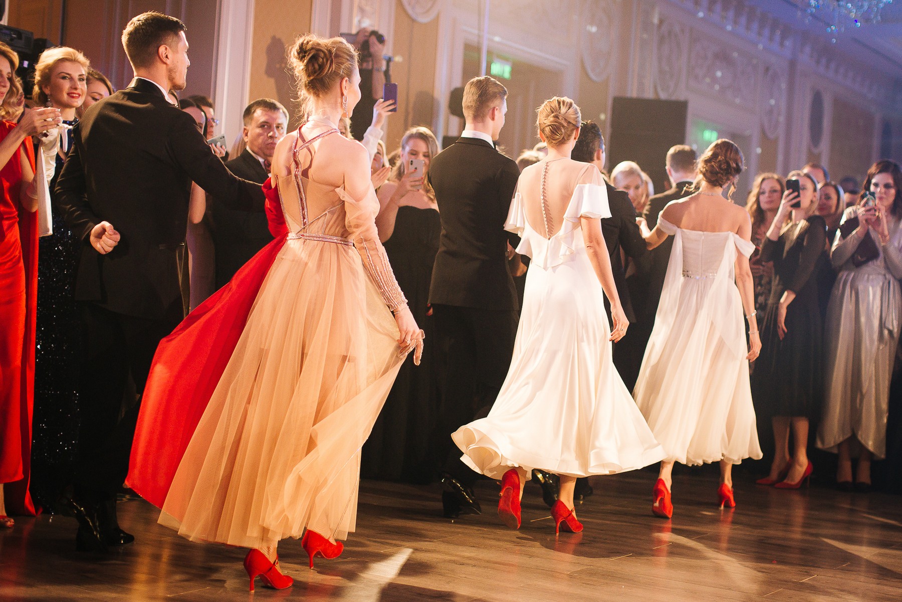 Три раза в неделю в течение месяца пары собирались в танцевальной студии Goldance, чтобы подготовиться к балу и выучить два танца – танго и вальс. Уроки не прошли даром – на паркете от пар невозможно было оторвать глаз! Смотрите, как это было: