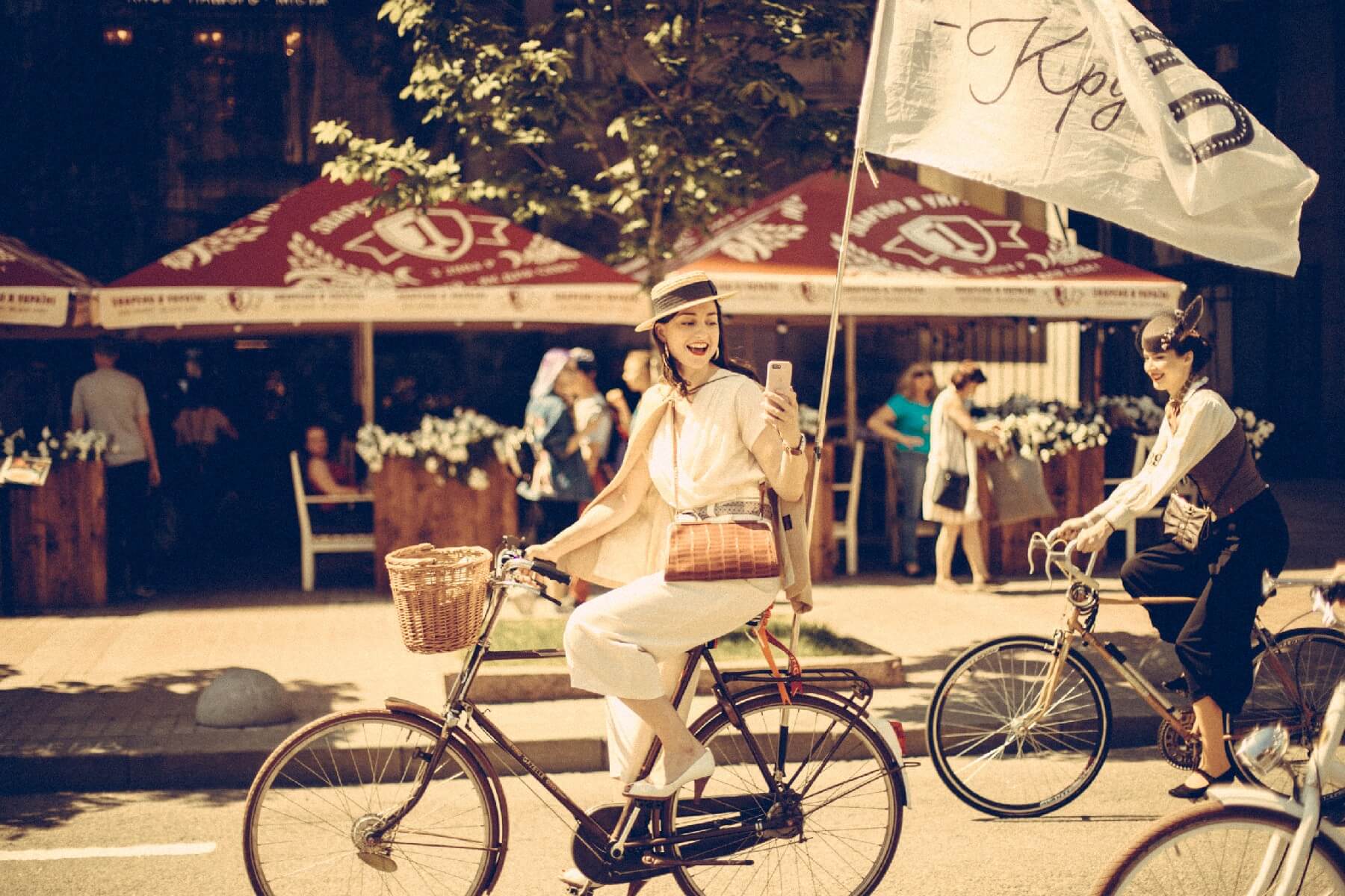 19 мая по улицам Киева проехали колонны велосипедистов, одетых в классические костюмы и ретрообразы. Традиция восстановлена после годового перерыва.