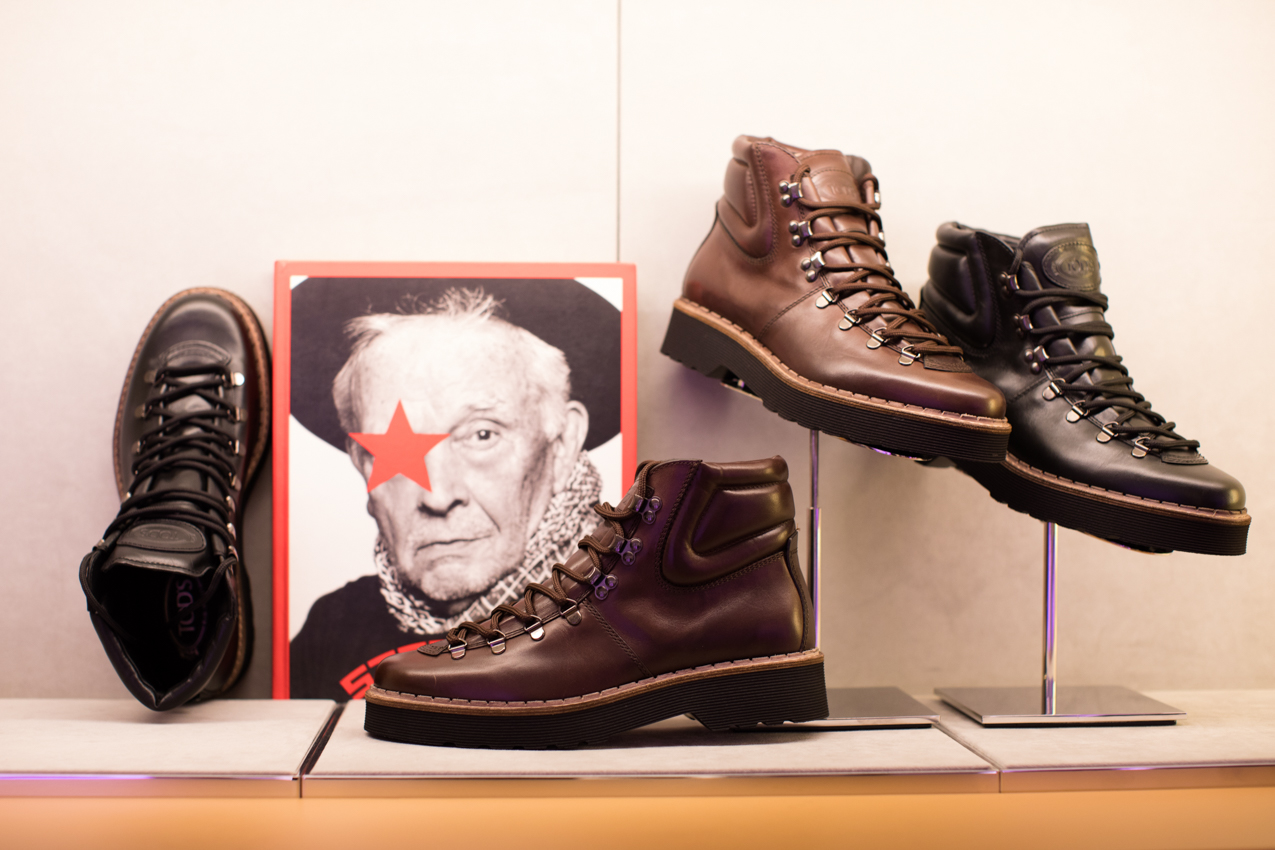 В бутике представлены как женская, так и мужская коллекция бренда. Среди них женские знаковые модели Tod’s с подчеркнуто большими стежками и высокими chunky-каблуками, сумки с контрастной комбинацией цветов, милитари-аксессуары. И мужские классические, элегантные, аристократичные и немного бунтарские модели: туфли для вождения (driving shoes) из замши или телячьей кожи, лоферы, зимние ботинки в винтажном стиле.