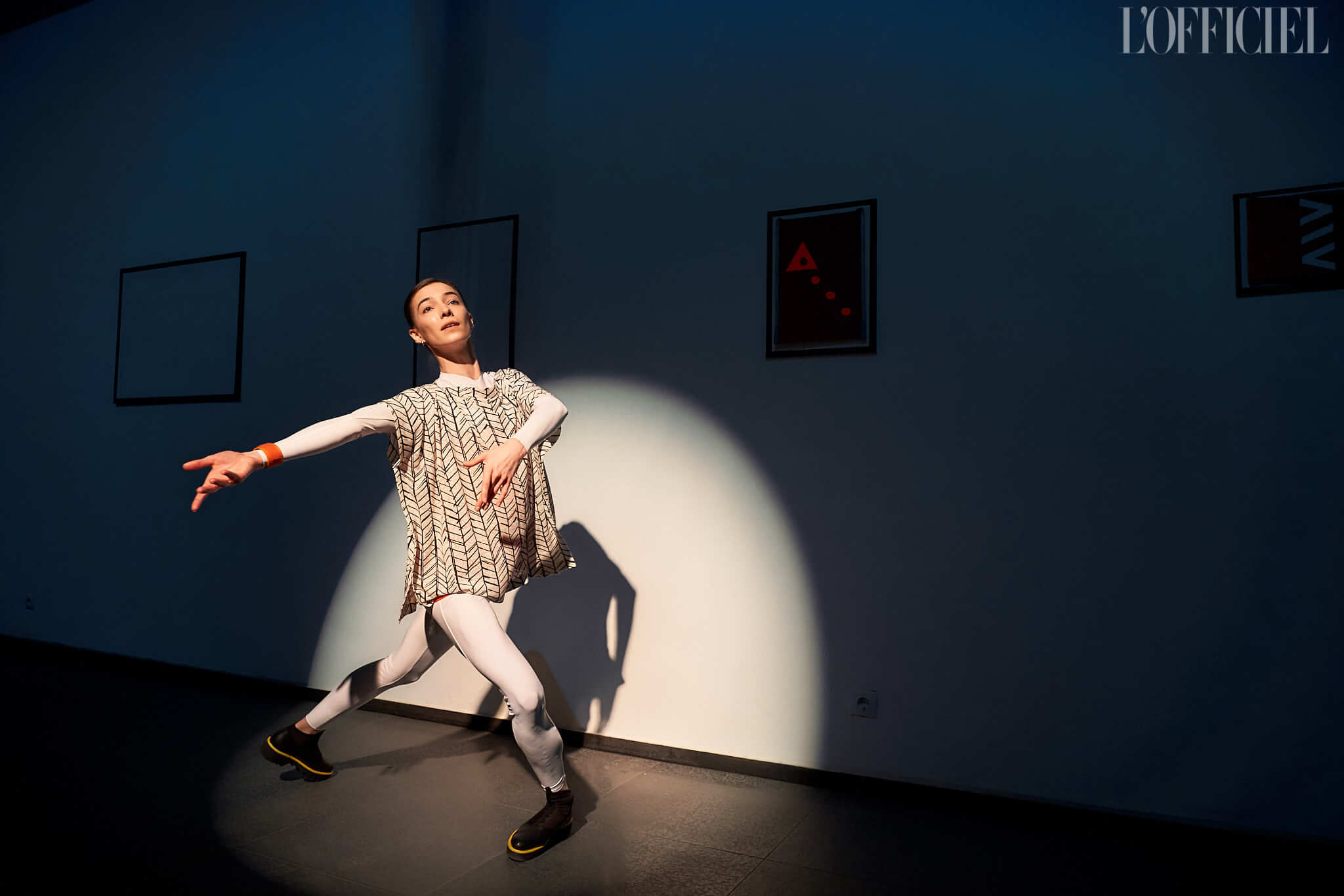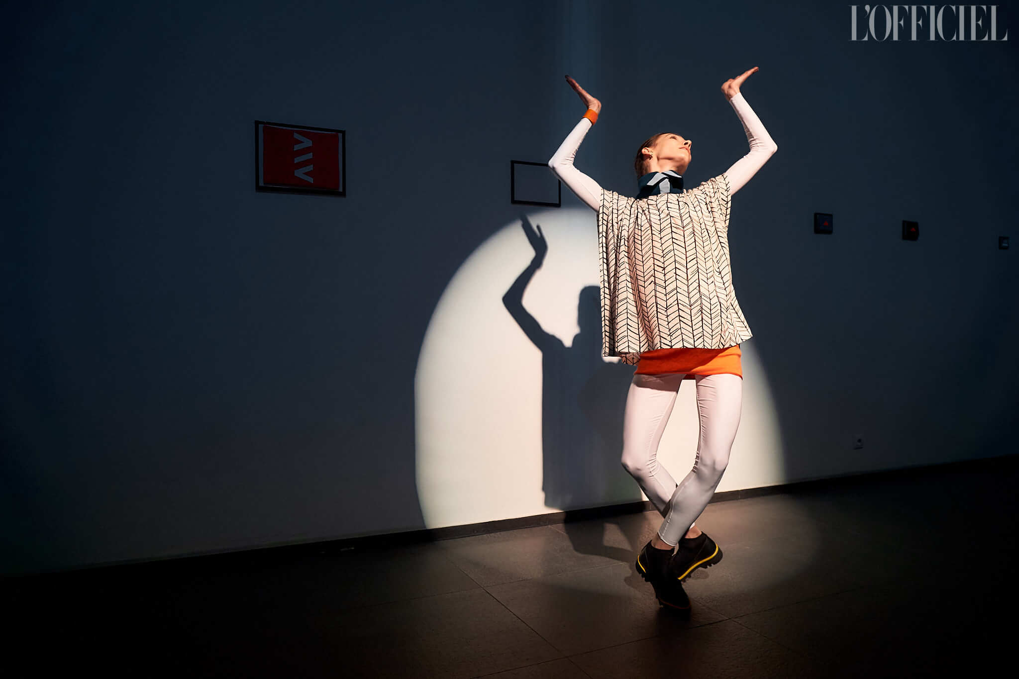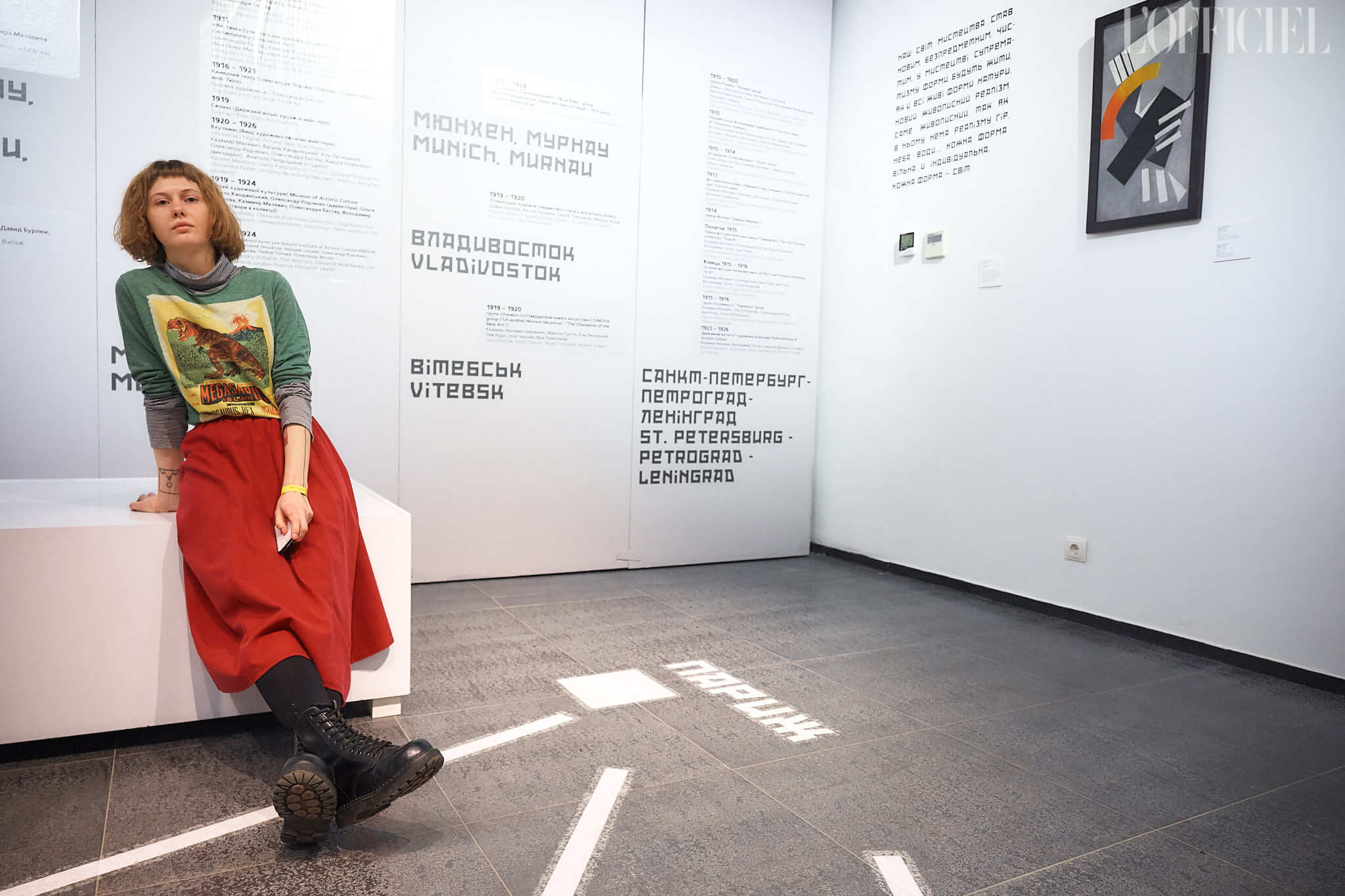 Гости презентации собрались в большом зале обновленного центра современного искусства М17 и рассматривали супрематические картины, в непривычном порядке развешенные на стене. В ожидании начала показа все старались занять место в центре зала, где были установлены высокие технические конструкции, — казалось, именно там будет происходить что-то важное, однако лучом мягкого света работник зала вдруг выхватил пустоту у стены с картинами и гостям пришлось как по команде выстроиться вдоль, чтобы увидеть происходящее. Под музыку композитора Джона Адамса из темноты вышла балерина в белоснежном трико и задумчиво, с интересом, начала разглядывать картины вместе со зрителями. Спустя несколько минут девушка, демонстрируя экспрессивный и завораживающий танец, начала подходить к каждой из картин и буквально вынимать содержимое из рамы. На глазах у восторженных и по-детски радостно удивленных гостей балерина надела на себя все картины по очереди — красный квадрат превратился в мини-платье, большое голубое полотно с разноцветными элементами, которое казалось до этого работой художника-авангардиста середины прошлого века, — в спортивный плащ на кулисках, а висевшие рядом крошечные картины одна за другой — в шейный платок, браслет и сумку.