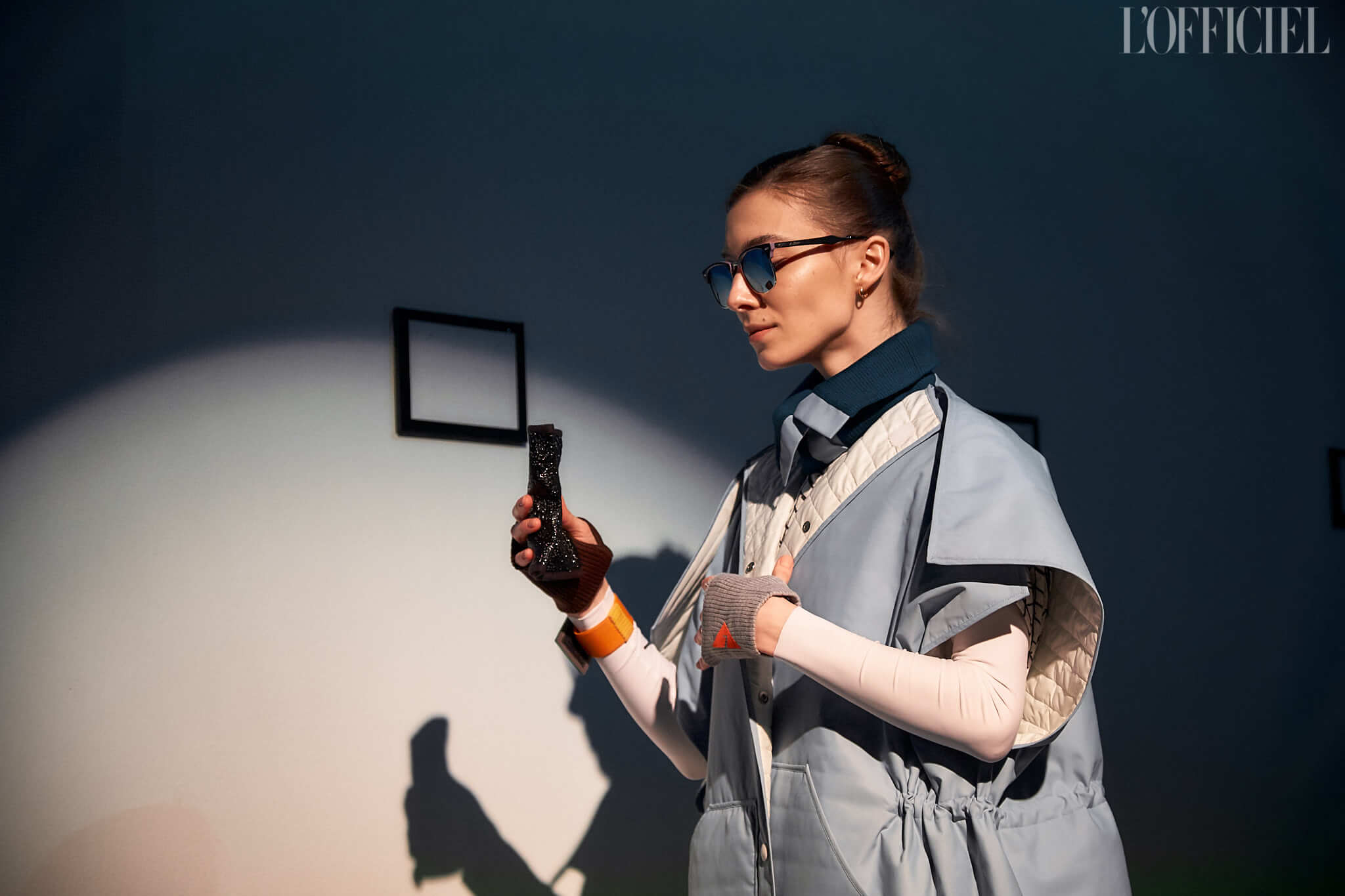 Федор Возианов визуализировал размышления, и картины трансформировались в актуальный и функциональный модный образ — одежду, которую хочется тут же надеть. Хореографическая постановка Артёма Гордеева в исполнении участницы балета погрузила гостей в атмосферу философской задумчивости.