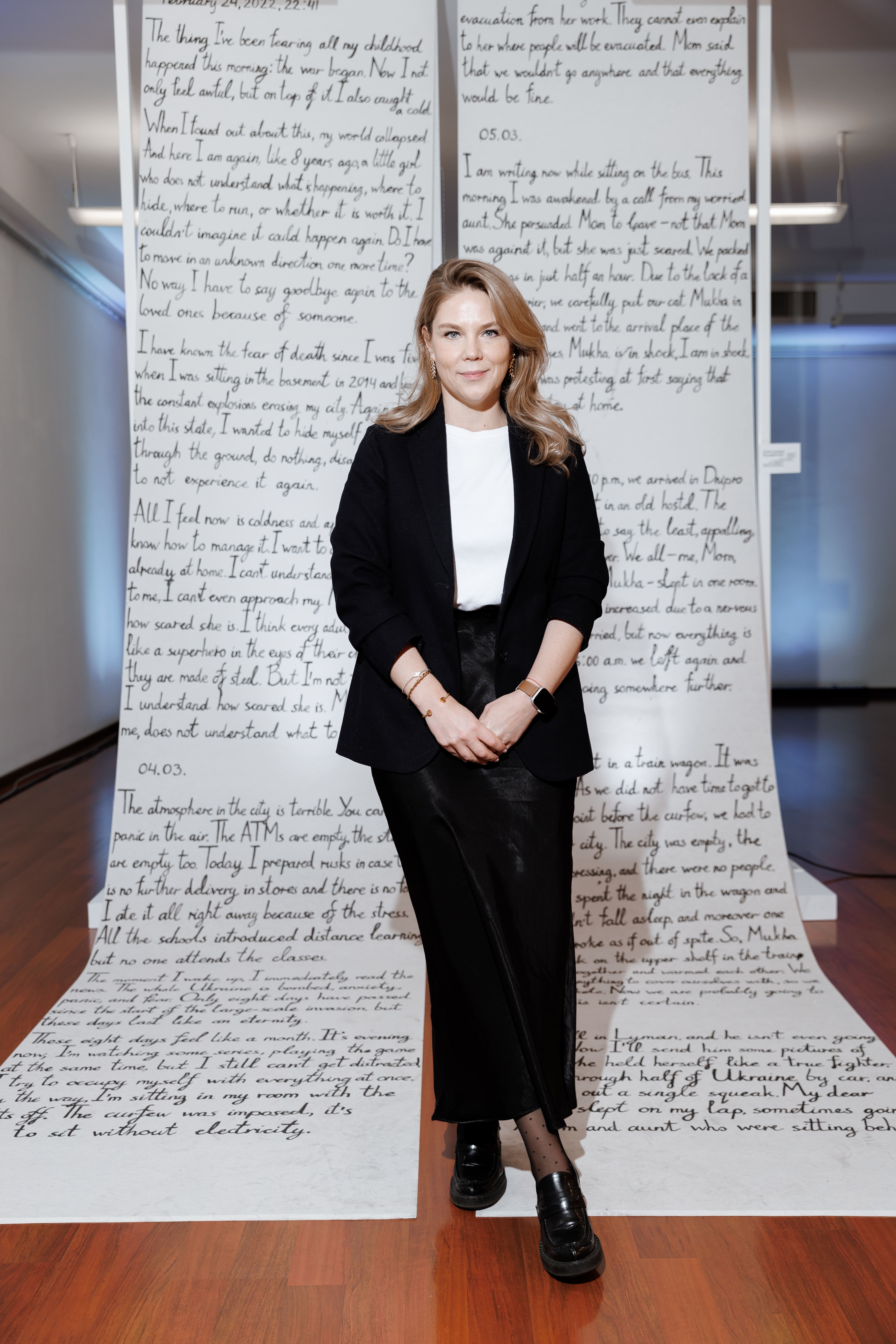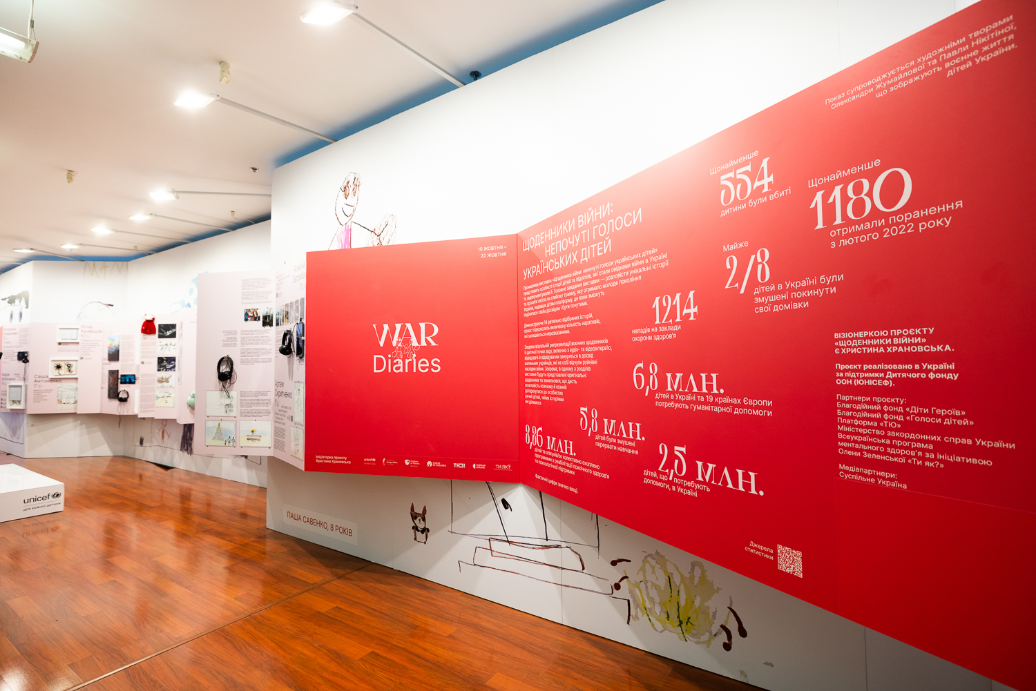 «У нас немає розкоші мовчати. У нас немає розкоші не розказати , не показати і не діяти.Тому голоси та щемливі історії українських дітей будуть почуті! Ми раді, що нарешті виставка відкрилась тут. Вдома. В Україні для українців. Ця виставка складається з візуального військового щоденника очима дітей, який представлений тут, на стендах. У таких щоденниках біль, страх і справжність. Дитячі очі бачать цю війну по-іншому, тому, мені здається, на відміну від дорослих, загальний голос українських дітей звучить як запитання: «мамо, чому нас вбивають? Окремий блок — присвячений предметам, особистим речам дітей, історії яких розповідає проєкт», — розповіла Христина Храновська.