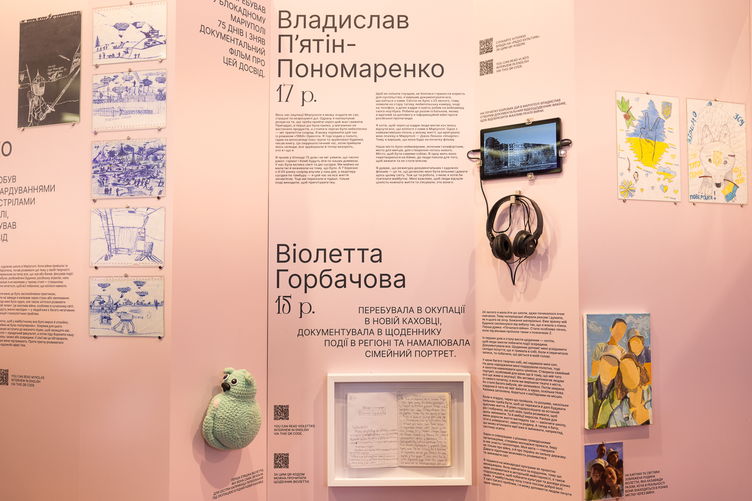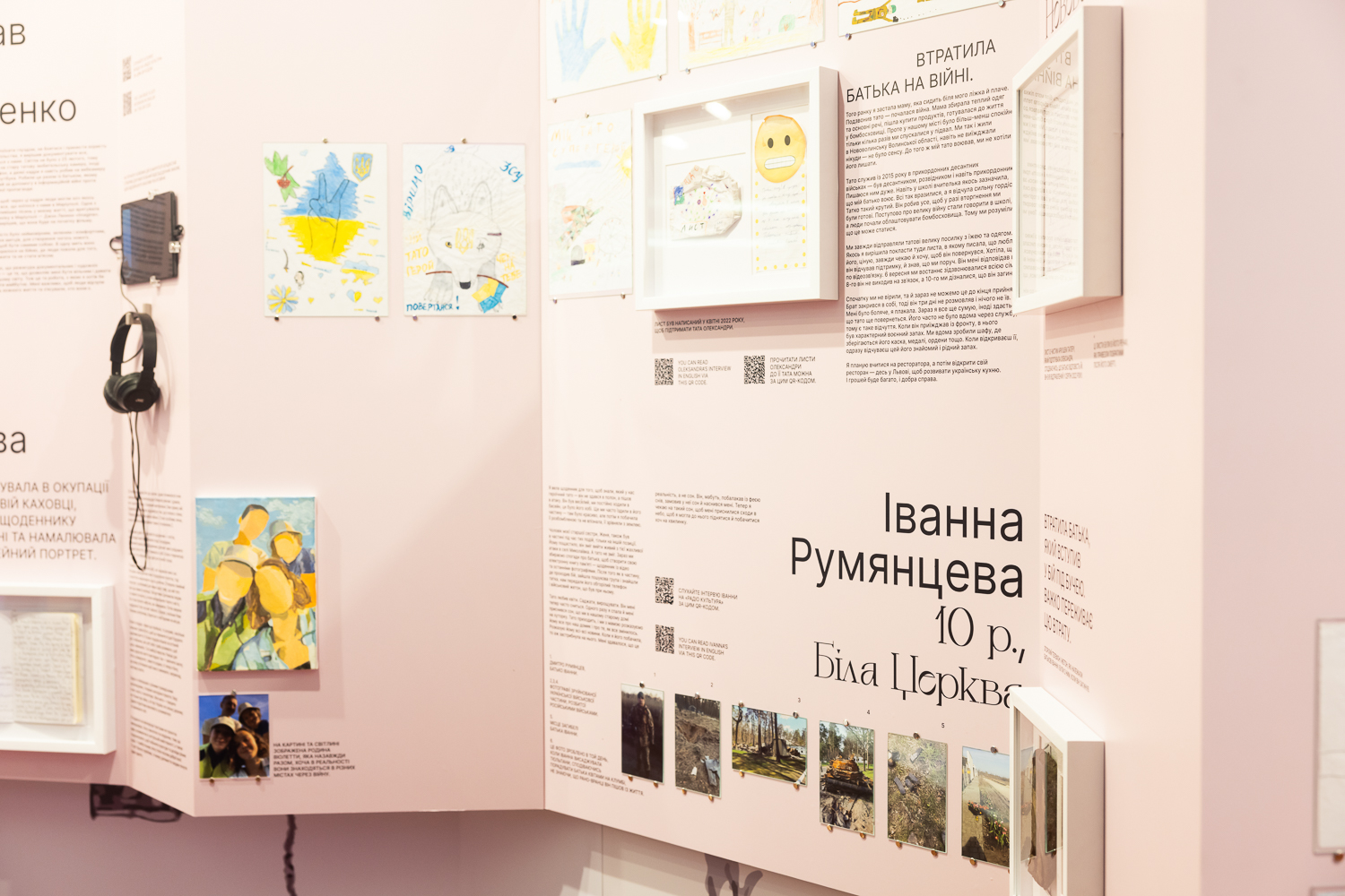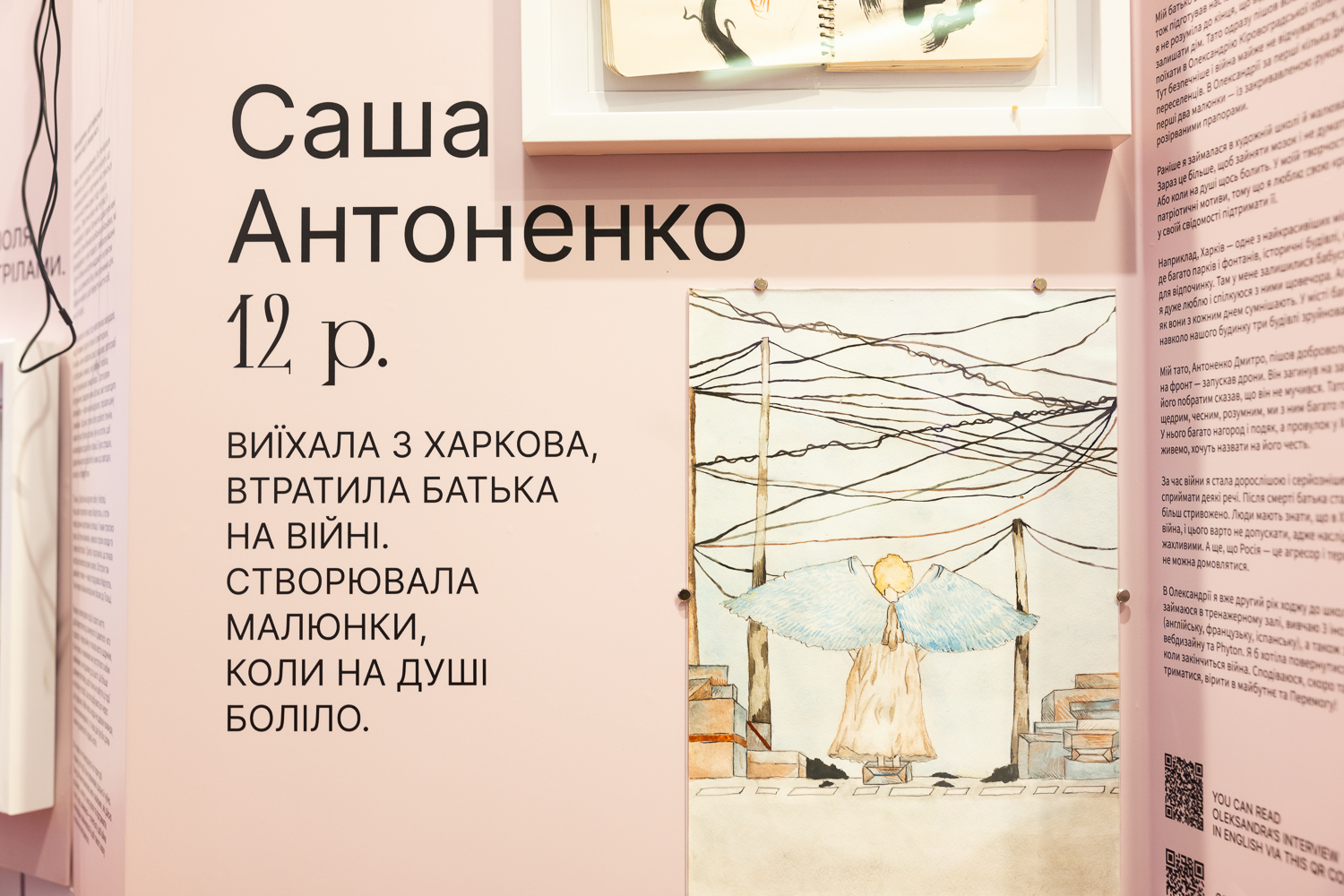 На виставці представлені дитячі щоденники, нотатки, малюнки та особисті речі українських дітей. Загалом виставка охоплює 14 зворушливих історій дітей з різних куточків України: Донеччини, Харківщини, Херсонщини, Київщини.