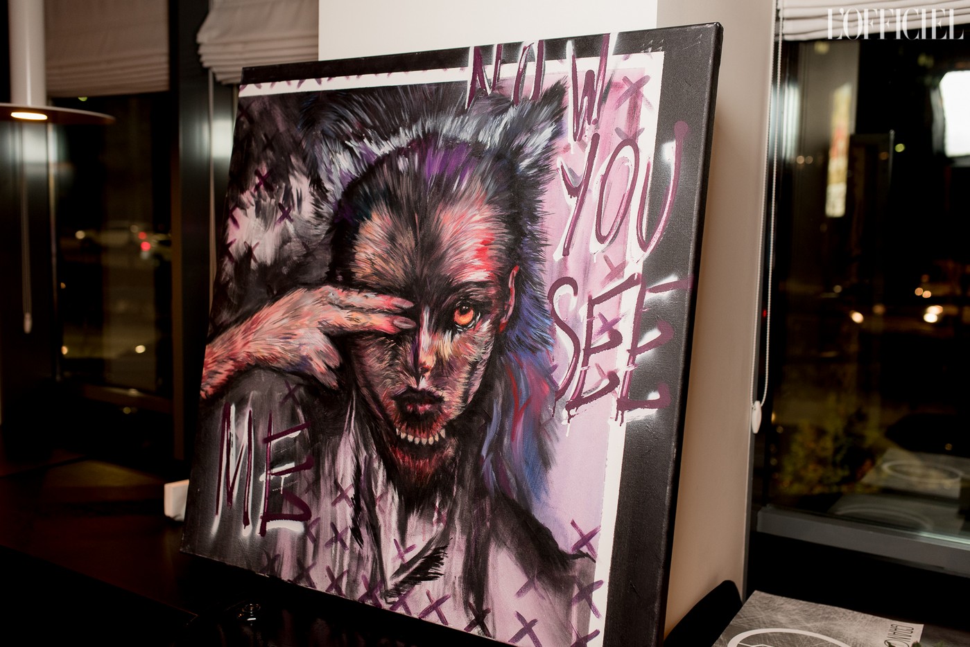 "В последней серии картин я затрагиваю тему, которая актуальна для украинской молодежи и для меня лично. Уже можно наблюдать изменения в менталитете юного населения, их личных свобод и способов отображать и воплощать собственные интересы. С помощью образа волка я изображаю портрет молодого украинца, который карабкается вверх по тернистому склону, не желая мириться с устоями, играя по собственным правилам, создавая новое и выгрызая возможности на пути к стране и культуре, которой он мог бы гордиться", – говорит художница.