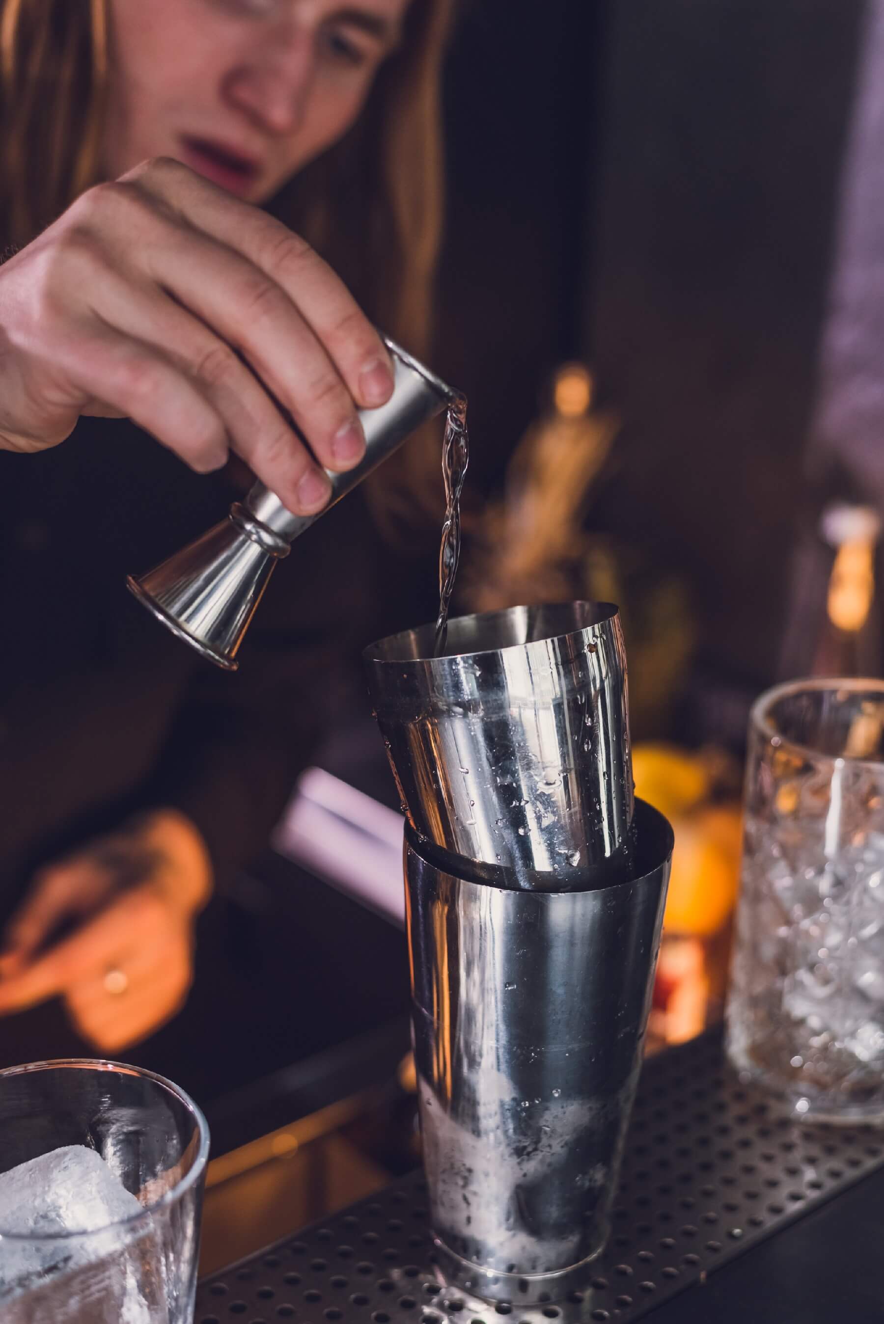 2. Отправляем 50 мл хорошей водки в шейкер.