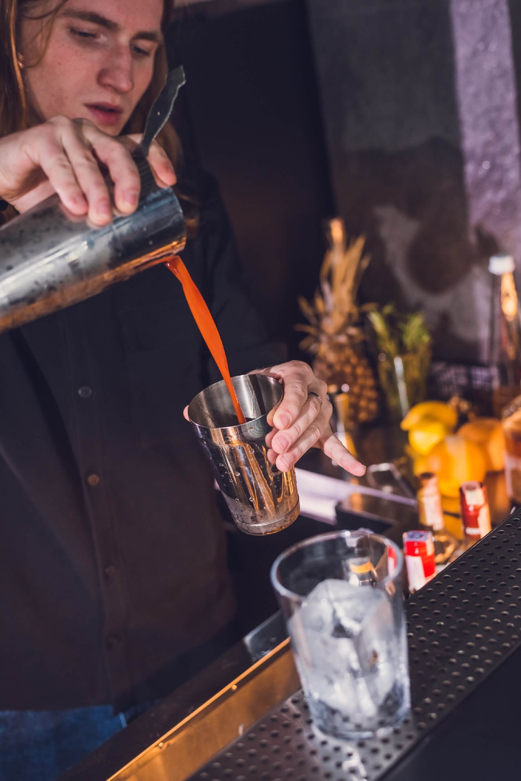 4. И вот тут самое интересное:  виртуозно переливать коктейль из одной части шейкера в другую - у вас вряд ли получится сразу. Пару раз помоете полы дома, такая цена за хорошо обогащенный кислородом напиток. Для ленивых - просто хорошенько перемешайте ингредиенты в стакане прямо со льдом.