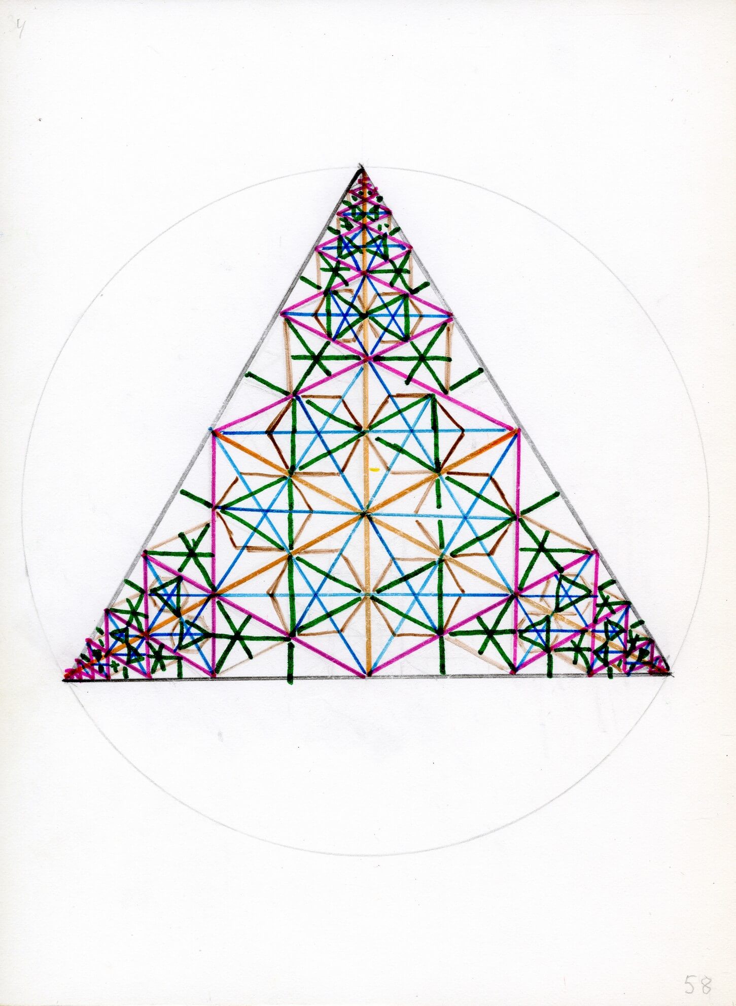 "Нас интересовали прежде всего его "Книги схем", которые состоят из текстов, в том числе поэтических, и рисунков/диаграмм. – говорит участница кураторской команды Documenta 14 Елена Сорокина. – Эти Книги можно описать как индивидуальную космологию, его собственную систему мироздания, над которой он работал более 30 лет. – "Книги схем" – это монументальный труд в стиле "ведического структурализма". Если угодно, визуальность их выстроена сугубо математически – Ламах начинает с простейших элементов, например круга – с базовой формы или формулы, поэтапно усложняя ее".
