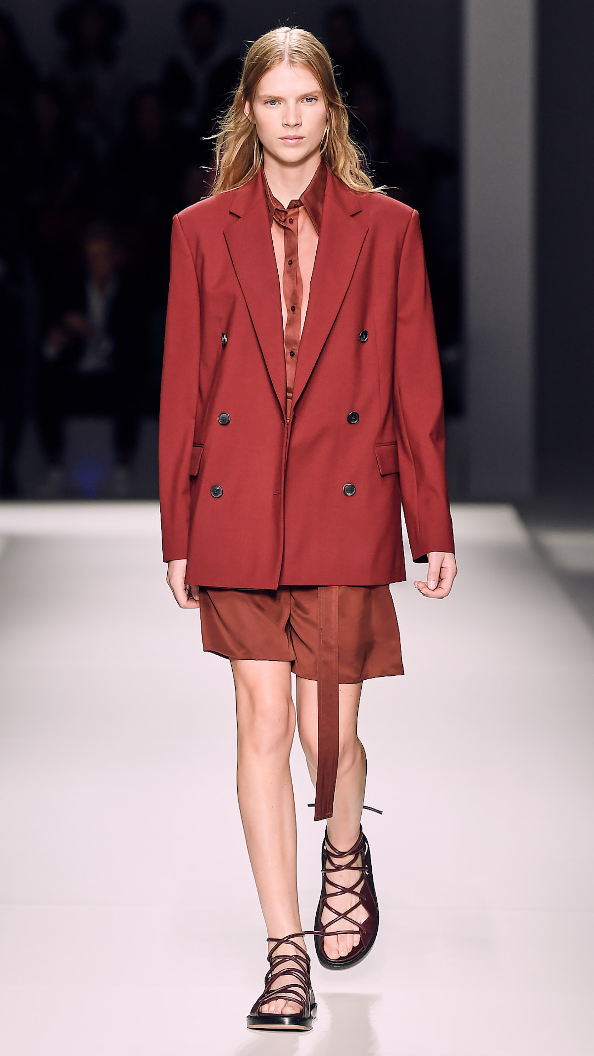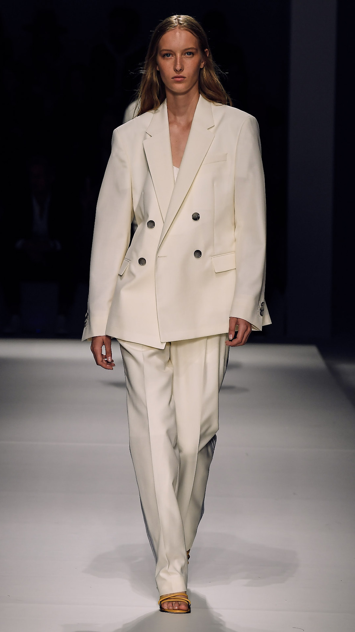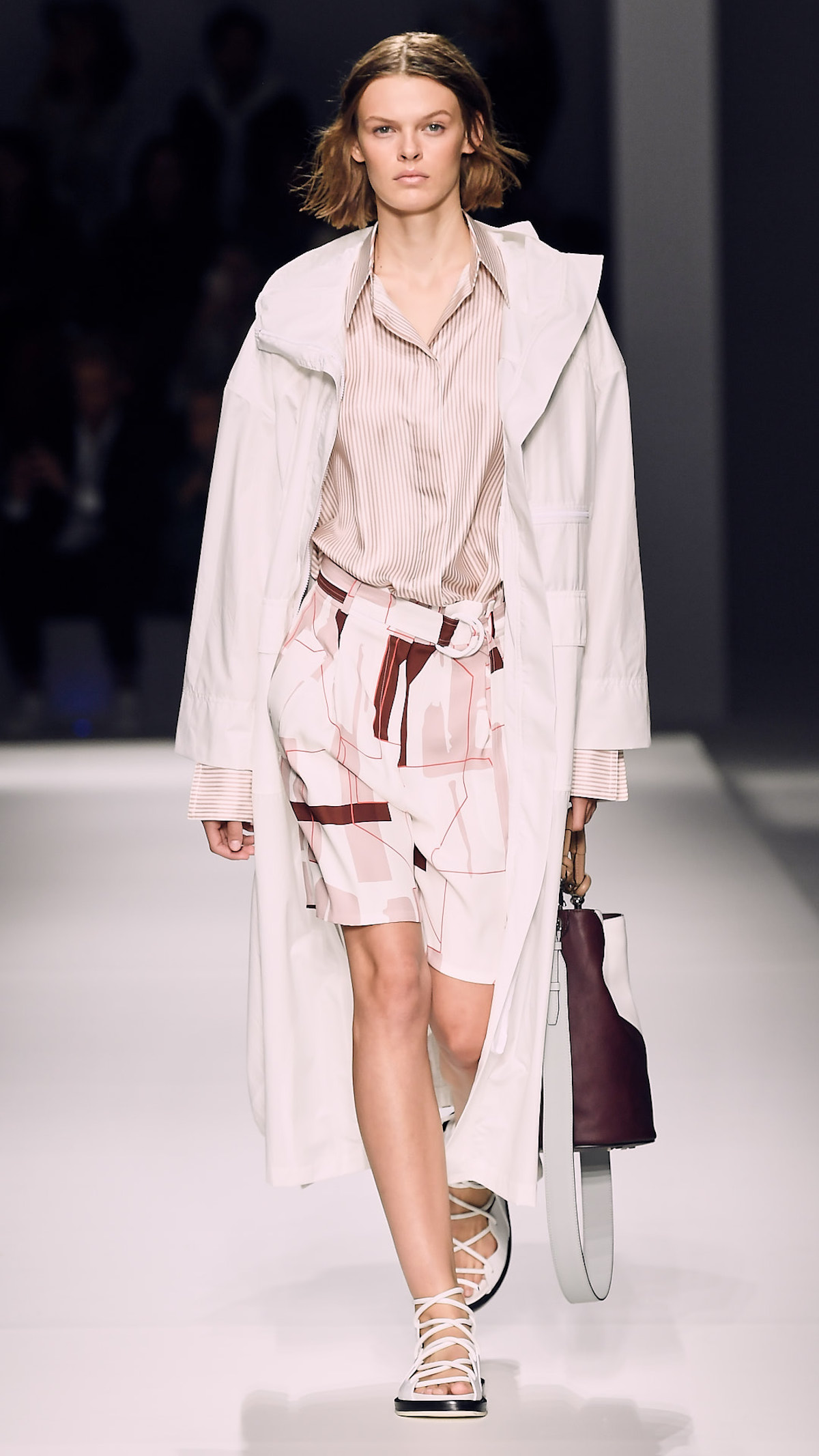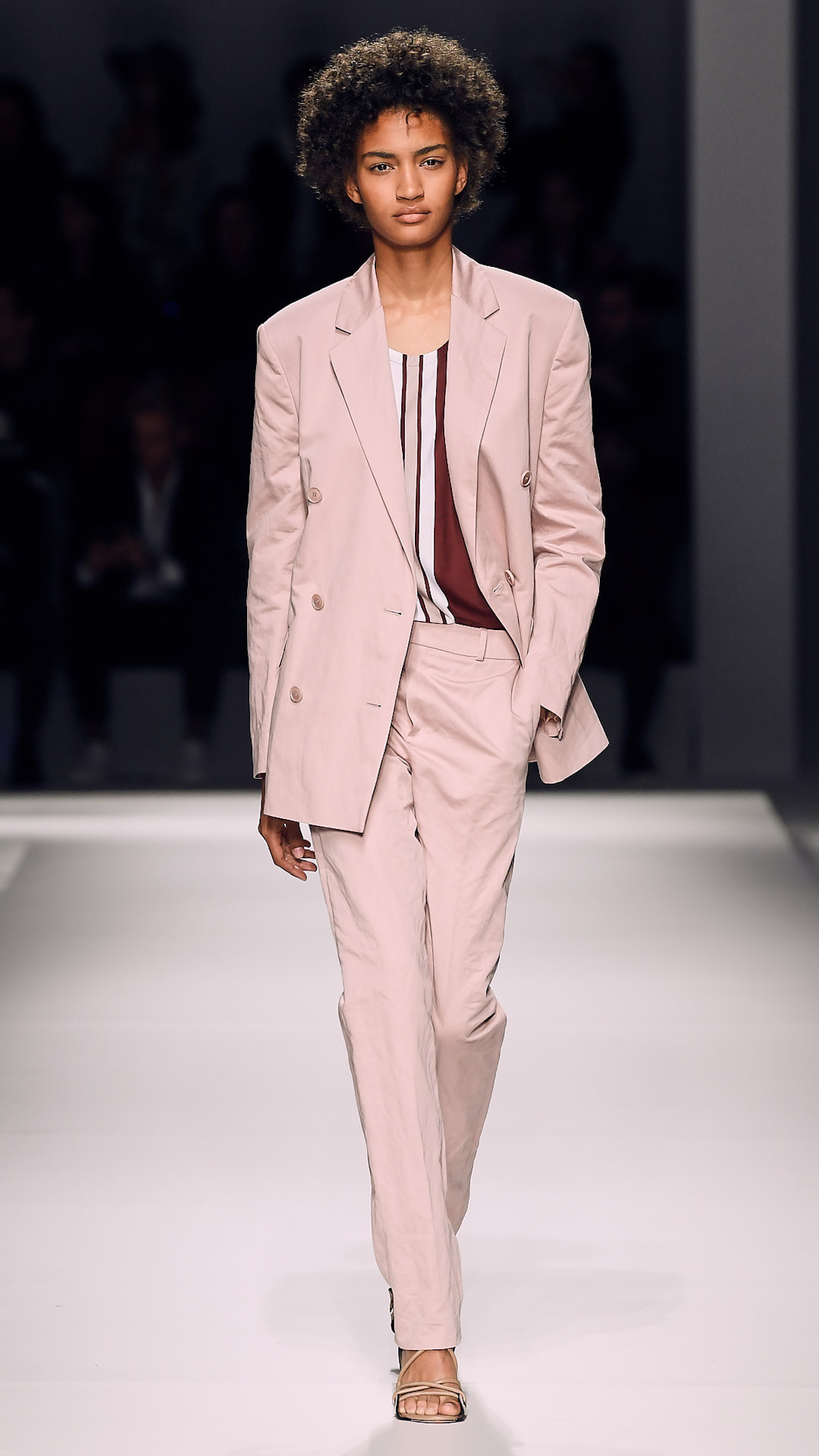 Креативный руководитель бренда Инго Вилтс презентовал одежду для мужчин и женщин в одной коллекции, выдержанной в классическом для Boss элегантном и лаконичном стиле. Впрочем, дизайнер придерживался тематического летнего дресс-кода: свободный крой, воздушные ткани, расслабленная небрежность и отсутствие сложных текстур. На светлом прямоугольном подиуме без лишних декораций хорошо прослеживалась динамика цветовой палитры от луков в приглушенных оттенках розового и голубого, переходящих в насыщенный желтый, темно-синий и цвет бургунди, до закрывающих показ белоснежных нарядов.
