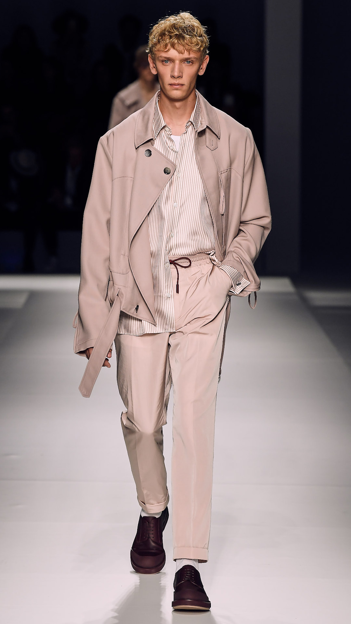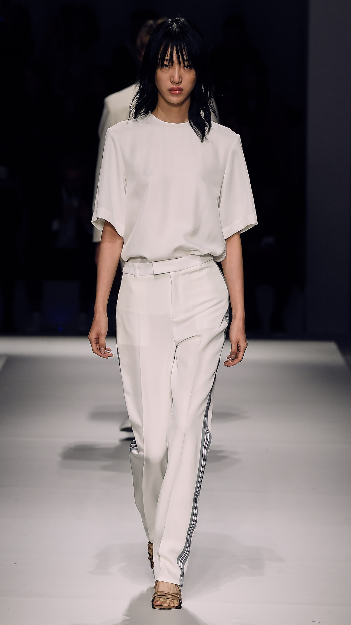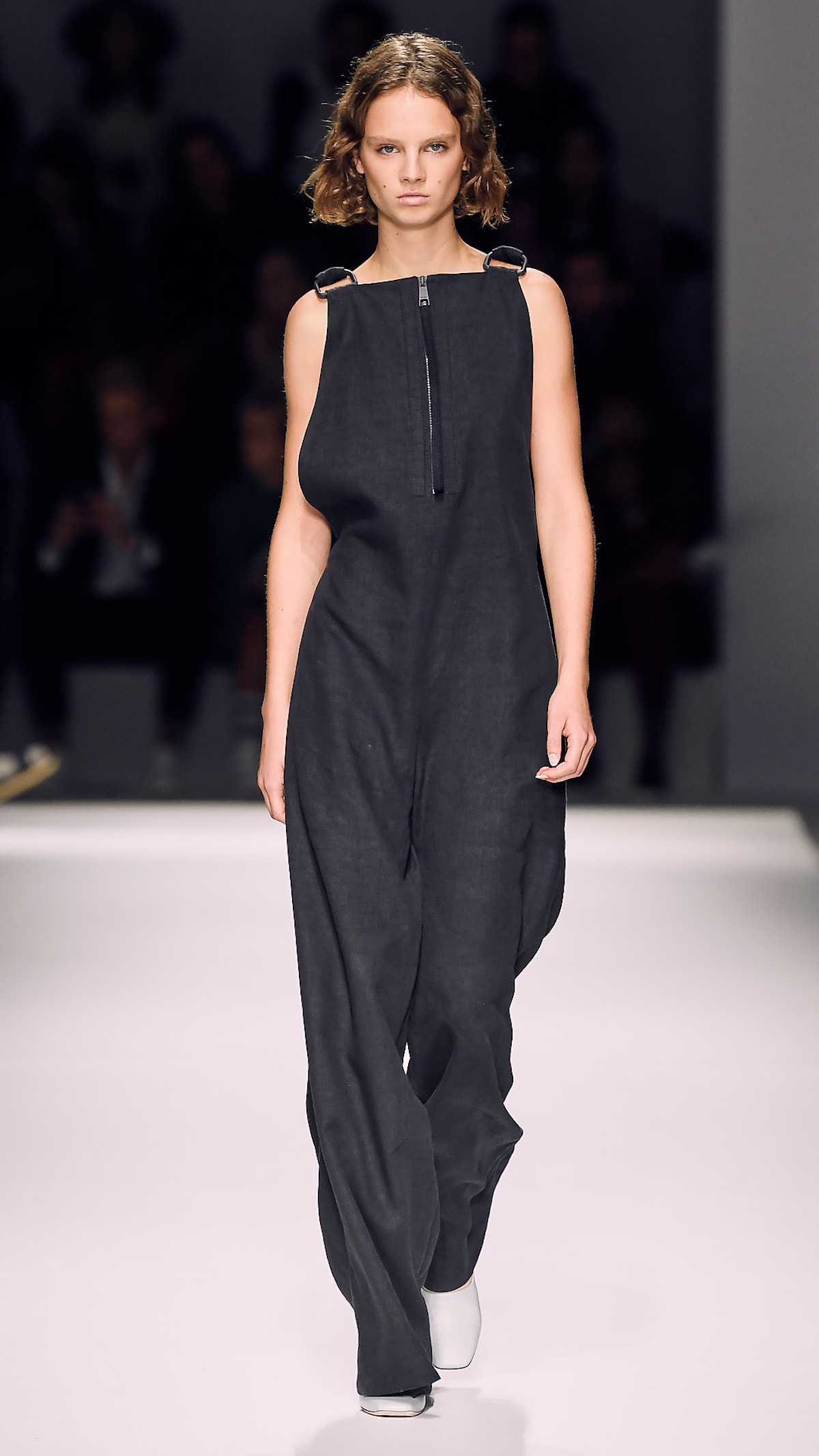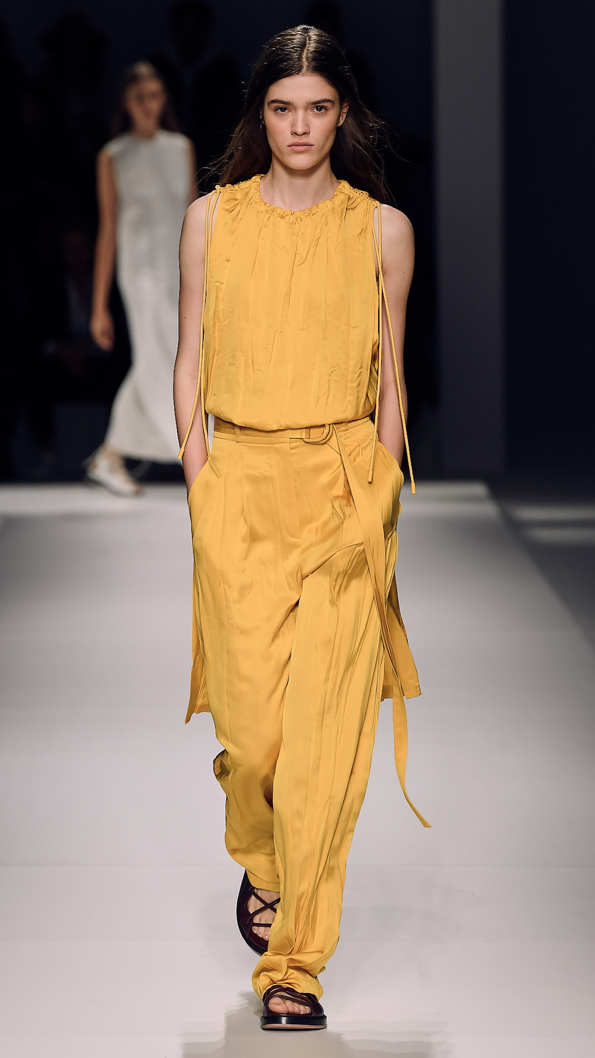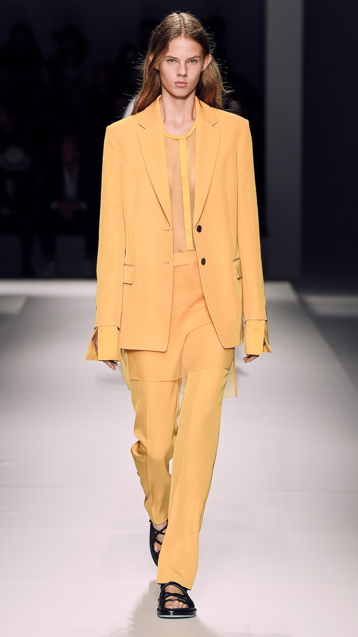 Креативный руководитель бренда Инго Вилтс презентовал одежду для мужчин и женщин в одной коллекции, выдержанной в классическом для Boss элегантном и лаконичном стиле. Впрочем, дизайнер придерживался тематического летнего дресс-кода: свободный крой, воздушные ткани, расслабленная небрежность и отсутствие сложных текстур. На светлом прямоугольном подиуме без лишних декораций хорошо прослеживалась динамика цветовой палитры от луков в приглушенных оттенках розового и голубого, переходящих в насыщенный желтый, темно-синий и цвет бургунди, до закрывающих показ белоснежных нарядов.