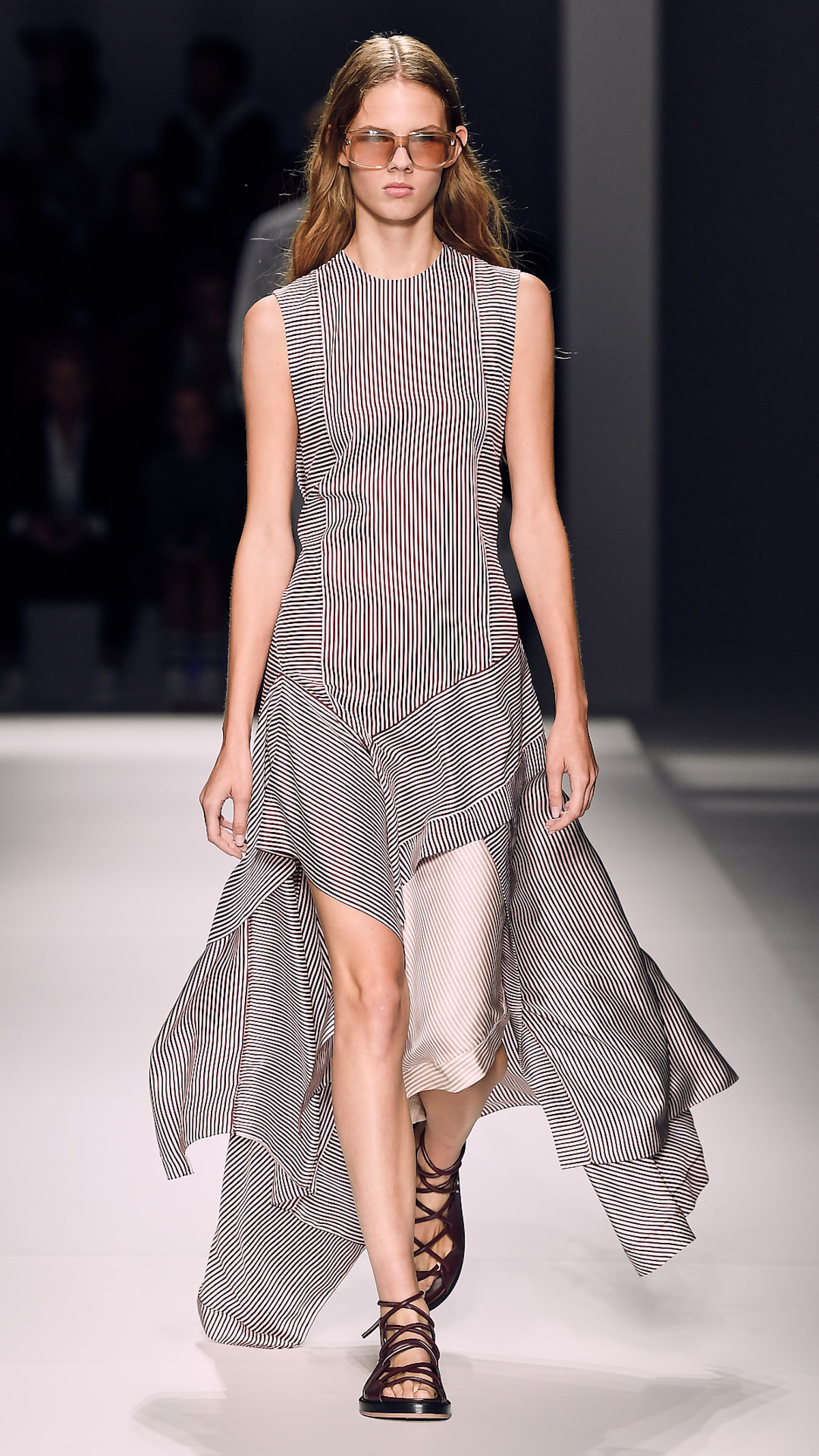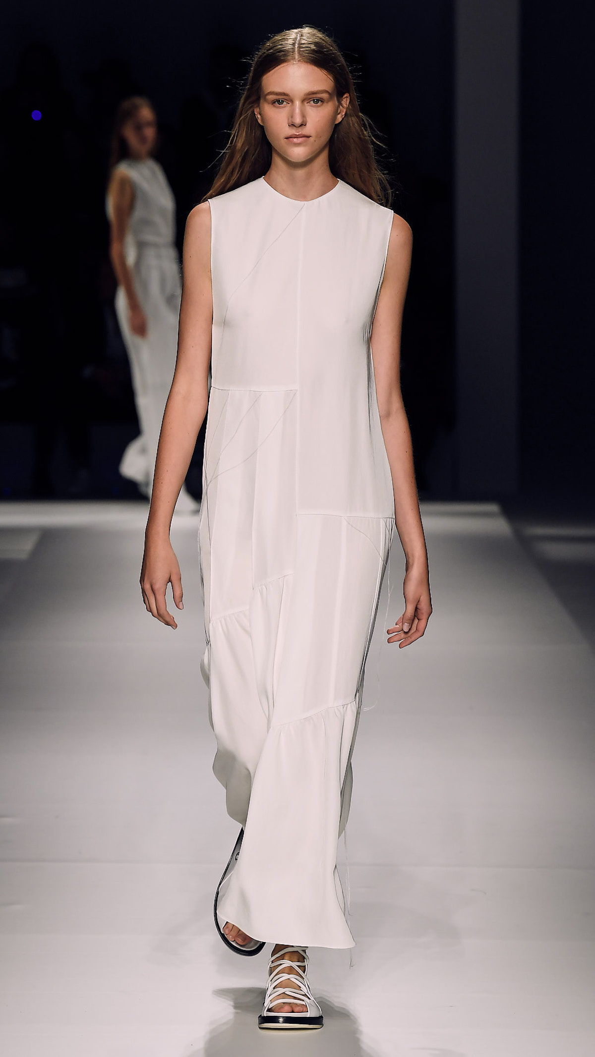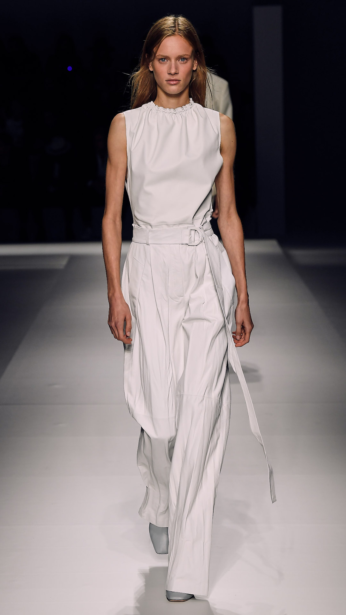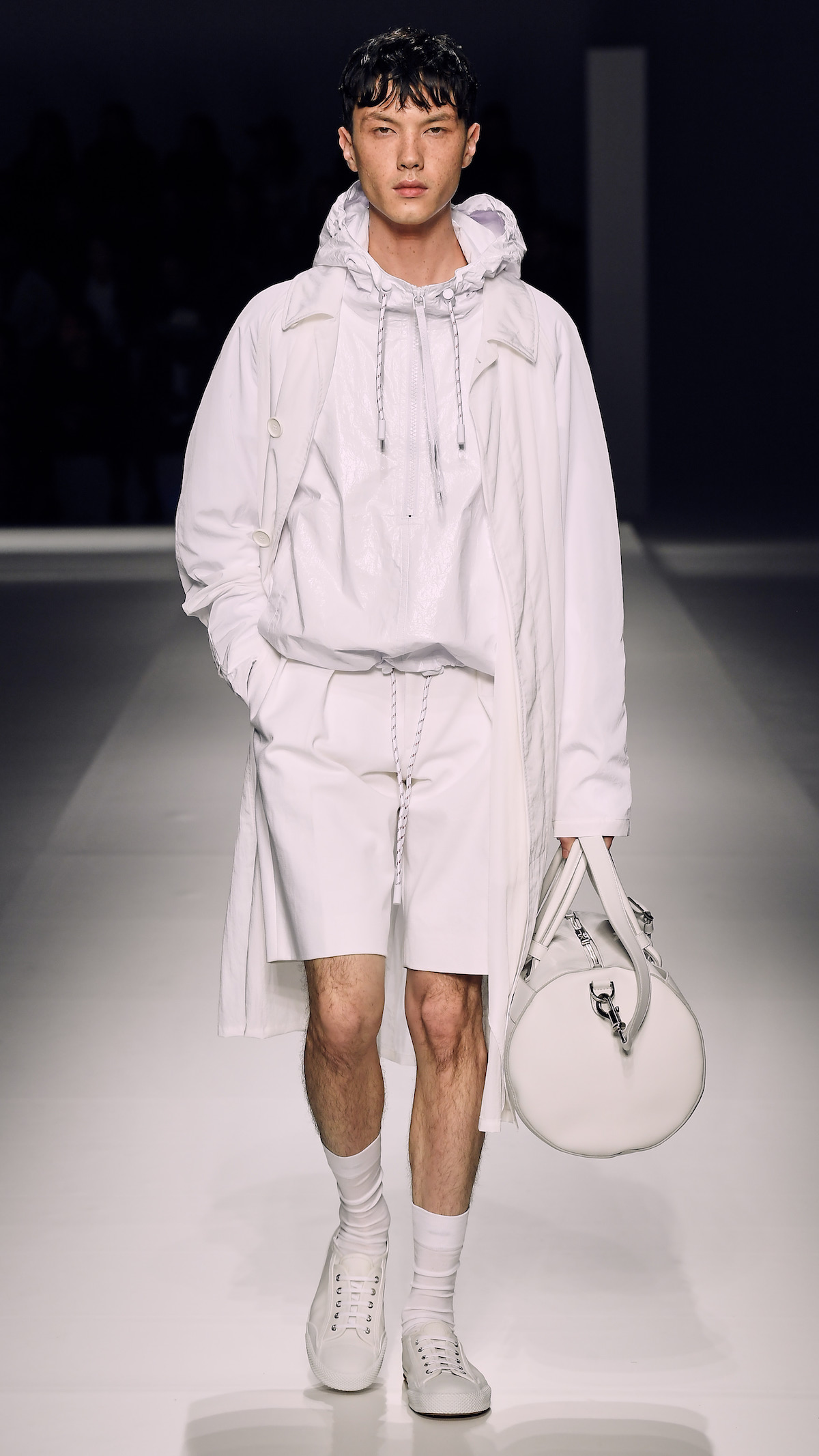 Креативный руководитель бренда Инго Вилтс презентовал одежду для мужчин и женщин в одной коллекции, выдержанной в классическом для Boss элегантном и лаконичном стиле. Впрочем, дизайнер придерживался тематического летнего дресс-кода: свободный крой, воздушные ткани, расслабленная небрежность и отсутствие сложных текстур. На светлом прямоугольном подиуме без лишних декораций хорошо прослеживалась динамика цветовой палитры от луков в приглушенных оттенках розового и голубого, переходящих в насыщенный желтый, темно-синий и цвет бургунди, до закрывающих показ белоснежных нарядов.