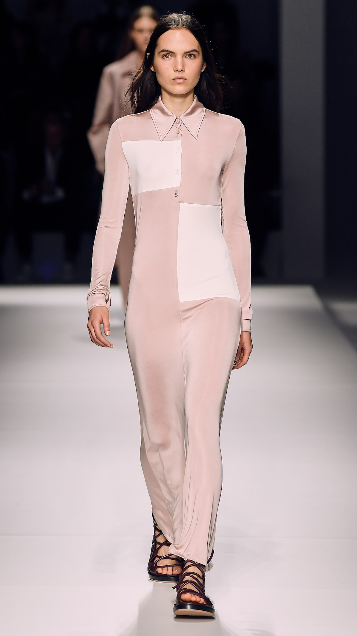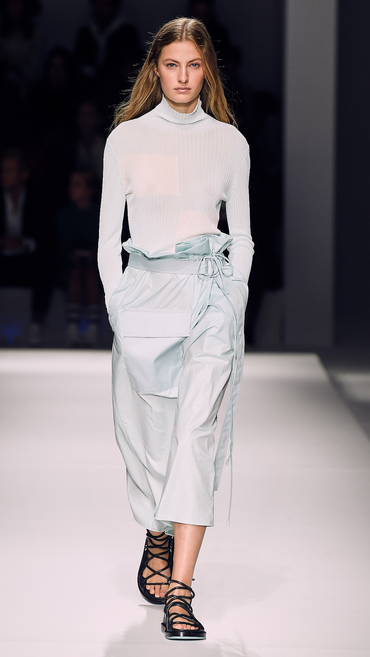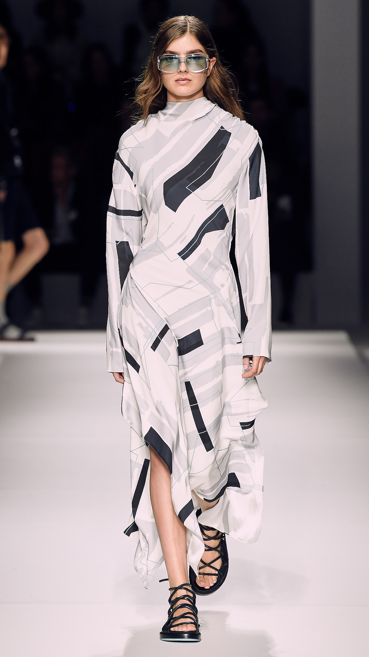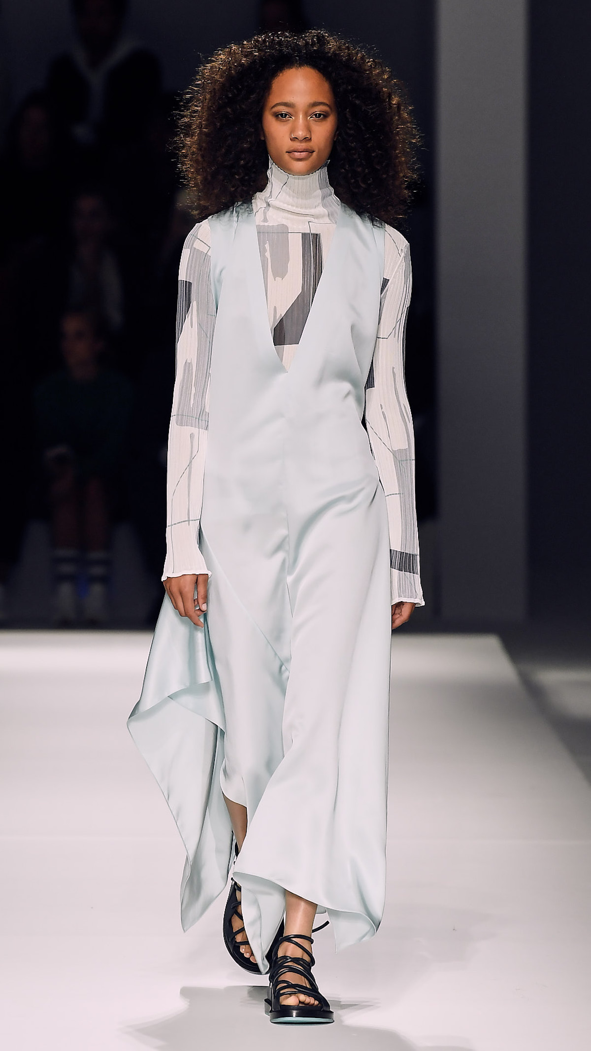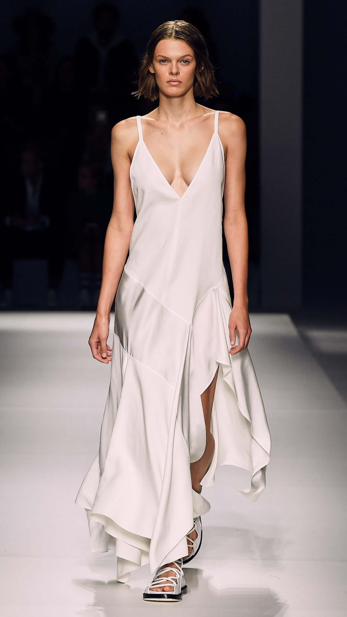 Креативный руководитель бренда Инго Вилтс презентовал одежду для мужчин и женщин в одной коллекции, выдержанной в классическом для Boss элегантном и лаконичном стиле. Впрочем, дизайнер придерживался тематического летнего дресс-кода: свободный крой, воздушные ткани, расслабленная небрежность и отсутствие сложных текстур. На светлом прямоугольном подиуме без лишних декораций хорошо прослеживалась динамика цветовой палитры от луков в приглушенных оттенках розового и голубого, переходящих в насыщенный желтый, темно-синий и цвет бургунди, до закрывающих показ белоснежных нарядов.