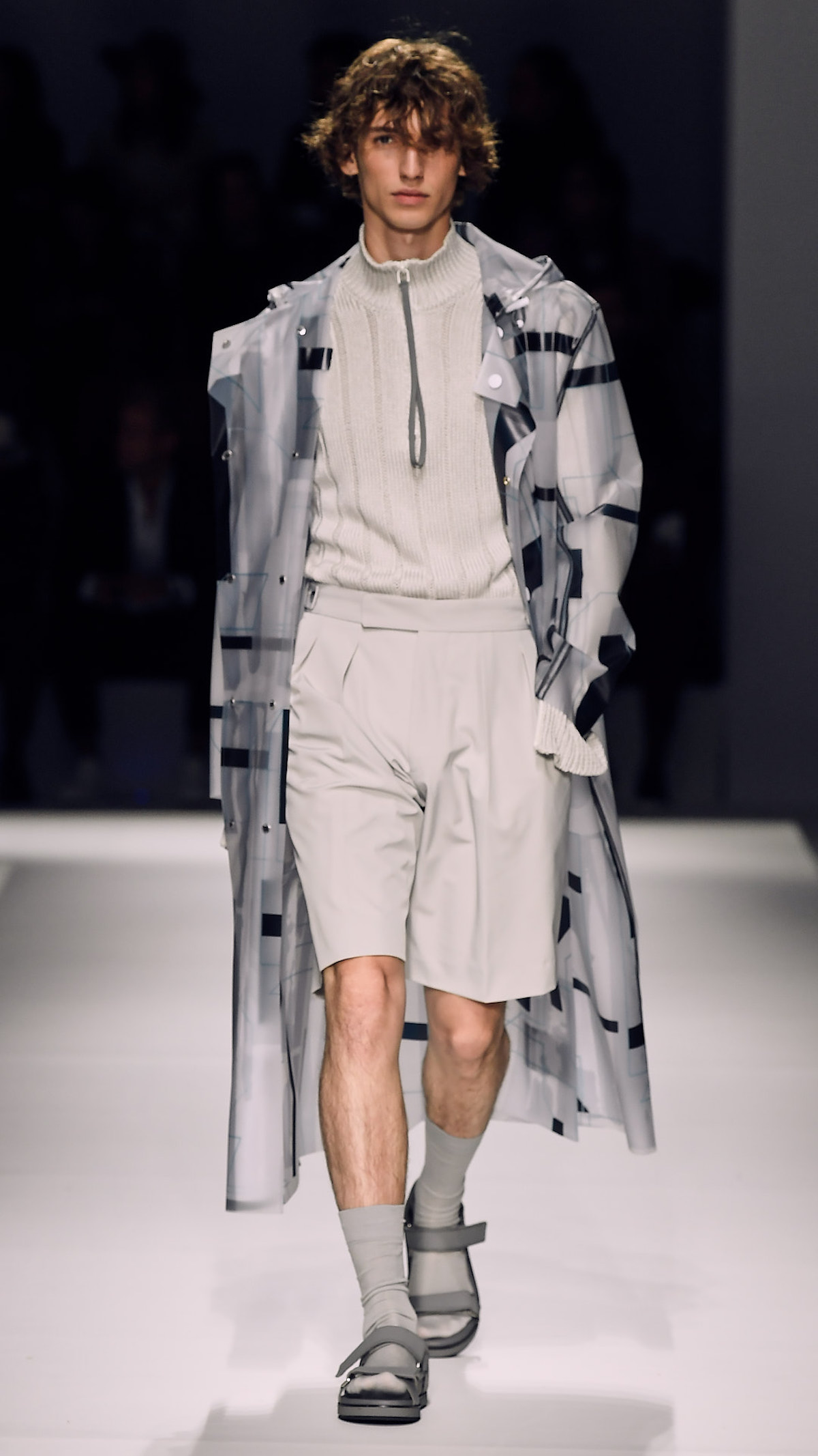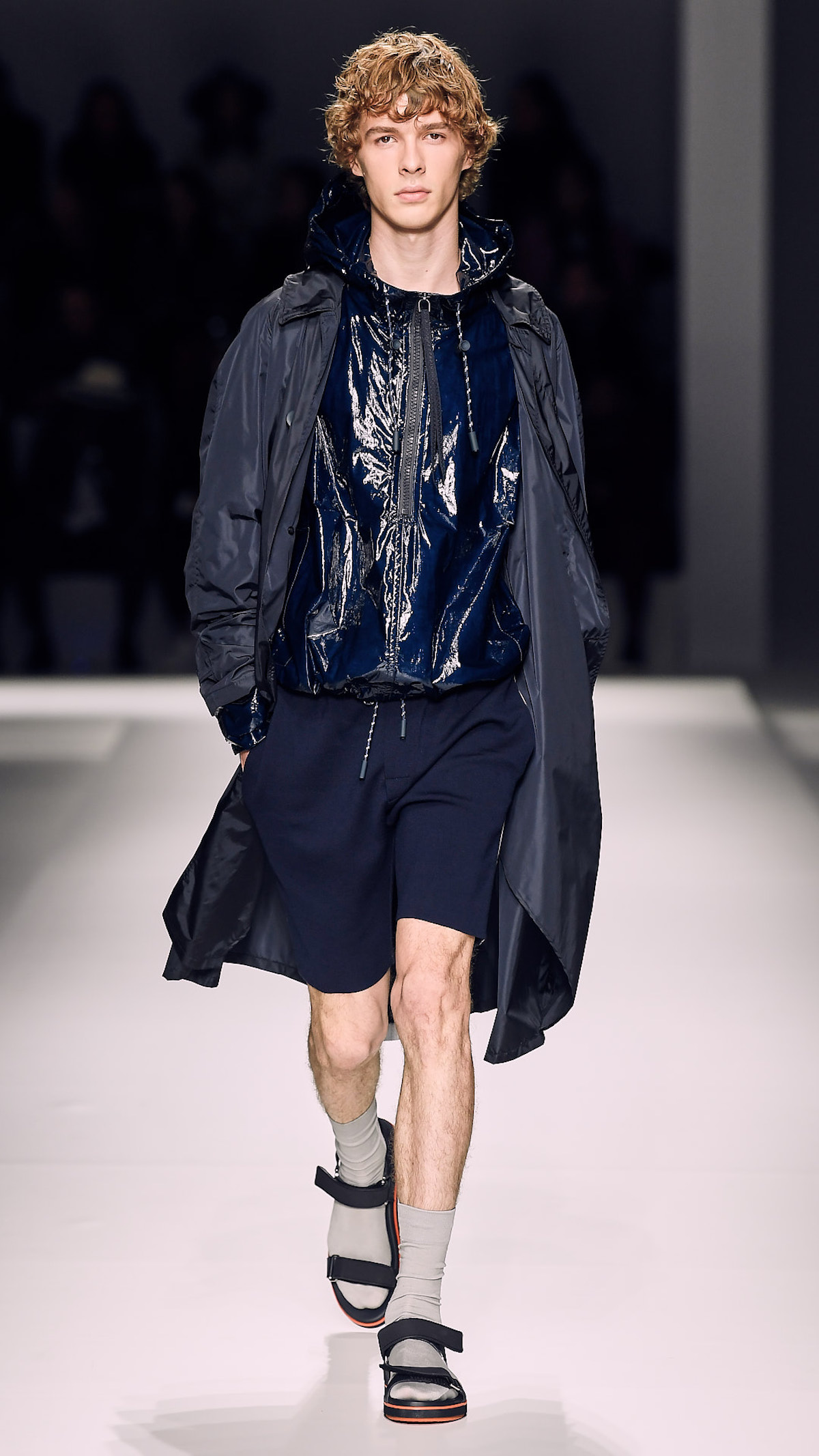 На случай прохладных вечеров Вилтс предусмотрел легкие нейлоновые тренчи, куртки и укороченные свитера преувеличенно крупной вязки. Boss продолжили следовать своему ориентиру на спортшик и сделали акцент на соответствующих деталях: крупные шнурки вместо пуговиц, удобные капюшоны на парках и "атлетическая" резиновая подошва. А благодаря ручной работе, специальному крою и высокотехнологичным тканям коллекция выглядит элегантно-невесомой.