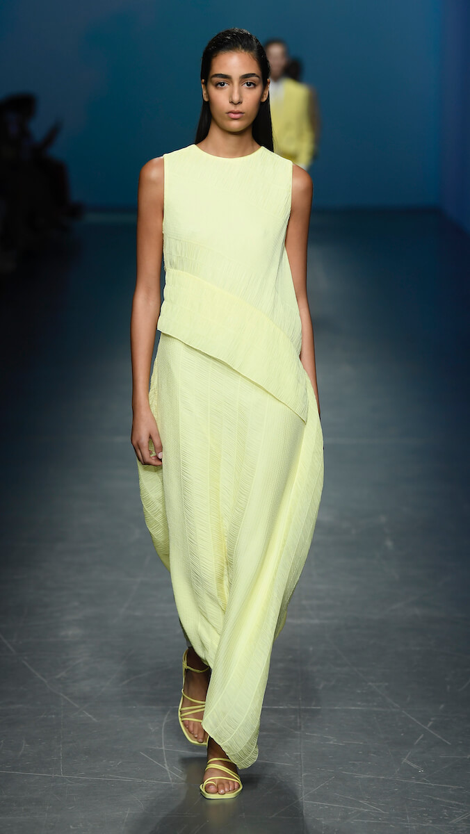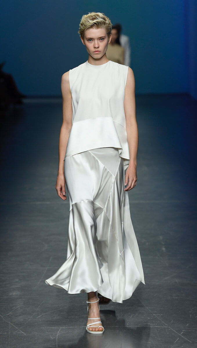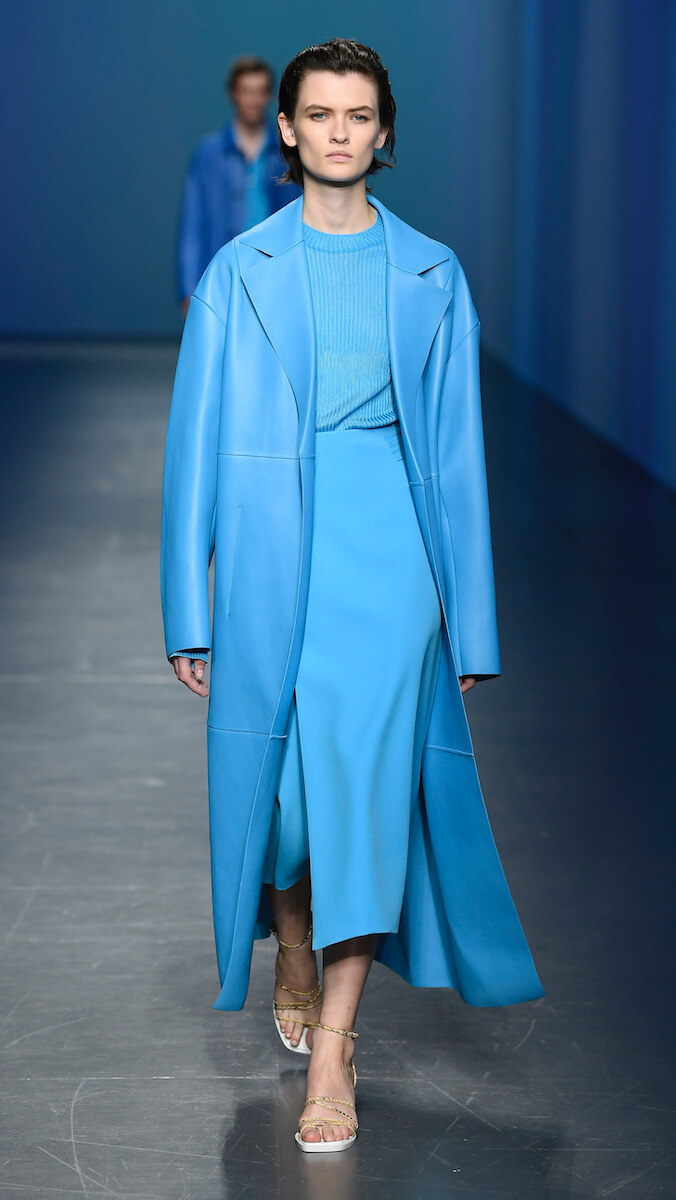 Также Boss не спешит терять свое главное вдохновение – Большое яблоко с его небоскребами и эстетикой стекла и металла. Расслабленные классические костюмы бренда дополнены более чем тонкой спортивной линией новой коллекции BOSS Individuals. Мягкие силуэты, шелковые макси платья, куртки и пальто с матовым блеском кожи, длинные юбки на запах и широкие брюки выполнены в легкой палитре светлых оттенков: небесно-голубого, лимонного, светлой бирюзы, песочной охры и насыщенных красного и глубокого синего. Новая коллекция Boss просто-таки создана для утренней прогулки по заполненным такси улицам вечно бодрствующего мегаполиса или солнечным белоснежным площадям итальянской столицы. Собственно, утренней прогулкой она и была вдохновлена.