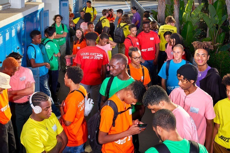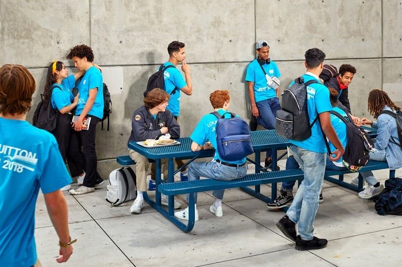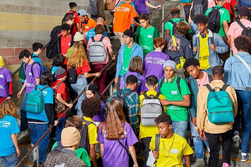 Дом Louis Vuitton выпустили кампанию коллекции весна-лето 2019. В роли моделей выступили обычные школьники, которые спешат на уроки, решают подрастковые проблемы возле локеров, обедают в столовой и гуляют на заднем дворе. Вся школьная жизнь происходит в объективе фотографа Реймонда Вуда, который точечно использует лоу-фай фотографии. Школьную форму заменили на красочные футболки Louis Vuitton, которые послужили пригласительными для гостей показа бренда в прошлом году (нашей редакции достались фиолетовые). К слову, футболки – это рефлексия Вирджила на его уютность. «Как и многие ребята сейчас, я начинал свой путь без должного образования в сфере моды, у меня была обычная футболка, идея и большая мечта», – поделился дизайнер.