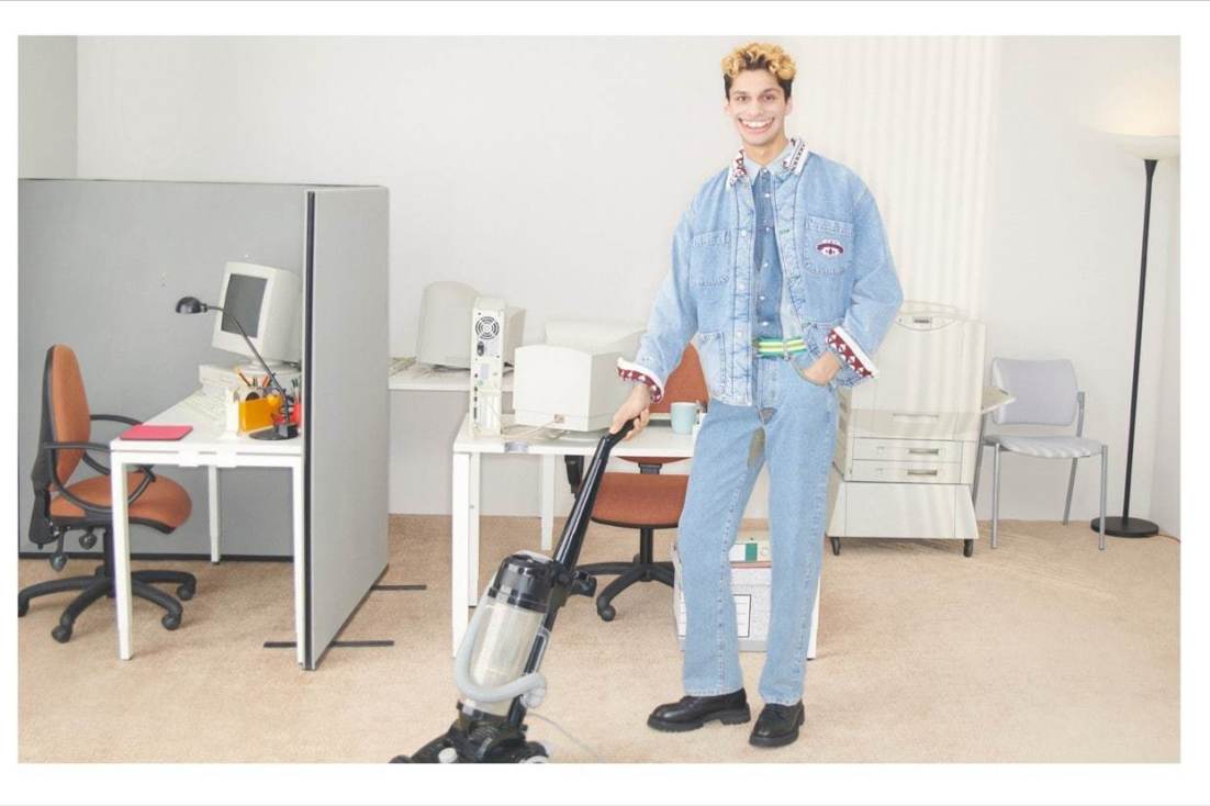 В коллекцию вошли объемные бомберы из выстиранной ткани, много голубого и серого денима свободного кроя, а также худи, рубашки и футболки с принтами — все, за что мы так любим 90-е. Всего 24 архивных предмета.