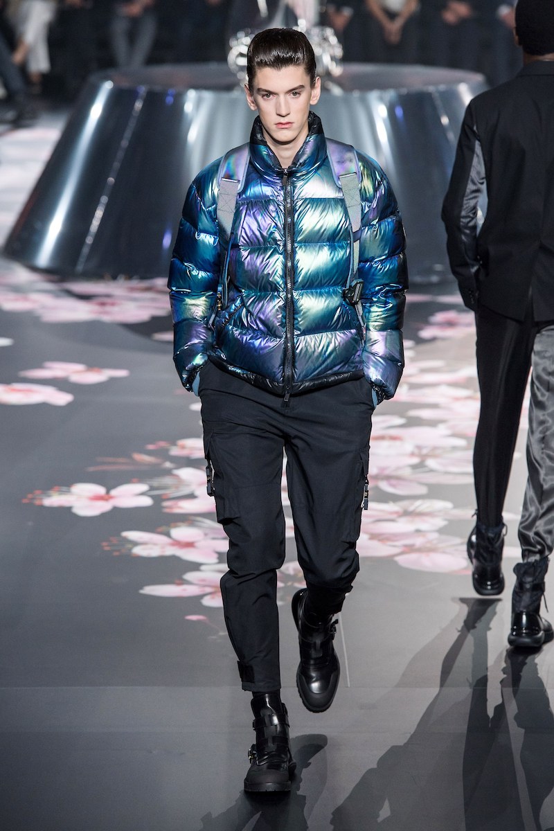 В футуристическом Токио прошел космический показ коллекции Dior Men pre-fall 2019. На этот раз любитель путешествий Ким Джонс отправился в далекую, далекую Галактику, в которой даже знаменитая модель седельной сумки стала кобурой для бластера. Герои этой космической саги с романтикой страны восходящего Солнца одеты в светоотражающие комбинезоны, технологические куртки и костюмы с цветочными рисунками. По сложившейся традиции мужское шоу Dior украсила 10-метровая (на этот раз серебряная) скульптура японского художника Хадзимэ Сораяму.
