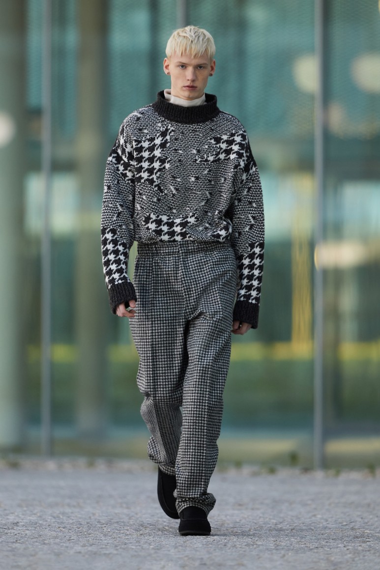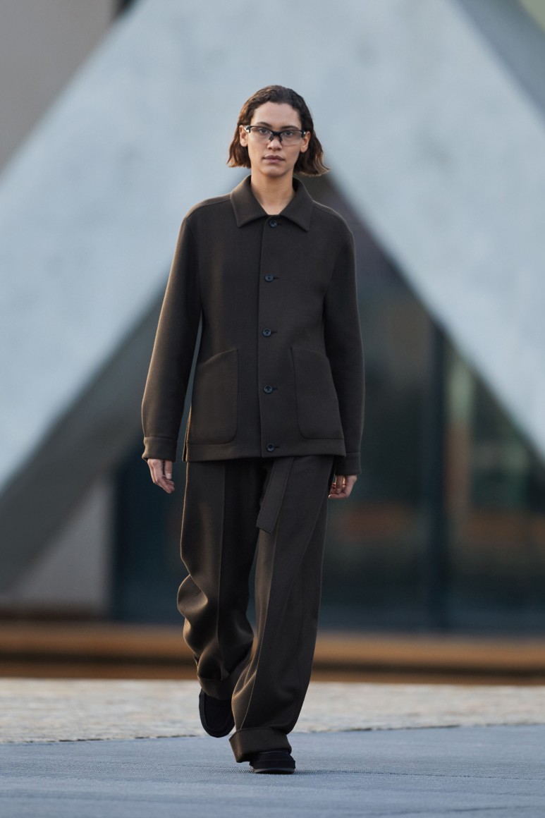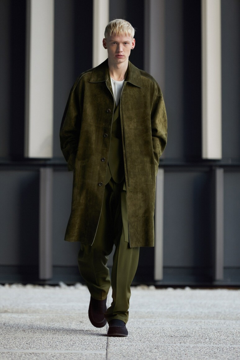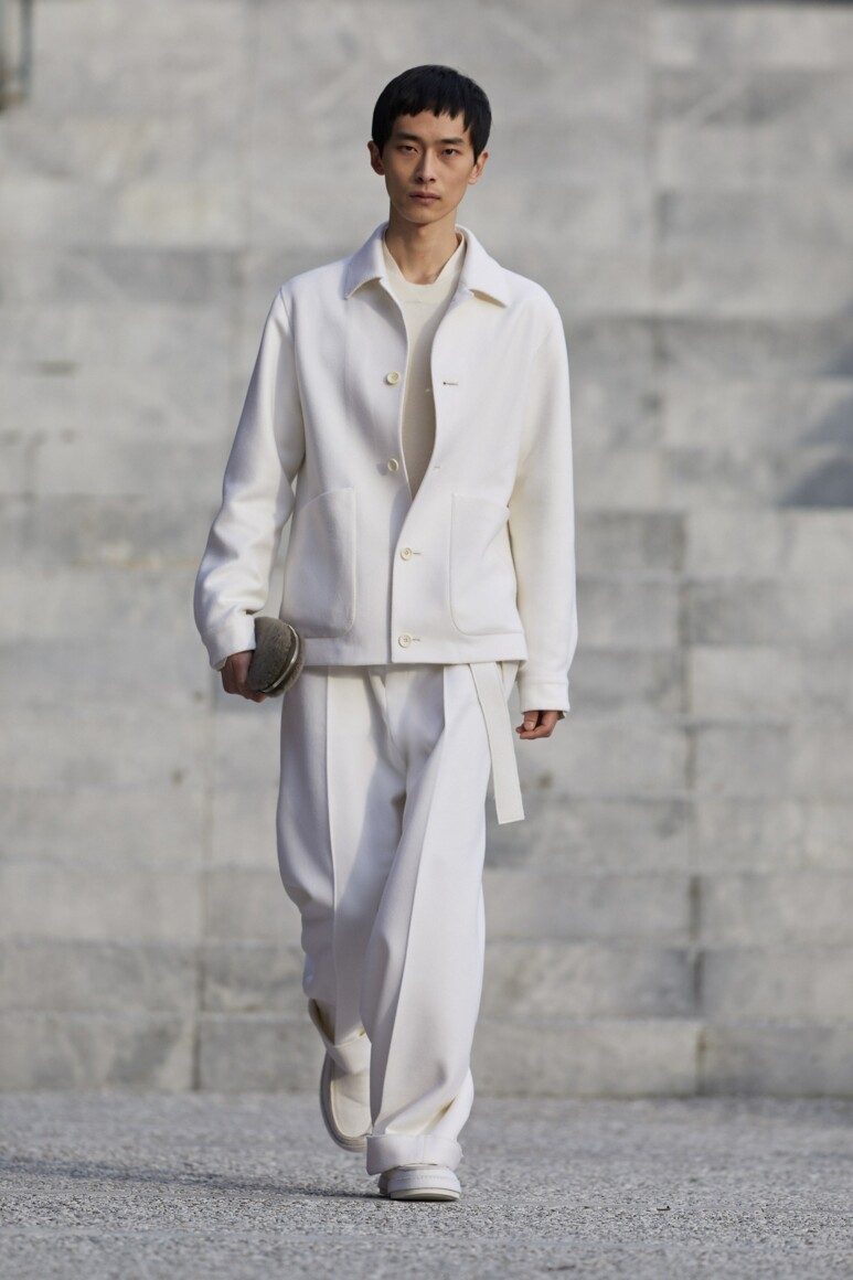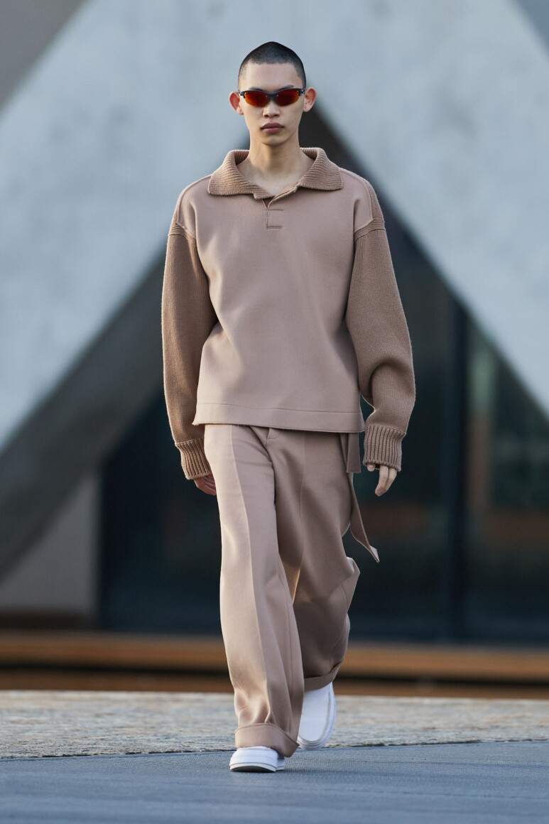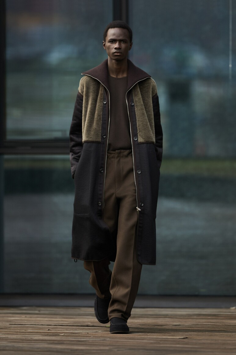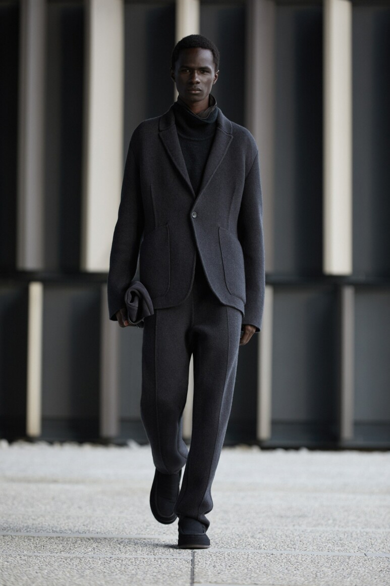 Герои новой коллекции гуляют по главным объектам современного Милана: площади Оливетти, новому кампусу университета Луиджи Боккони и собственной штаб-квартире бренда. Как и архитектурный фон, одежда в новой коллекции хоть и имеет нарочито современные (и почти спортивно-футуристические) формы, но в это же время диктует весьма классические и знакомые нам мотивы Zegna — расслабленные и широкие силуэты, звенящий минимализм в палитре урбанистического Милана. В коллекции использованы открытый бежевый, серый, холодный пудровый, травяной и глубокий голубой. Канонический узор «гусиные лапки» превратился в ландшафтную абстракцию а ритмические полосы на пальто-халате напоминают архитектурный ряд на одном из фасадов кампуса.