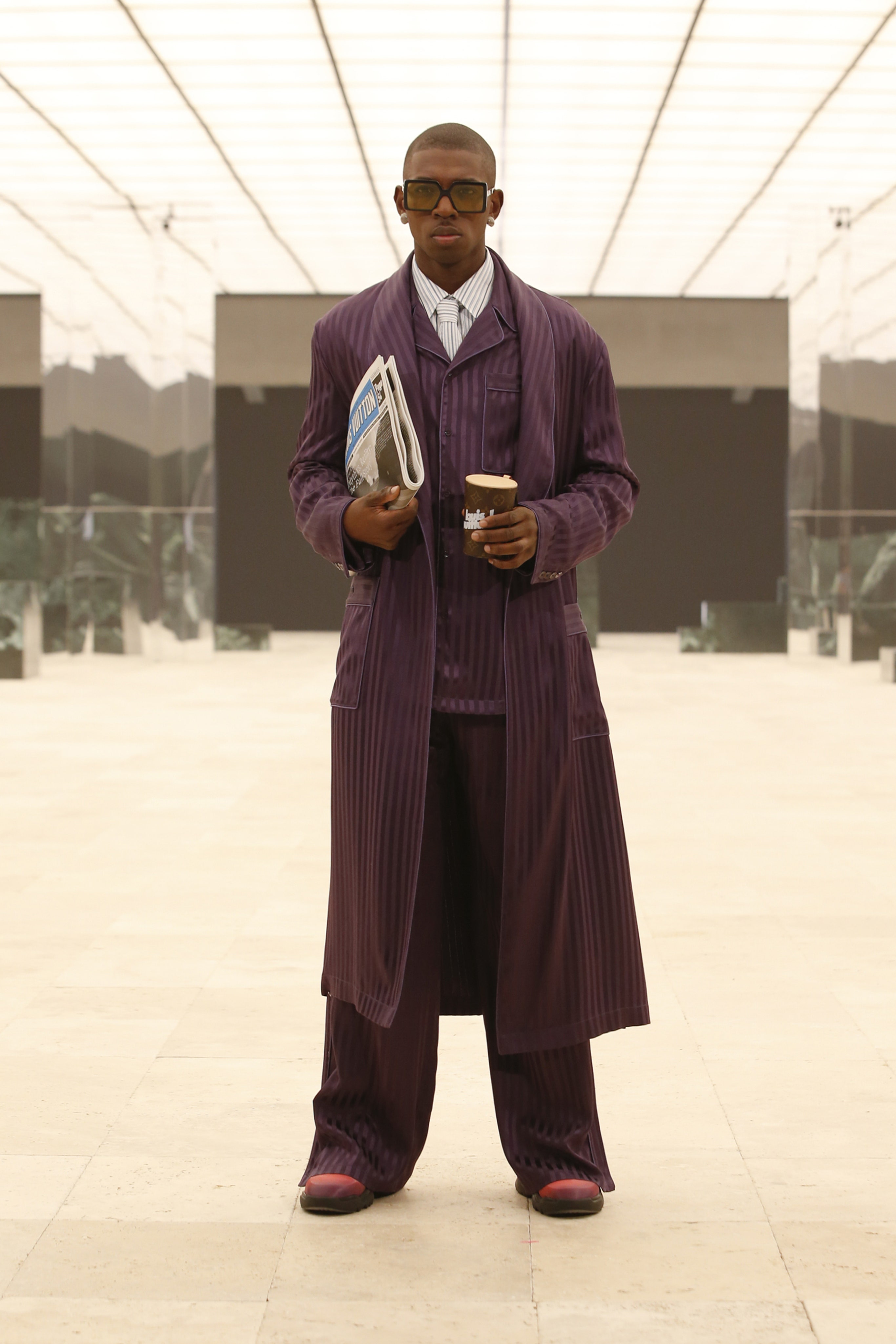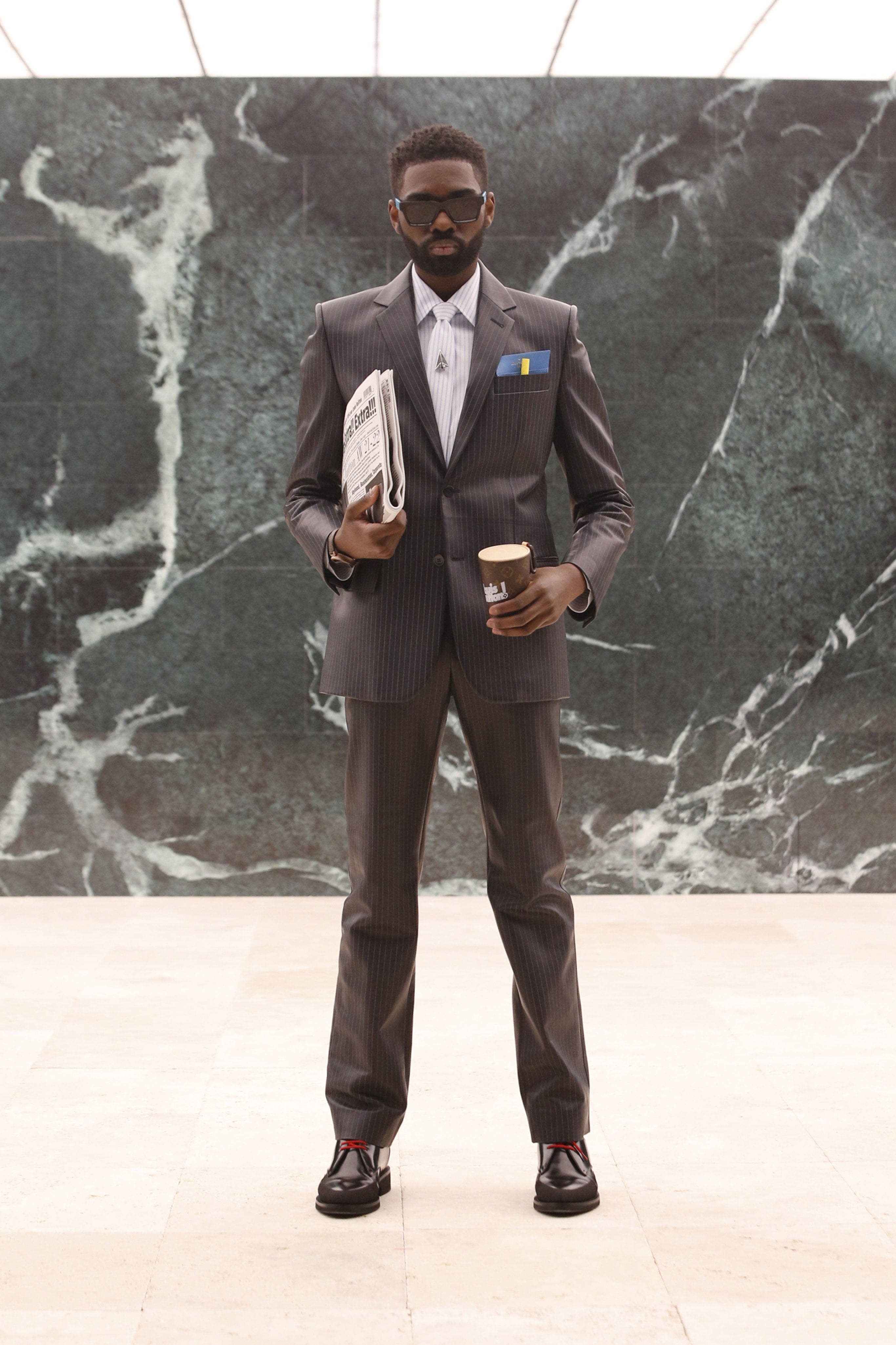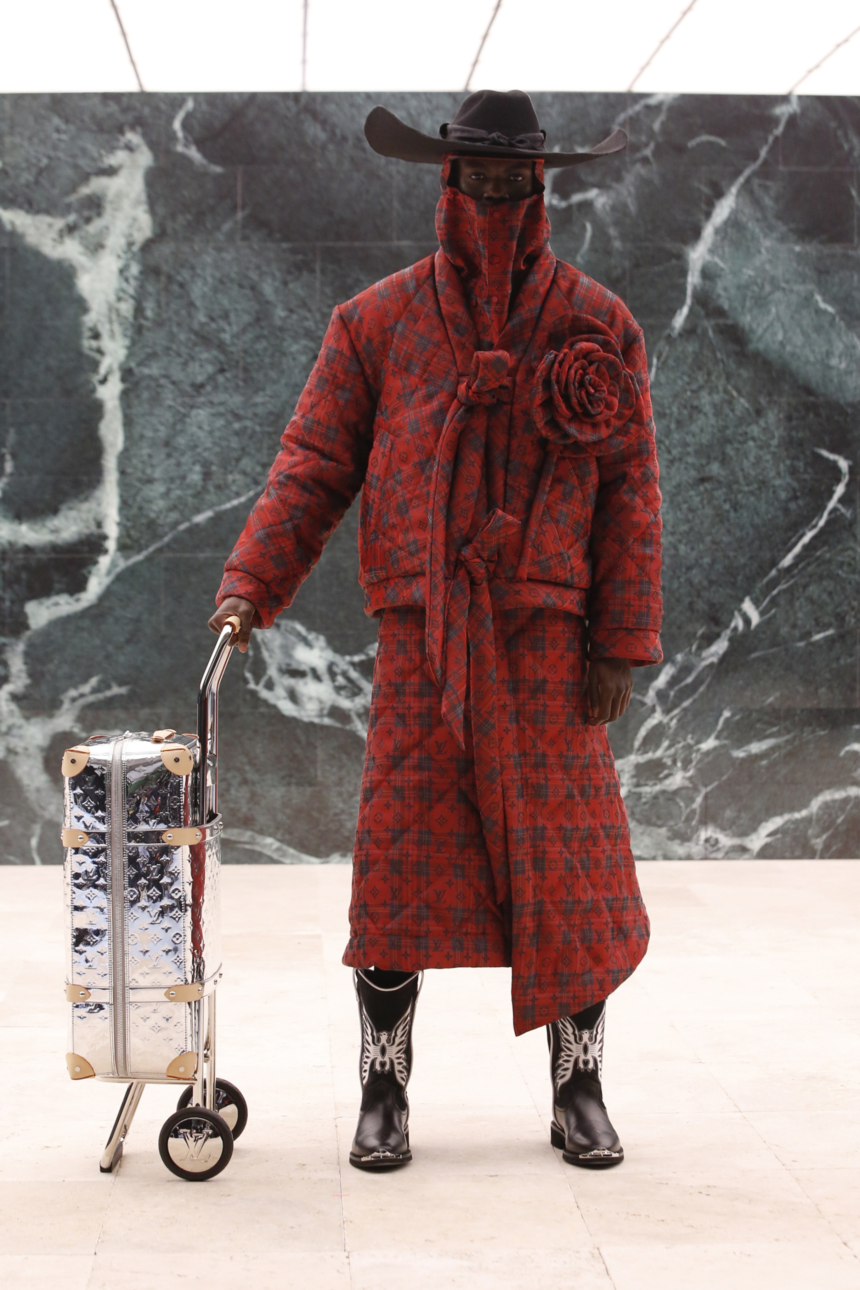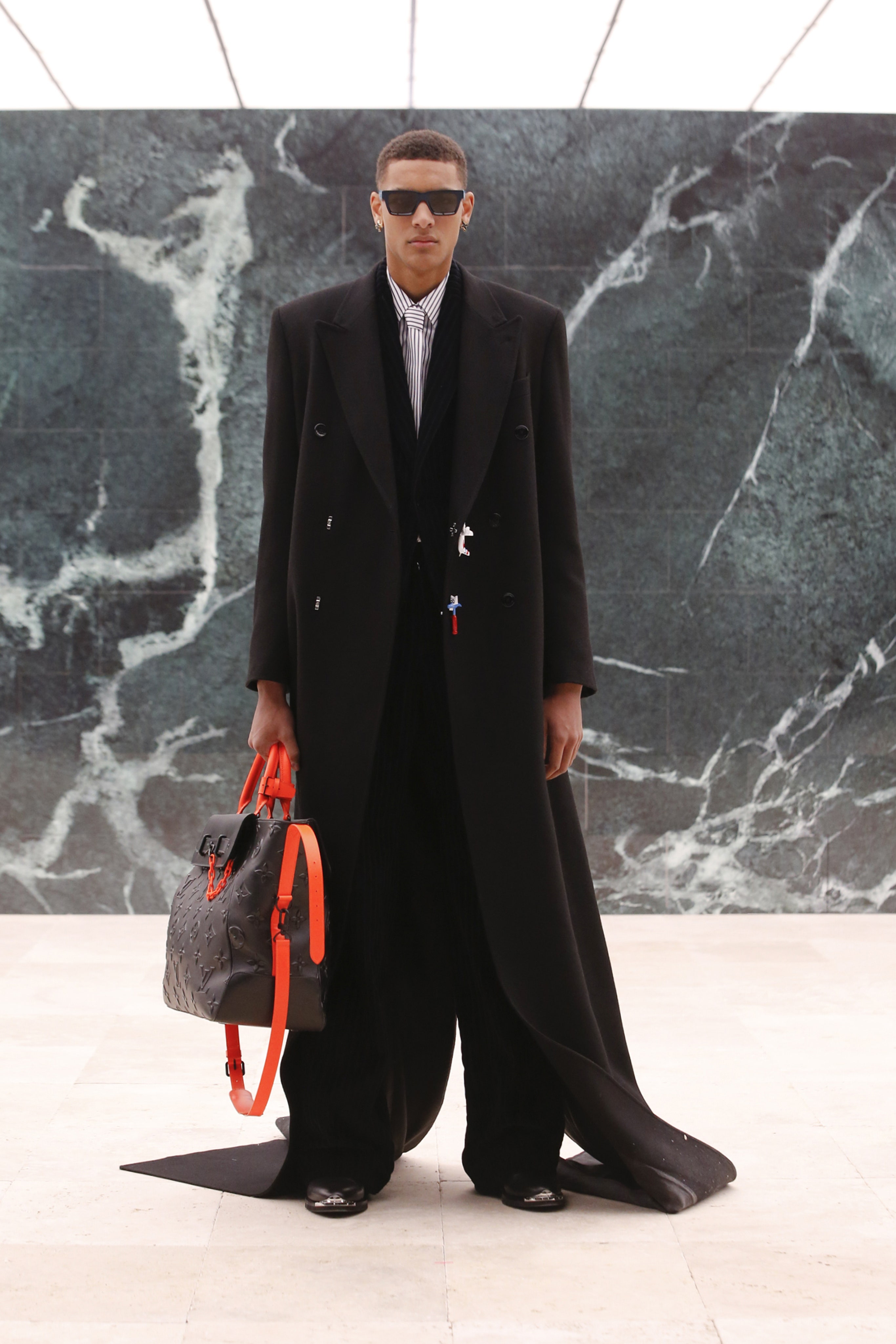 Кроме своей биографии и актуальных запросов общества (в том числе и Black Lives Matter), Абло ставит во главу угла свое личное наследие: так в коллекции возникают традиционные африканские мотивы — одежда из национальной ткани Kente. Также дизайнер обратил внимание на уже знакомый нам ранее тейлоринг — острые силуэты костюмов, широкие и более чем длинные пальто и плащи и, конечно, шляпы. Головные уборы вообще стали важной чертой новой коллекции Абло, ибо именно такие, и никакие другие, — мятые и невозможно широкополые федоры точно характеризуют выбранное Вирджилом Абло направление.
