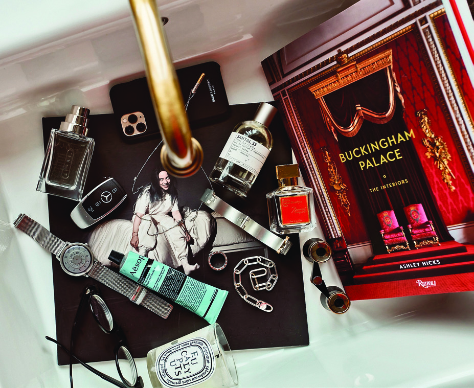 Сет виниловых пластинок Билли Айлиш, When We All Asleep Where Do We Go?, духи Sublime Balkiss The Different Company, часы Anicorn Luna, автоключ Mercedes-Benz, бальзам для рук Aesop Reverence Aromatique Hand Balm, свеча Eucalyptus Diptyque, кулон и браслет Guzema, кольцо Bvlgari, браслет 1017 Alyx 9Sm, духи Francis Kurkdjian Baccarat Rouge 540,  духи Le Labo Santal 33, альбом Buckingham Palace The Interiors By Ashley Hicks