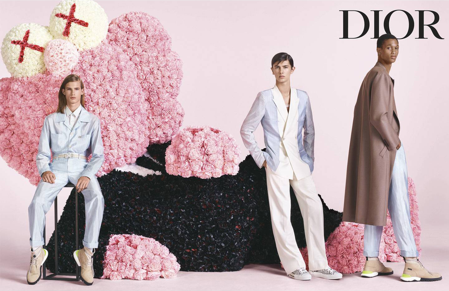 В новой рекламной кампании модного Дома модели, среди которых 19-летний датский принц Николай, дружным рядом позируют фотографу Стивену Мейзелу, а за их спинами возлегает новая цветочная скульптура художника Kaws. Аналогичную инсталляцию художник создал и для дебютного шоу Джонса, она была высотой в 10 метров и состояла из более чем 70 000 разных роз.