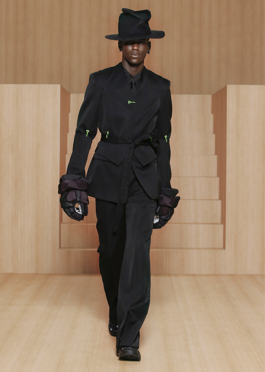 За последние несколько сезонов Вирджила Абло для мужской линии Louis Vuitton нам, кажется, стало понятно, в какой именно альтернативной вселенной живут герои мира LV. Благодаря многоплановым и многослойным смысловым отсылкам в самые культурные контексты Абло удалось выстроить свой Сильмариллион с легендами, путешествиями, антагонистами, а теперь и сражениями. Героями приключений французского Дома в новом сезоне стали современные самураи. Хотя время в мире Абло бежит по хитрой кривой: одновременно в будущем, нулевых и 80-х, главным направлением остается интеллектуальный футуризм.