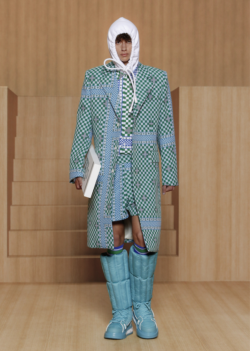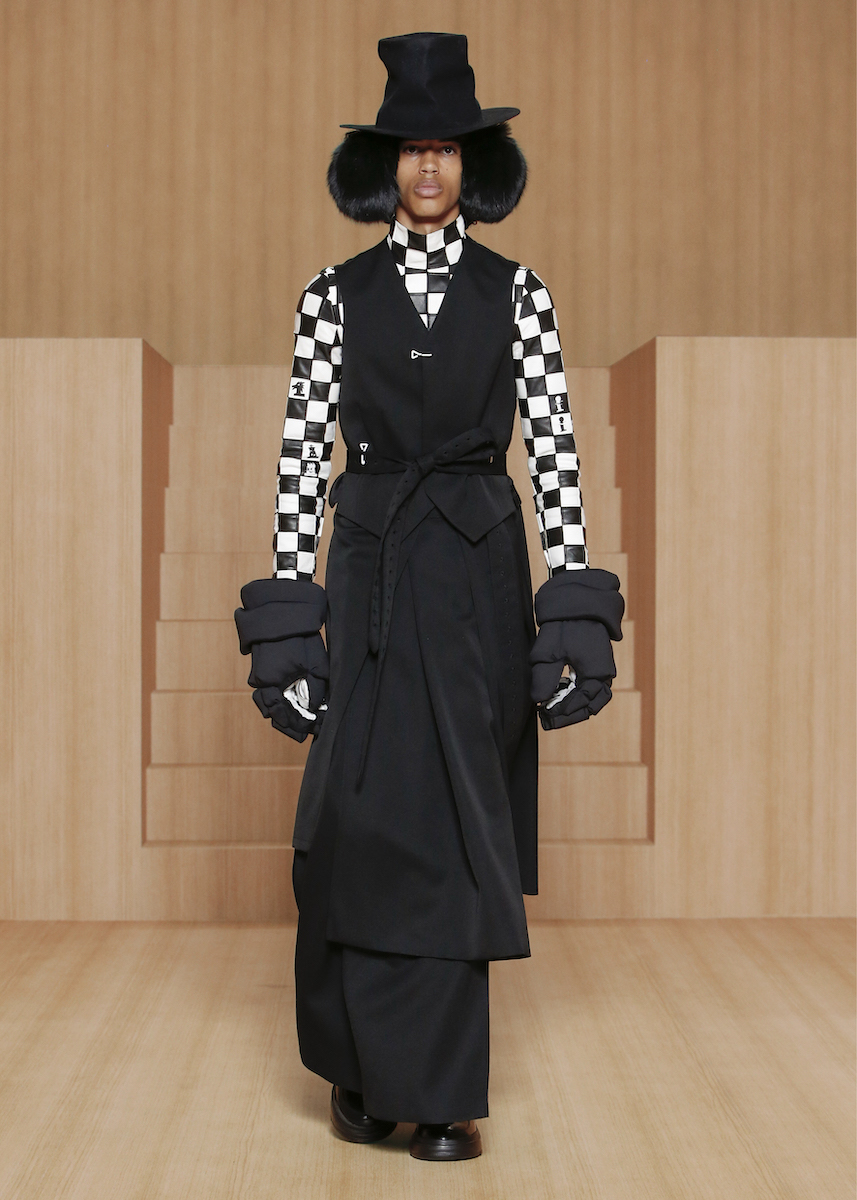 Кроме многочисленных вариаций кимоно и перепредуманных спортивных комплектов, формы и силуэты в новом сезоне стали еще более строгими и острыми, вместе с тем сохранив открытую яркую палитру цветов, которые мы наблюдаем с первой коллекции Вирджила. Что касается наследия Louis Vuitton, на этот раз код расшифровки выложен на шахматную доску, где остается только выбрать сторону сражения.