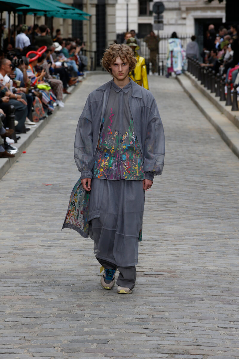 В этом сезоне Абло продолжил рассказывать свою большую историю. Дизайнер использовал пастельную палитру с включением ярких открытых цветов. А у знаменитых (и спорных) жилетов-портупей началась вторая жизнь: густо усыпанная цветочным принтом.
