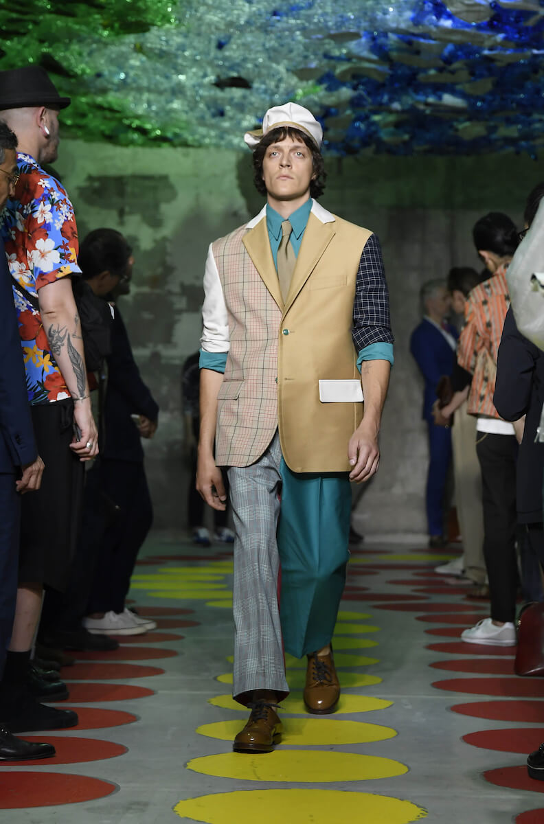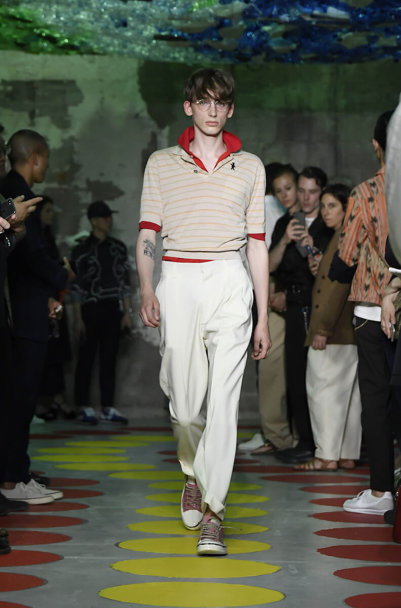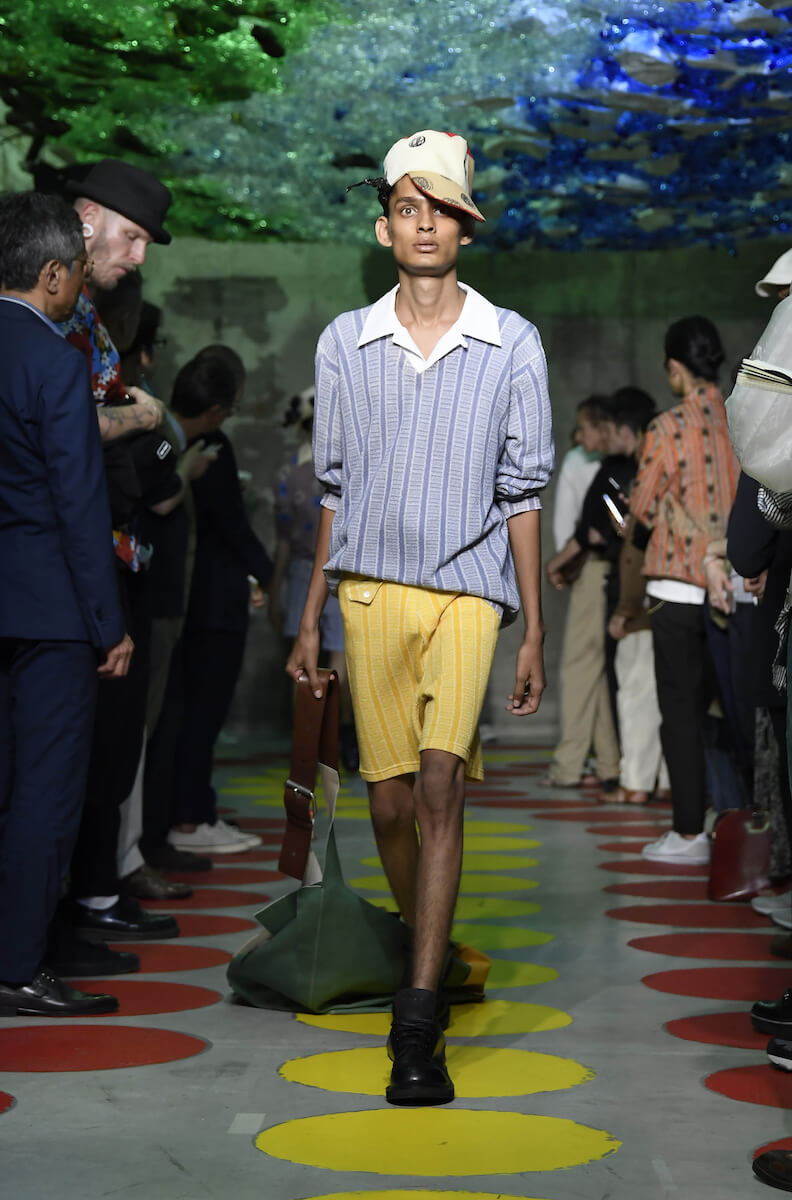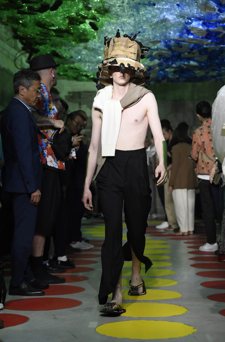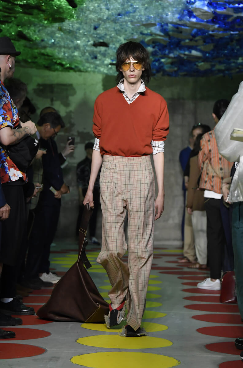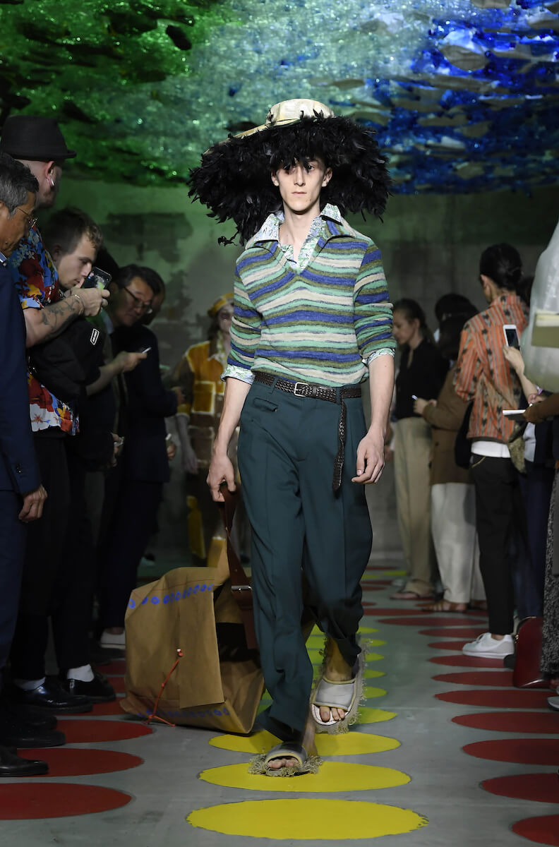 В этом сезоне креативный директор Marni Франческо Рисса решил провести показ в штаб-квартире итальянского бренда в Милане. Рисса украсил потолок над подиумом, подвесив над головами зрителей сеть с собранным в океане красочным мусором. Новое мужское шоу Marni получило название ACT1 и ярко проиллюстрировало главную тему сезона – sustainable fashion.