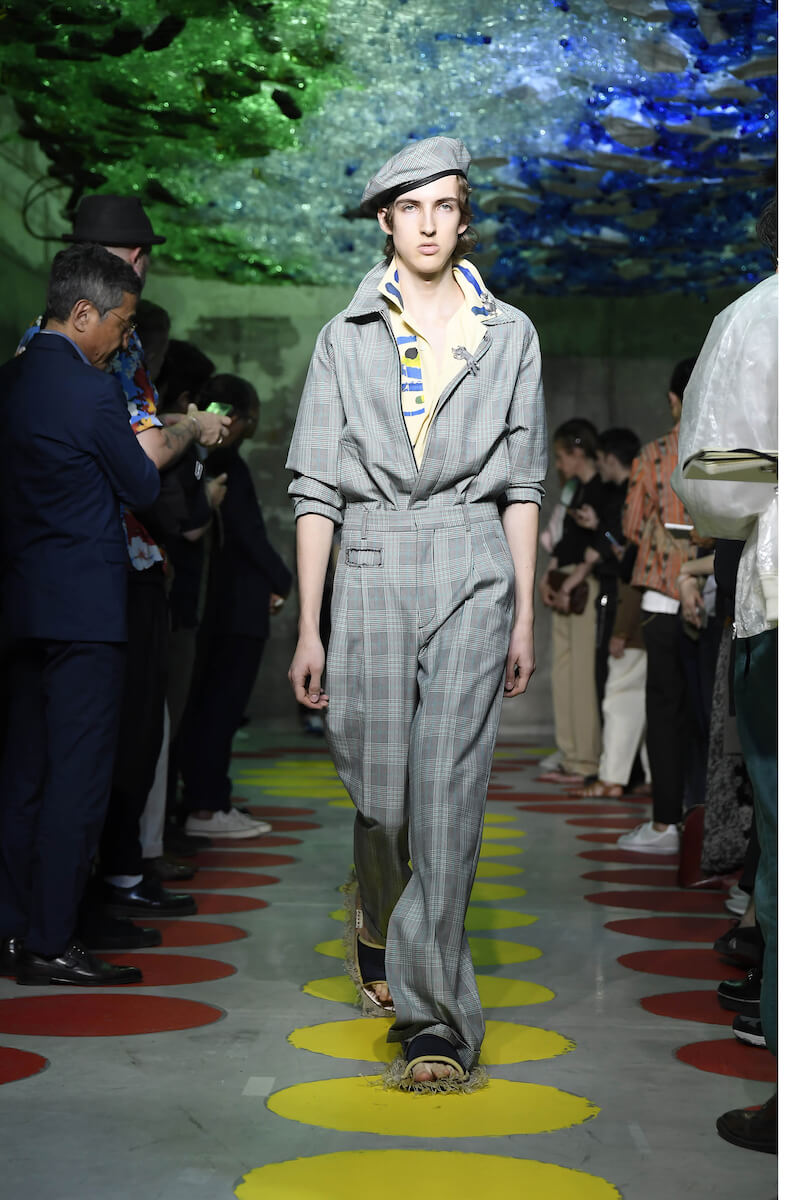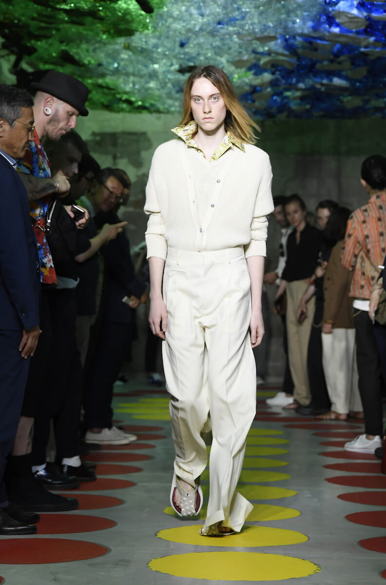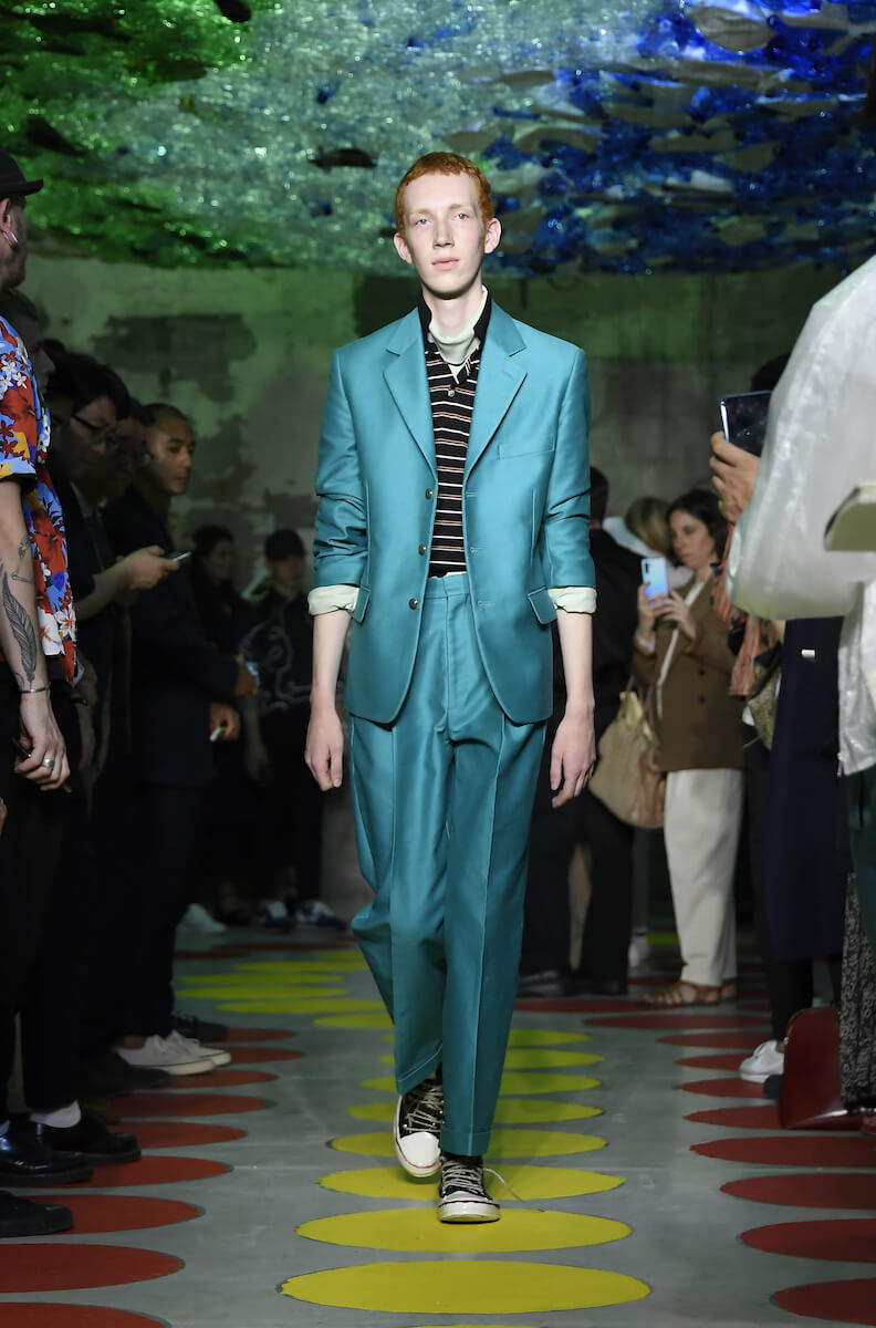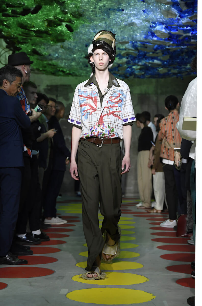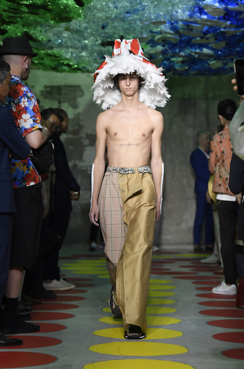 В этом сезоне креативный директор Marni Франческо Рисса решил провести показ в штаб-квартире итальянского бренда в Милане. Рисса украсил потолок над подиумом, подвесив над головами зрителей сеть с собранным в океане красочным мусором. Новое мужское шоу Marni получило название ACT1 и ярко проиллюстрировало главную тему сезона – sustainable fashion.