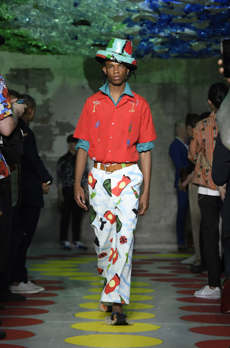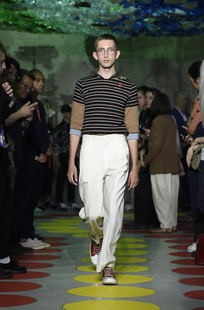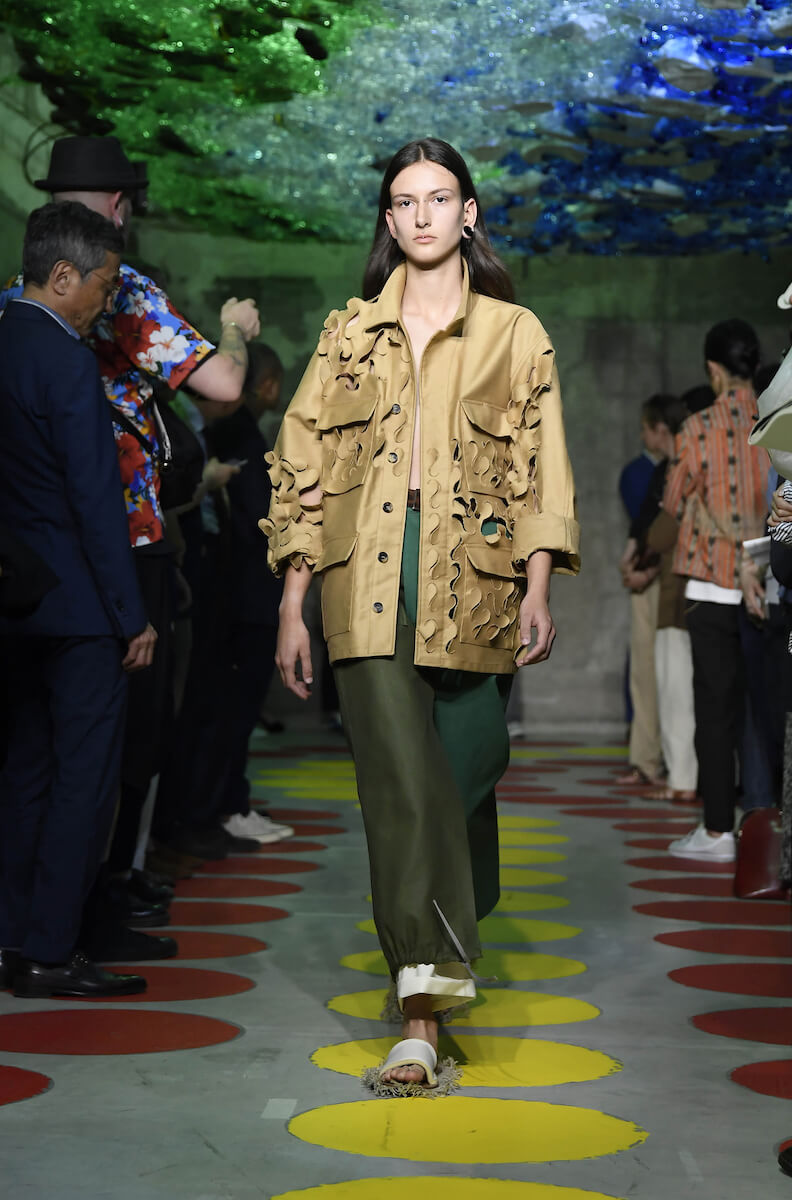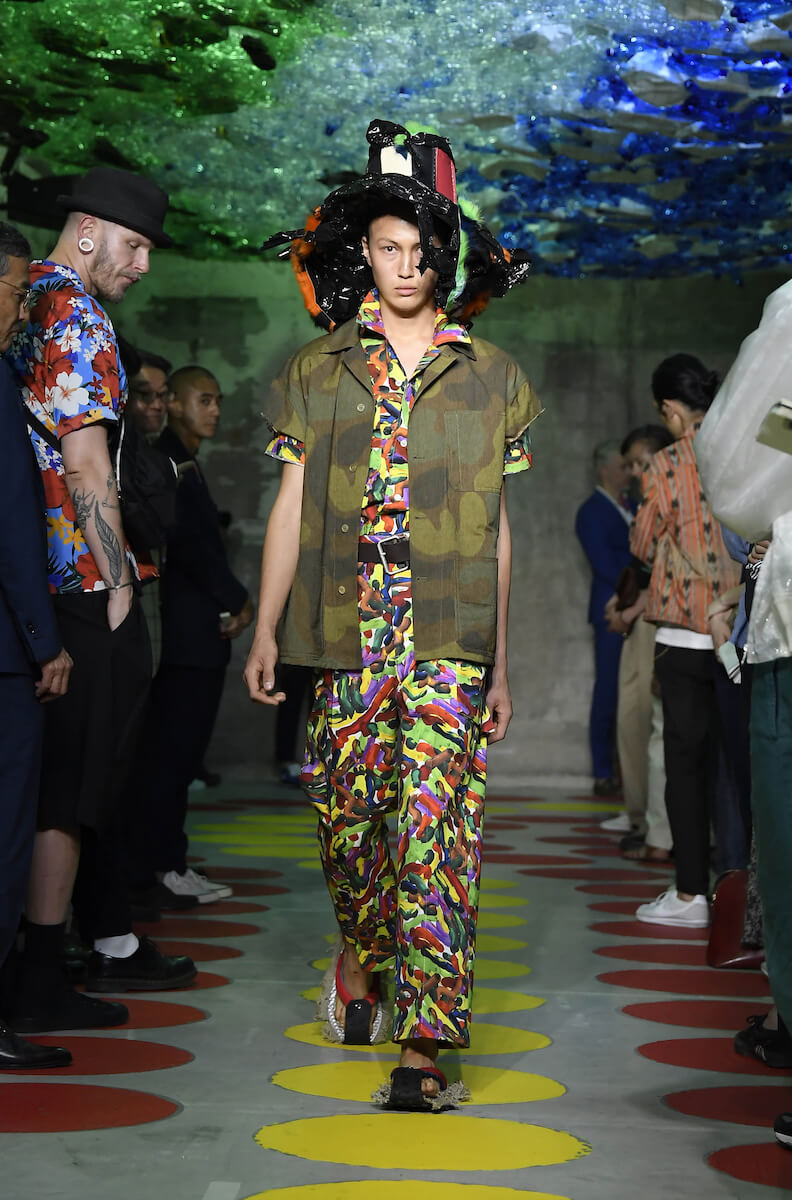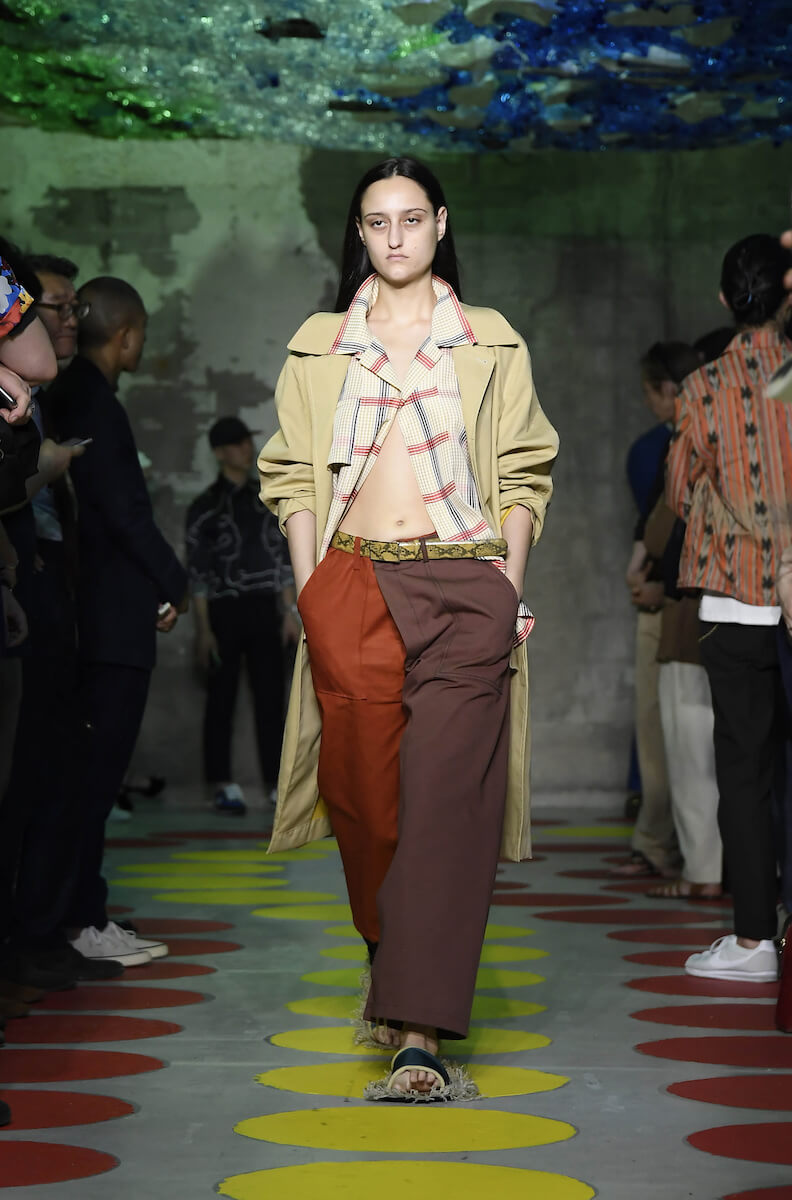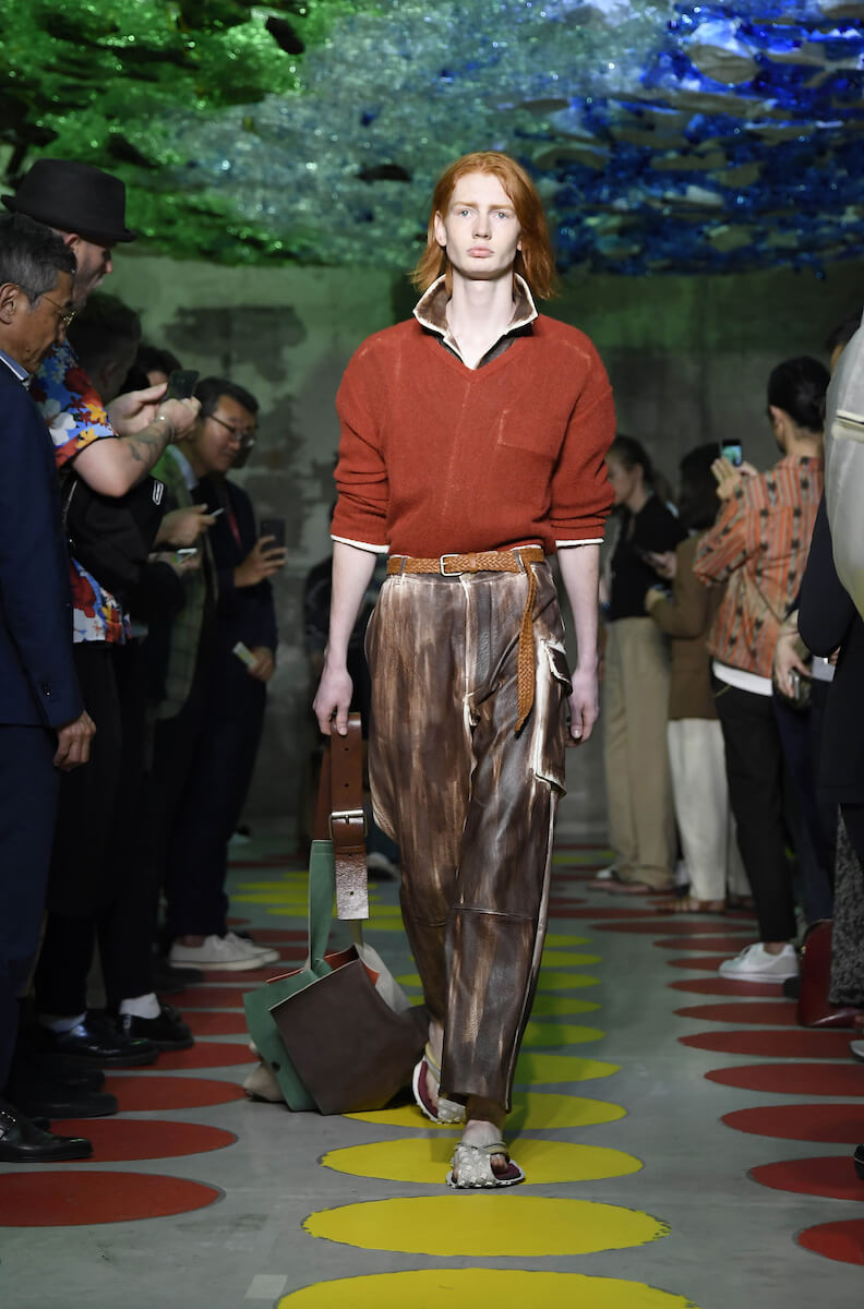 В этом сезоне креативный директор Marni Франческо Рисса решил провести показ в штаб-квартире итальянского бренда в Милане. Рисса украсил потолок над подиумом, подвесив над головами зрителей сеть с собранным в океане красочным мусором. Новое мужское шоу Marni получило название ACT1 и ярко проиллюстрировало главную тему сезона – sustainable fashion.