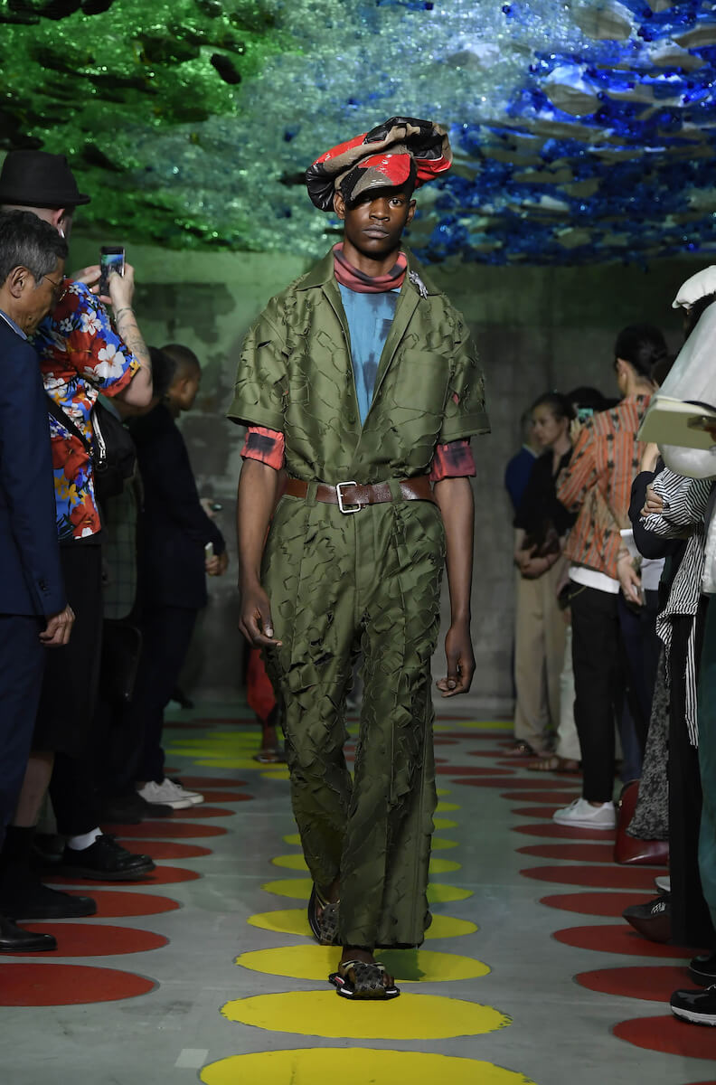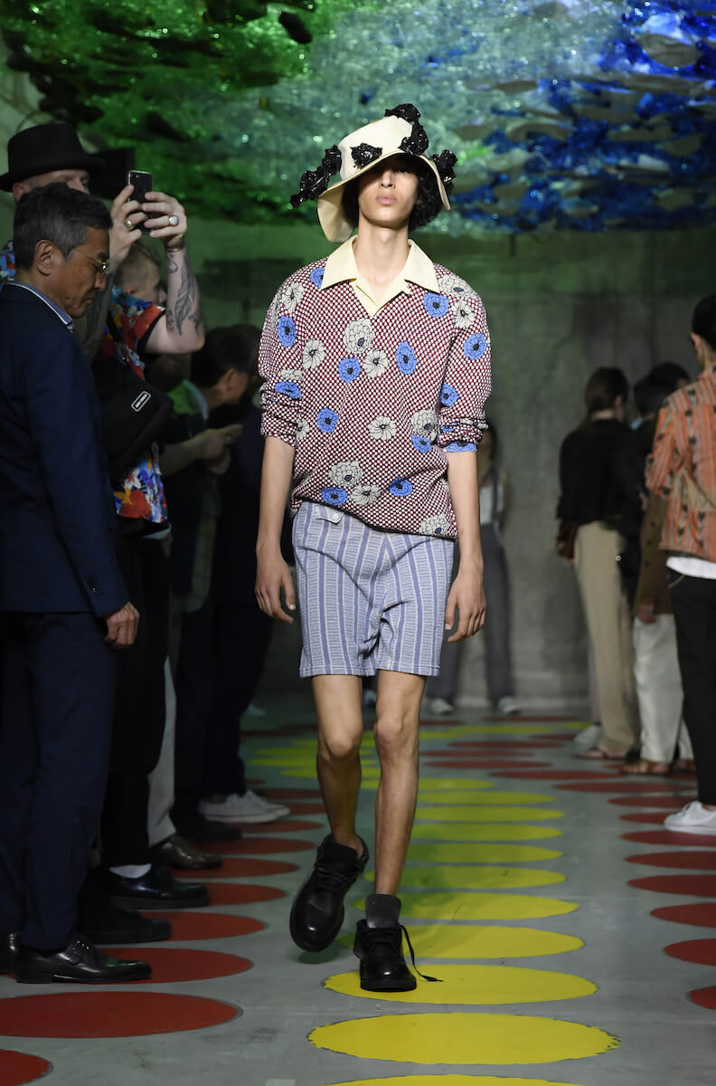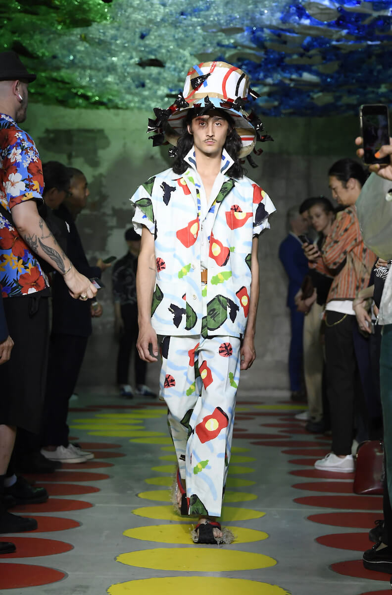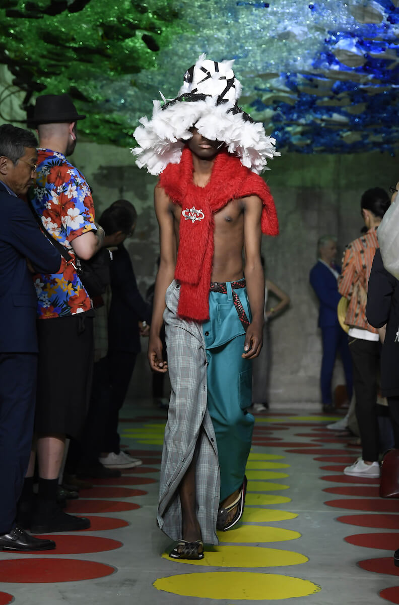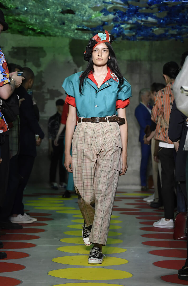 В этом сезоне креативный директор Marni Франческо Рисса решил провести показ в штаб-квартире итальянского бренда в Милане. Рисса украсил потолок над подиумом, подвесив над головами зрителей сеть с собранным в океане красочным мусором. Новое мужское шоу Marni получило название ACT1 и ярко проиллюстрировало главную тему сезона – sustainable fashion.