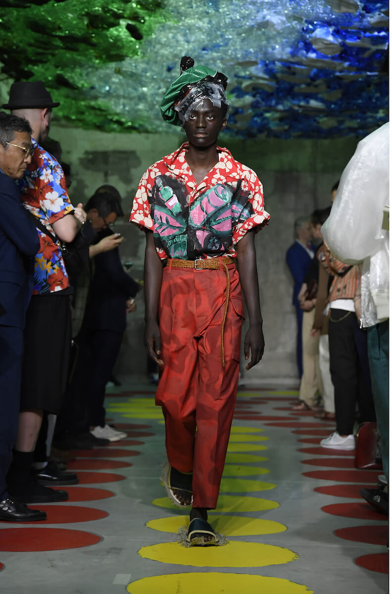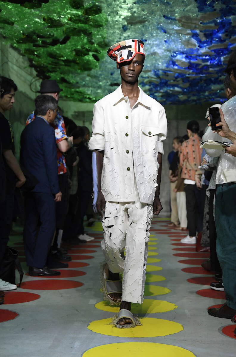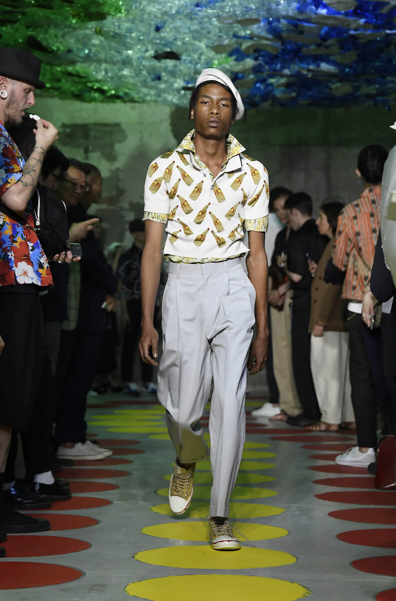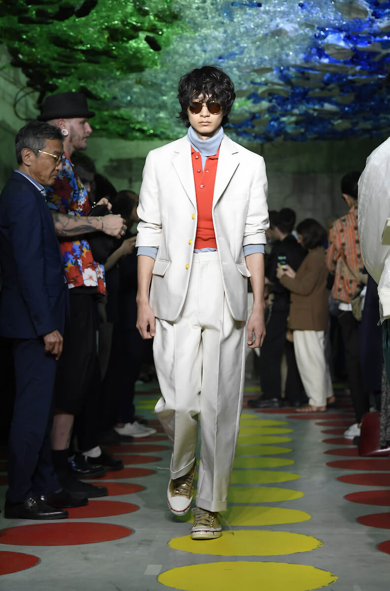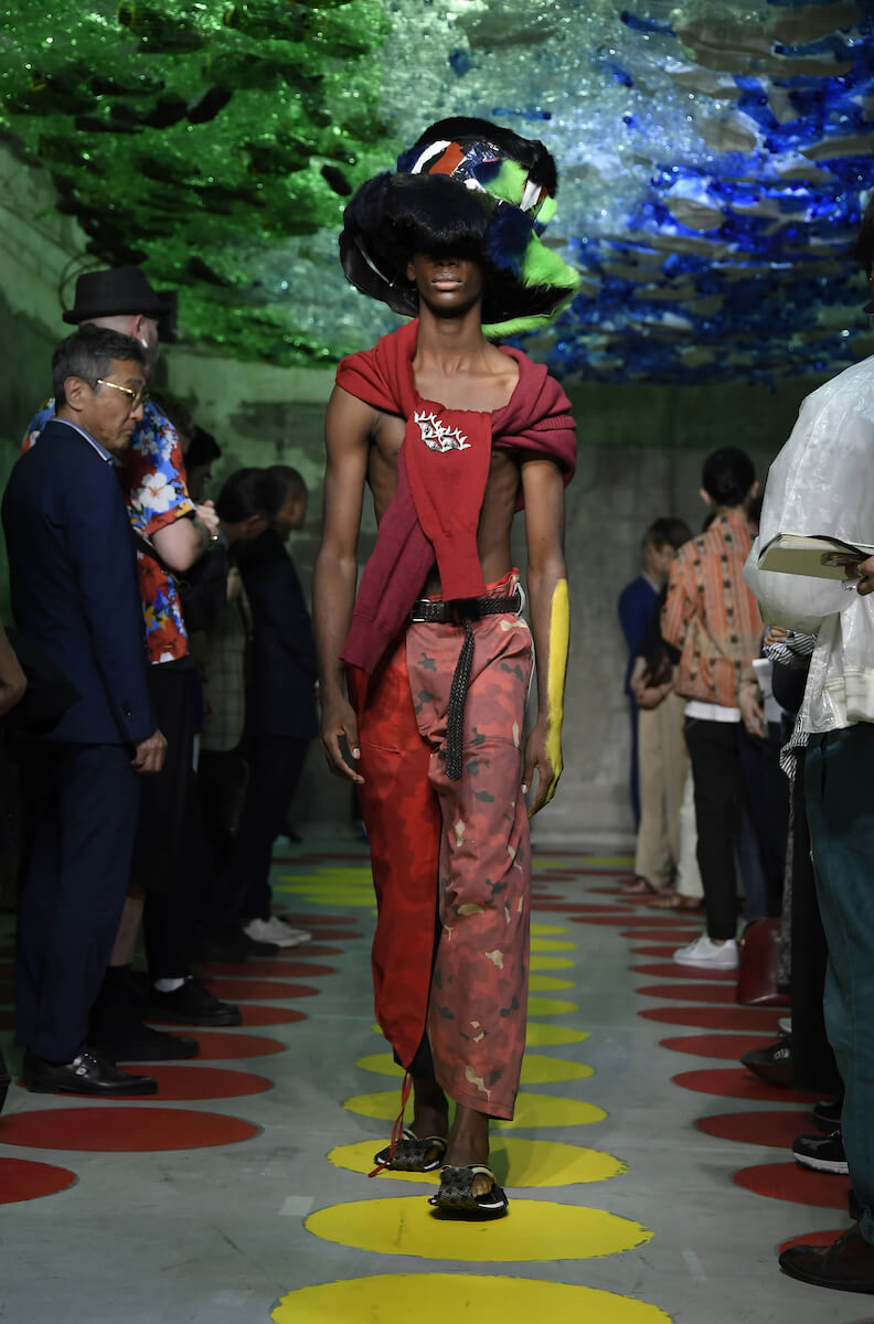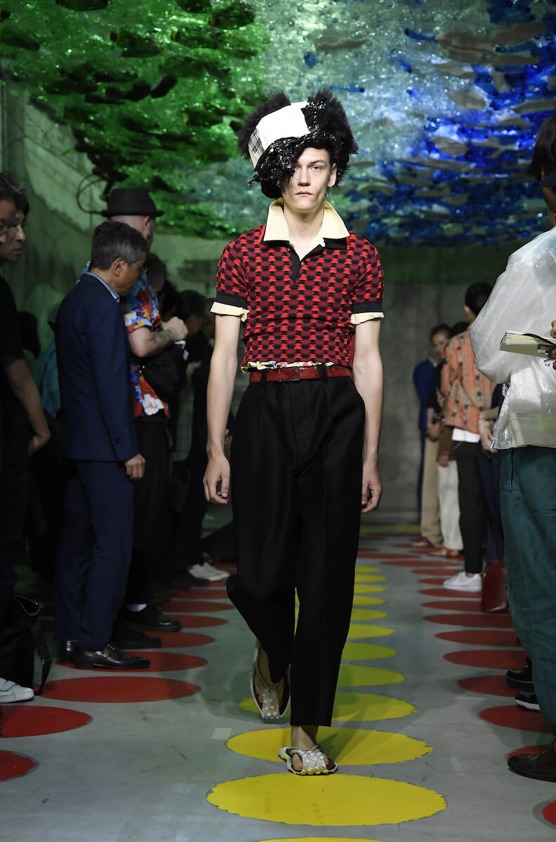 В этом сезоне креативный директор Marni Франческо Рисса решил провести показ в штаб-квартире итальянского бренда в Милане. Рисса украсил потолок над подиумом, подвесив над головами зрителей сеть с собранным в океане красочным мусором. Новое мужское шоу Marni получило название ACT1 и ярко проиллюстрировало главную тему сезона – sustainable fashion.