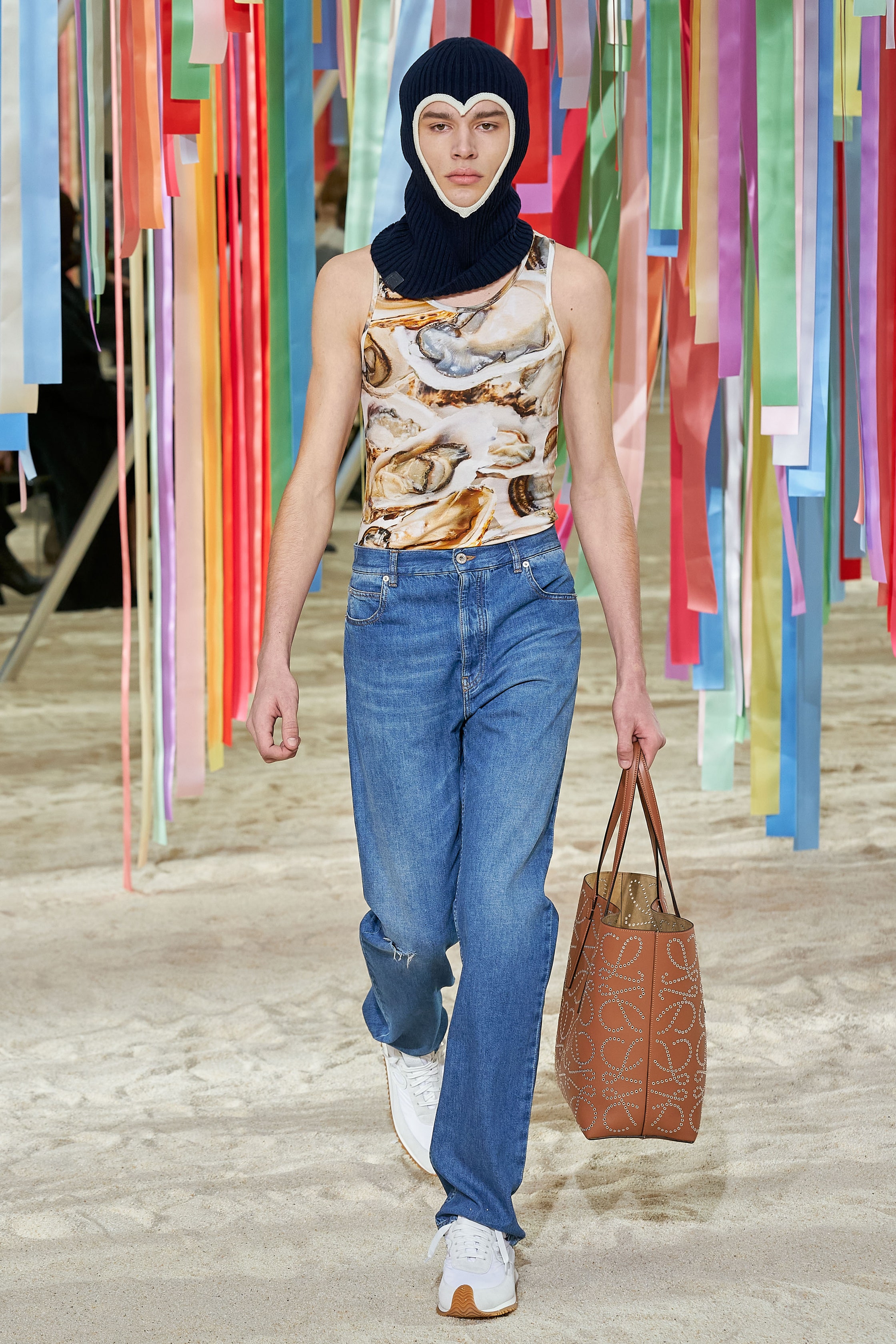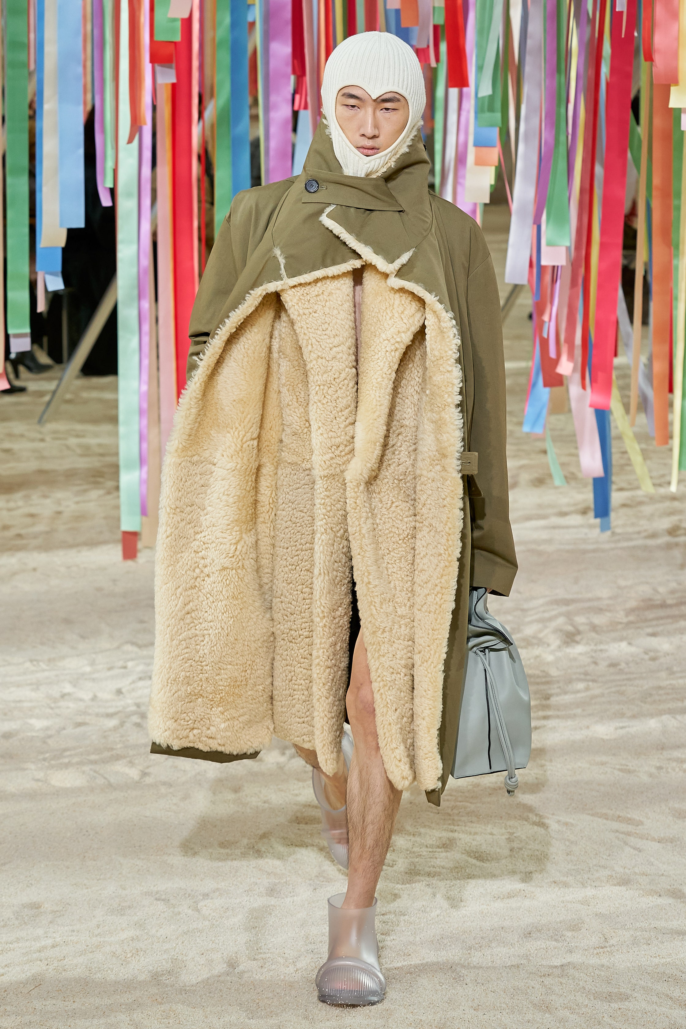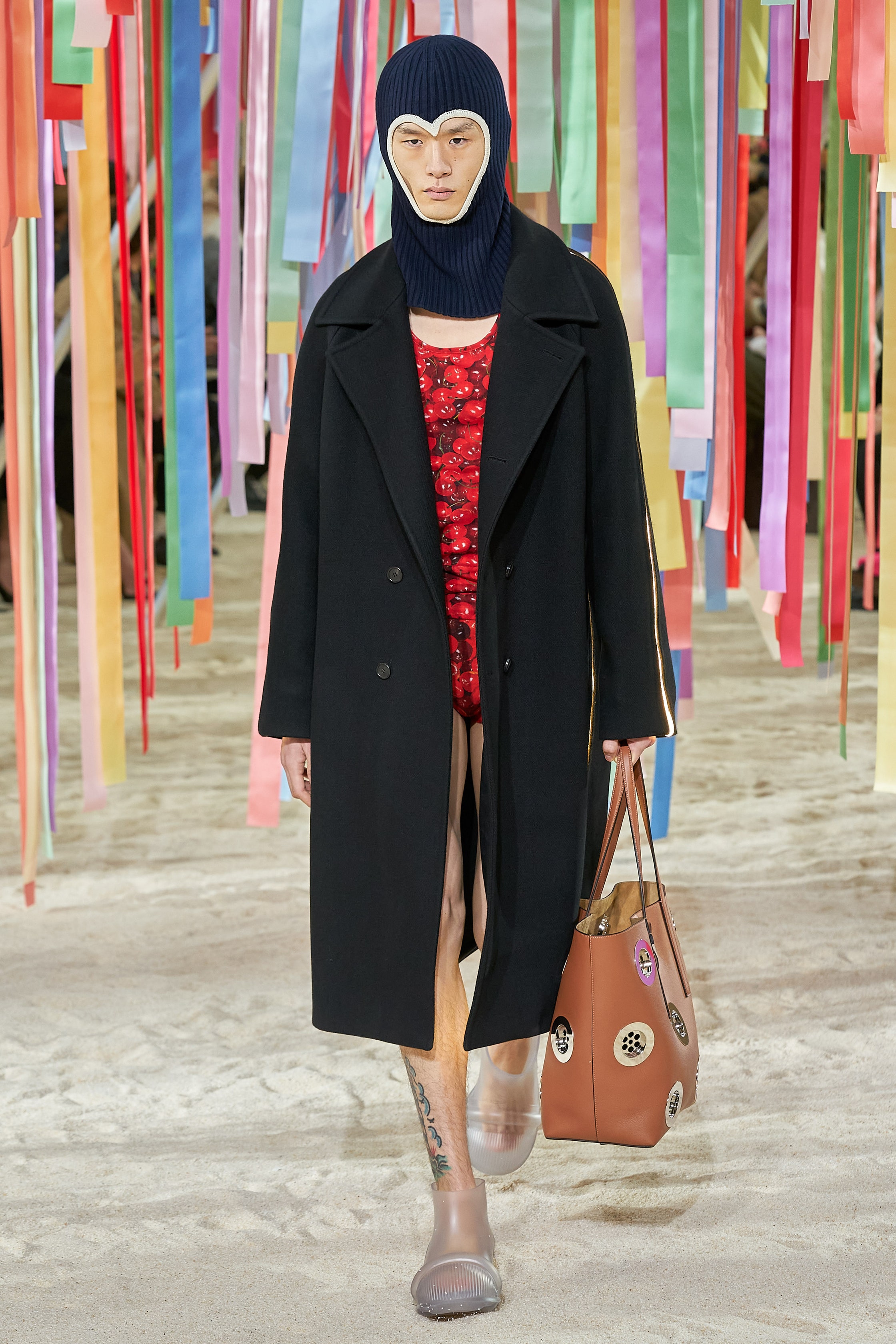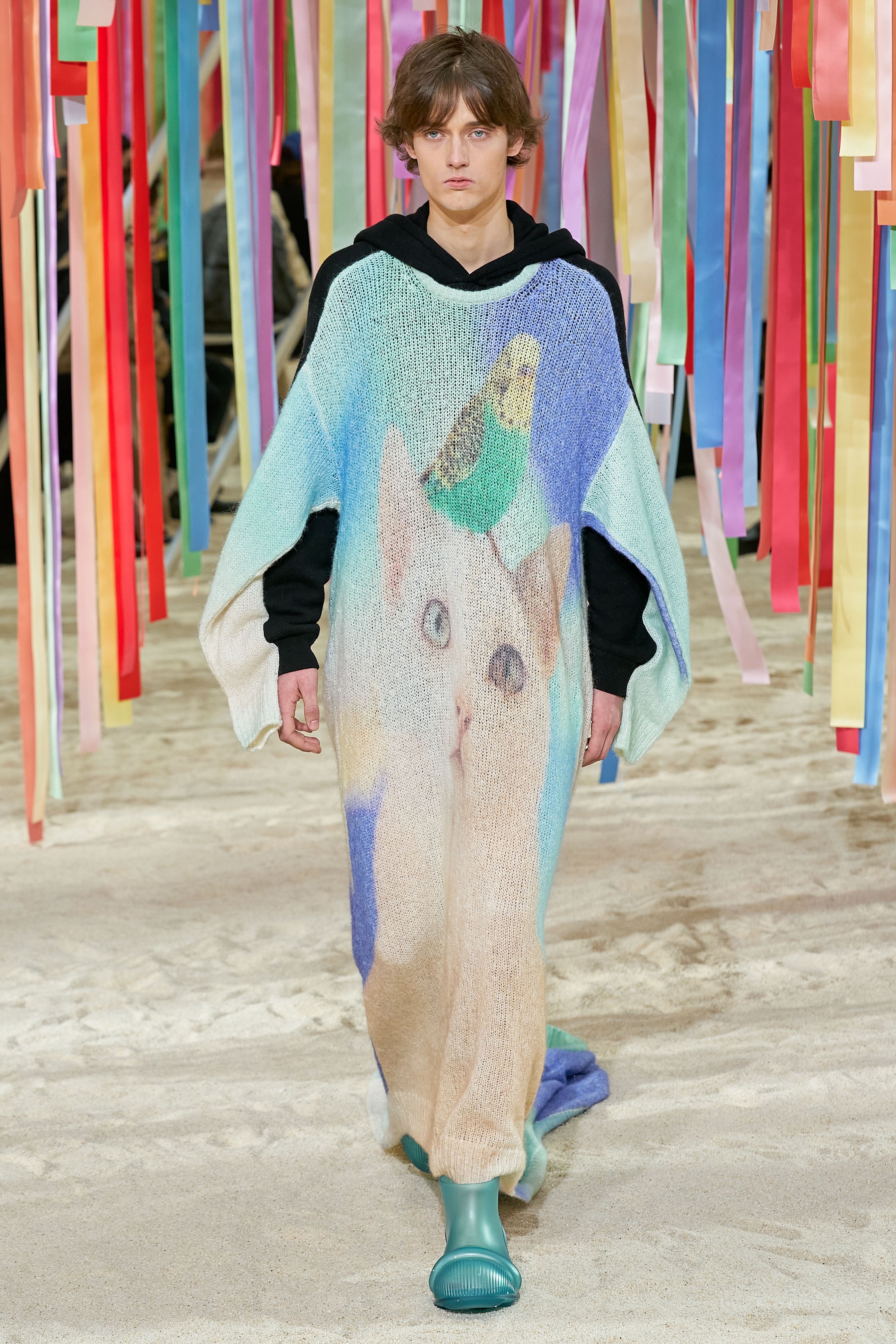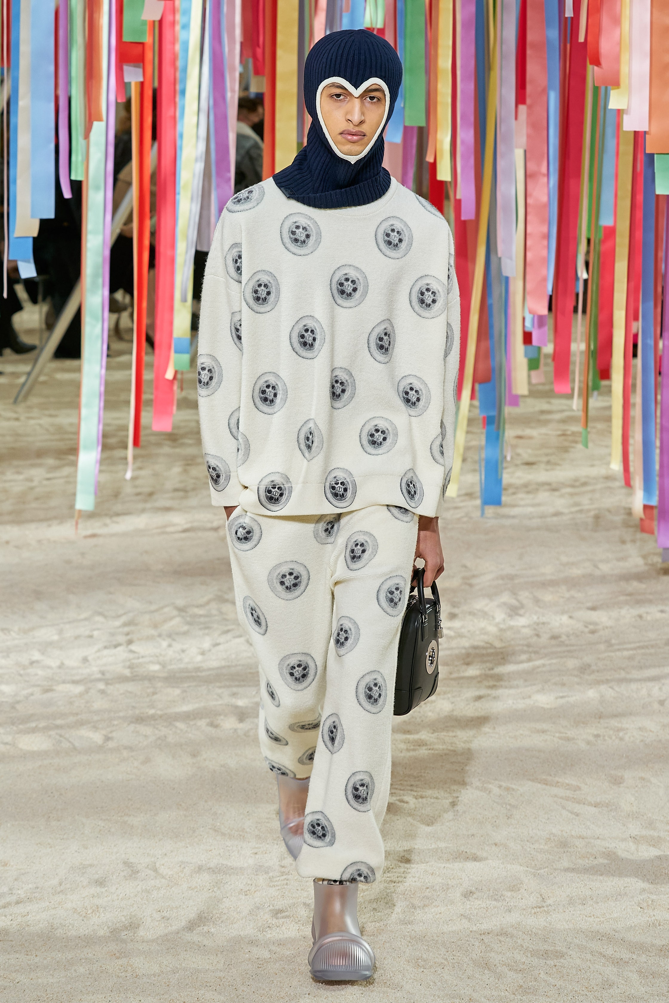 Серьезно ли он это все? Не думаем. В новом сезоне Джонатан Андерсон, тонко чувствуя момент, создал вирусную коллекцию (ее уже запостили все и даже те, кто явно не с первого раза смогут произнести название бренда) с тонким сарказмом на все наши метавселенные, диджитальность и прочие штуки с голубым светом. Дубленки, шорты, дождевики и меховые ботинки: коллекция Loewe получилась внесезонной, как подмечает сам дизайнер, по ту сторону экрана нет времен года. Светодиодная подсветка на одежде — отсылка к нашим лицам под светом смартфона, а принты фигуры и лица на одежде — аватарам, которые заменили нашу реальную внешность. Так Андерсон, который всегда слыл смелым дизайнером, деконструировал все, что попалось под руку, добавив сюрреализма в нашу слишком ровную вселенную. И намекнул: мета уже близко.