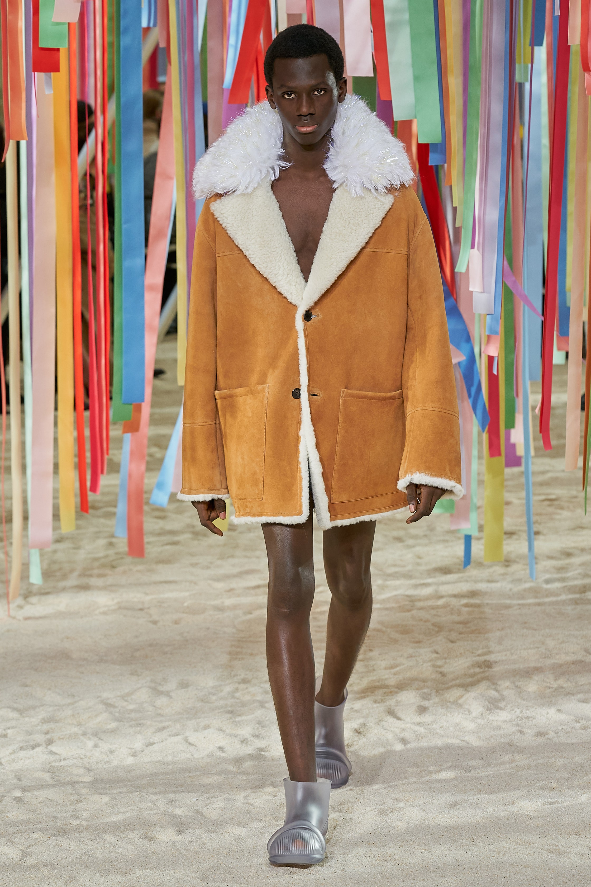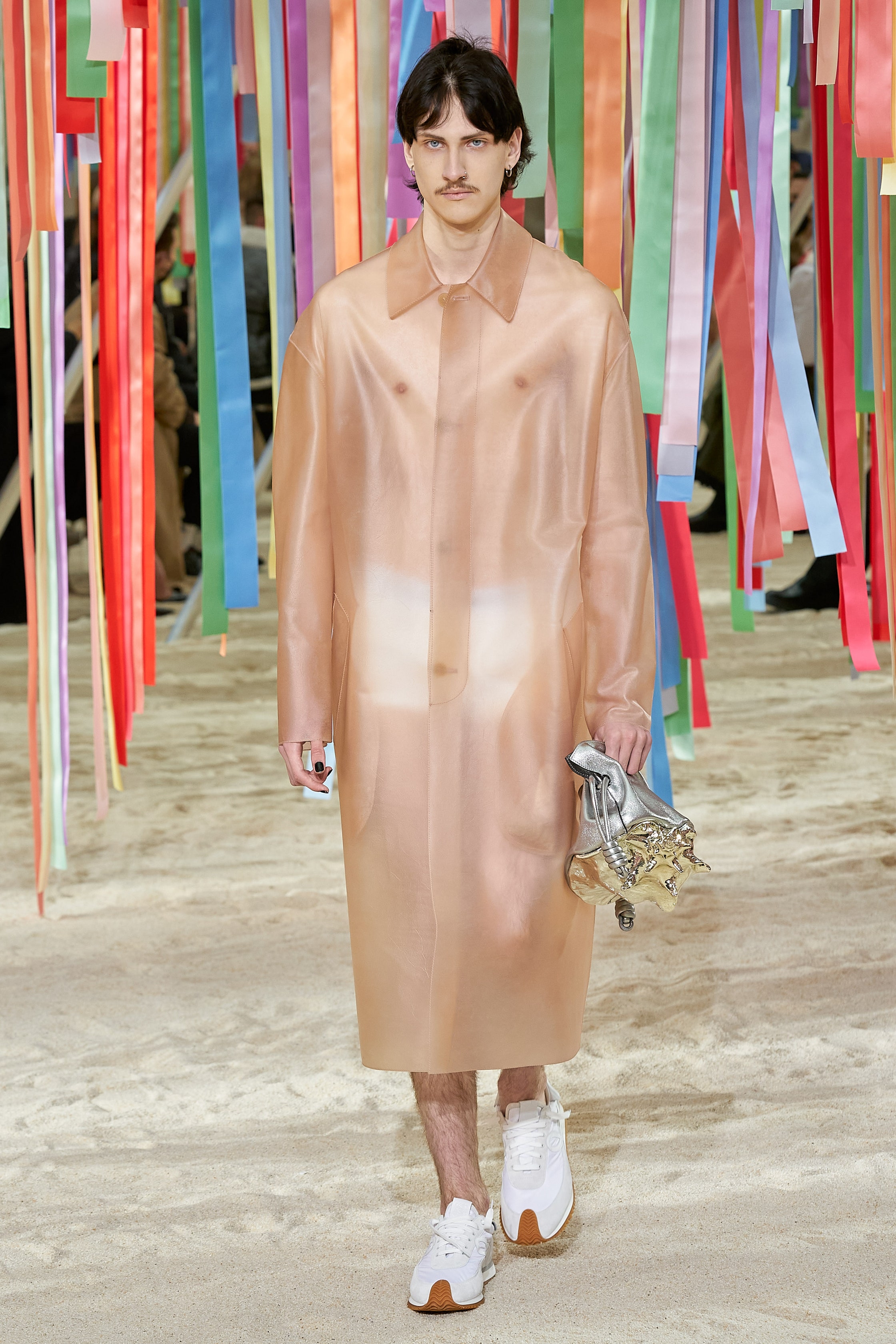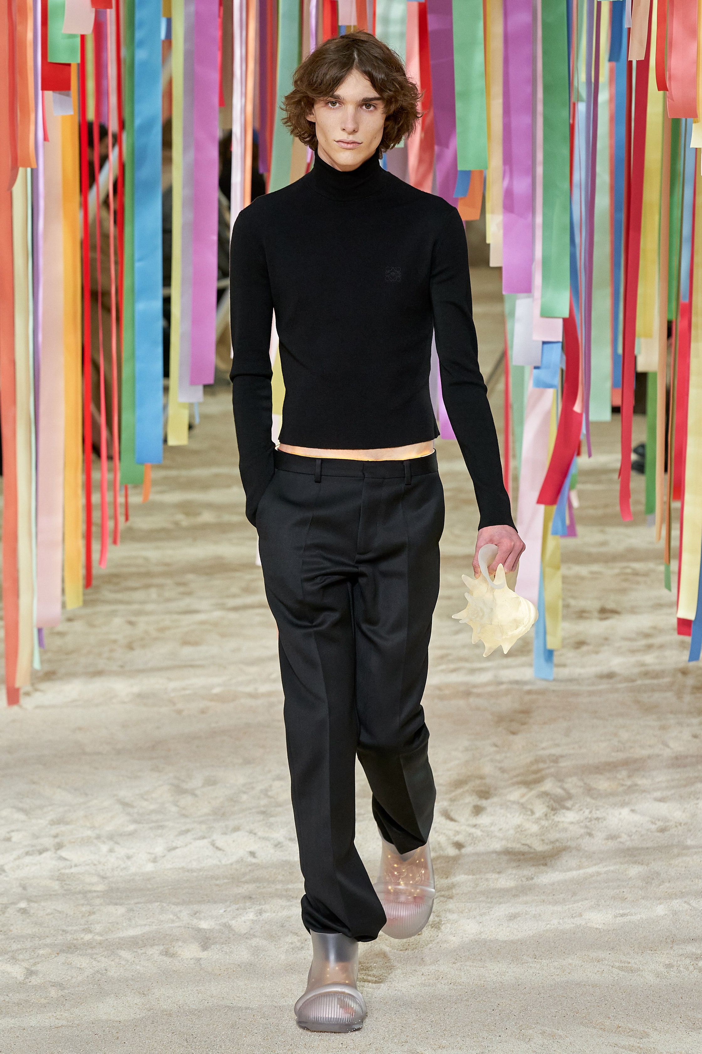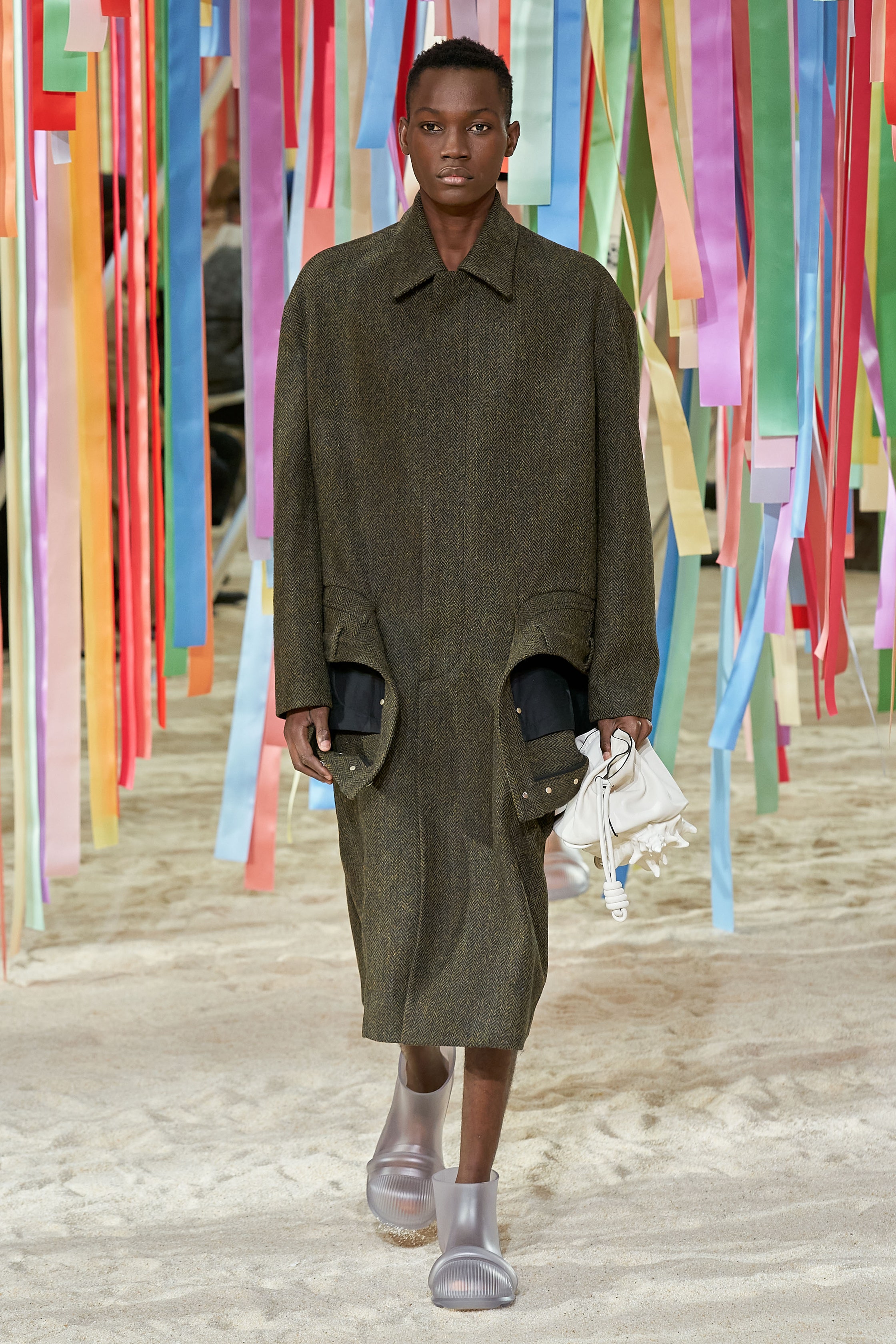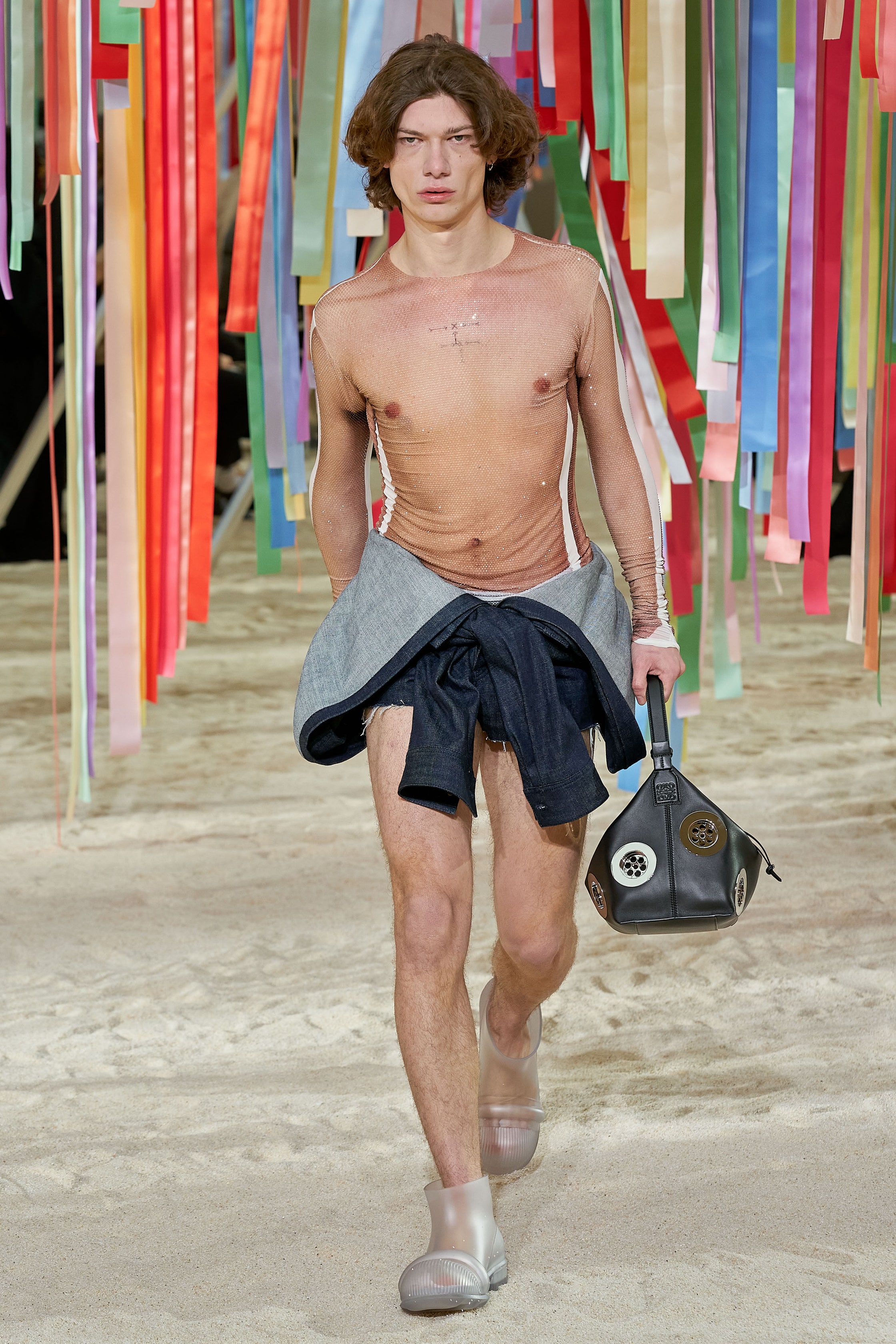 Серьезно ли он это все? Не думаем. В новом сезоне Джонатан Андерсон, тонко чувствуя момент, создал вирусную коллекцию (ее уже запостили все и даже те, кто явно не с первого раза смогут произнести название бренда) с тонким сарказмом на все наши метавселенные, диджитальность и прочие штуки с голубым светом. Дубленки, шорты, дождевики и меховые ботинки: коллекция Loewe получилась внесезонной, как подмечает сам дизайнер, по ту сторону экрана нет времен года. Светодиодная подсветка на одежде — отсылка к нашим лицам под светом смартфона, а принты фигуры и лица на одежде — аватарам, которые заменили нашу реальную внешность. Так Андерсон, который всегда слыл смелым дизайнером, деконструировал все, что попалось под руку, добавив сюрреализма в нашу слишком ровную вселенную. И намекнул: мета уже близко.