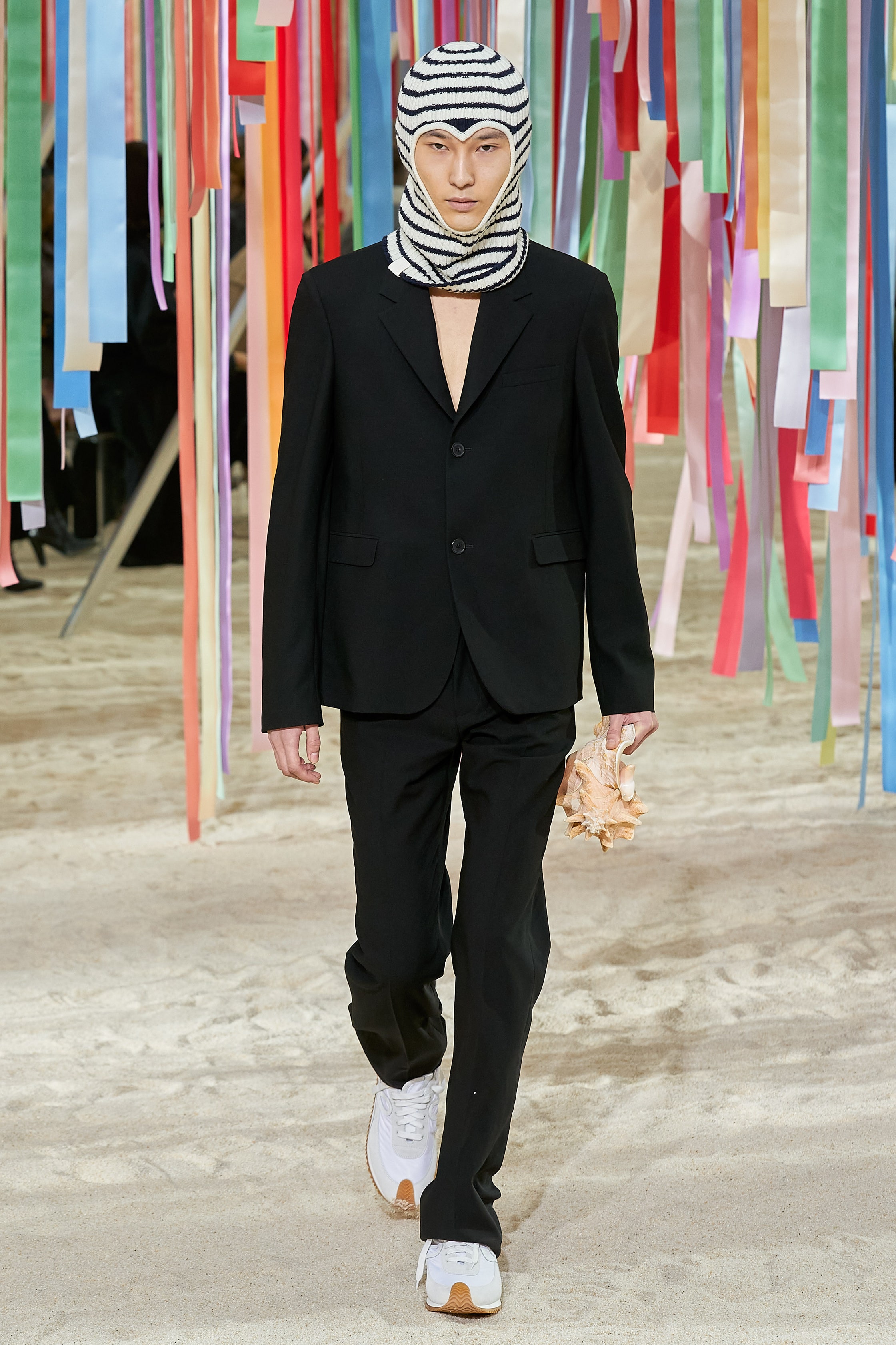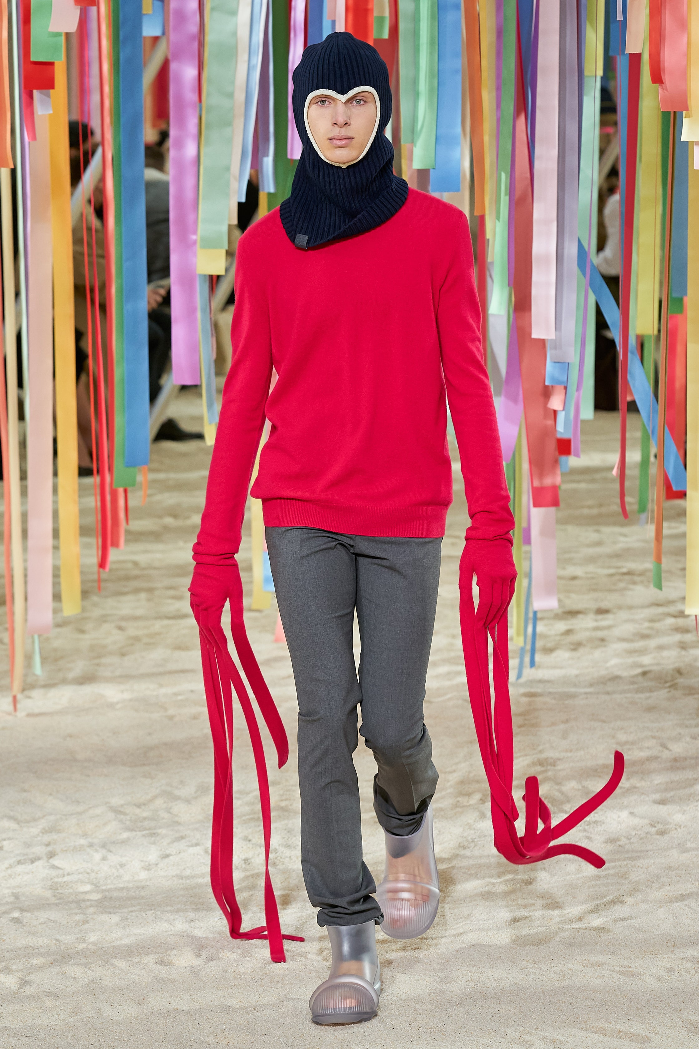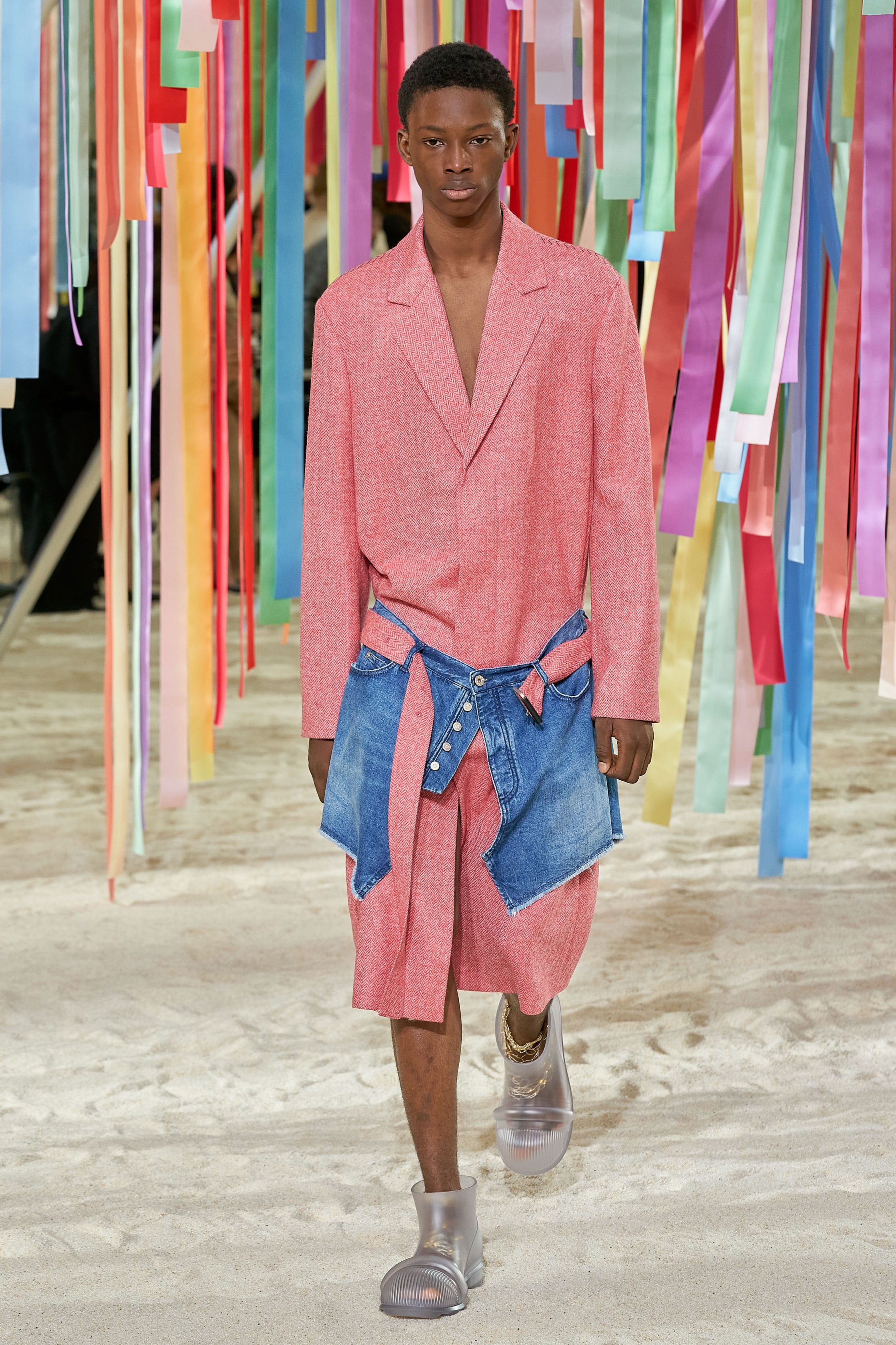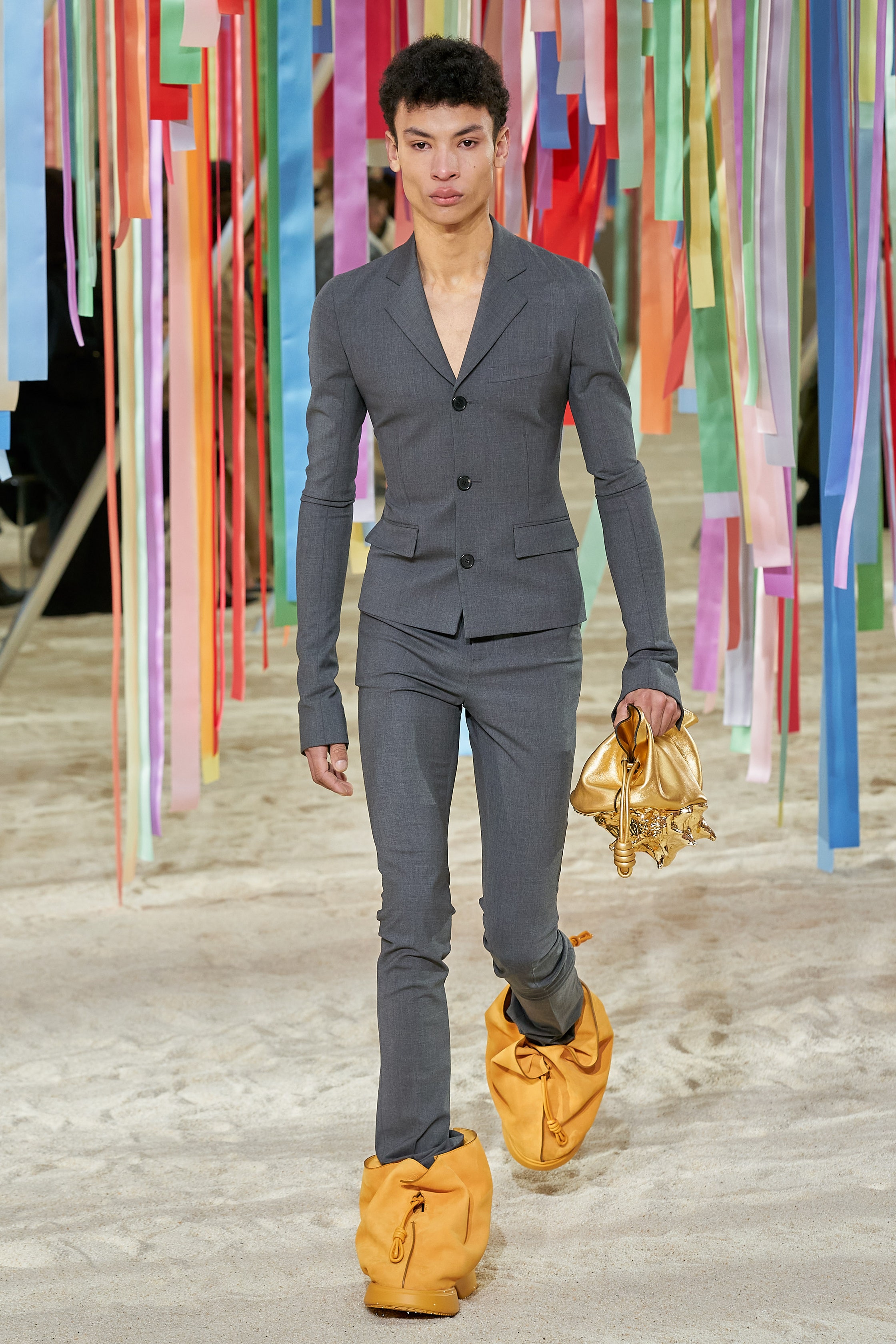 Серьезно ли он это все? Не думаем. В новом сезоне Джонатан Андерсон, тонко чувствуя момент, создал вирусную коллекцию (ее уже запостили все и даже те, кто явно не с первого раза смогут произнести название бренда) с тонким сарказмом на все наши метавселенные, диджитальность и прочие штуки с голубым светом. Дубленки, шорты, дождевики и меховые ботинки: коллекция Loewe получилась внесезонной, как подмечает сам дизайнер, по ту сторону экрана нет времен года. Светодиодная подсветка на одежде — отсылка к нашим лицам под светом смартфона, а принты фигуры и лица на одежде — аватарам, которые заменили нашу реальную внешность. Так Андерсон, который всегда слыл смелым дизайнером, деконструировал все, что попалось под руку, добавив сюрреализма в нашу слишком ровную вселенную. И намекнул: мета уже близко.