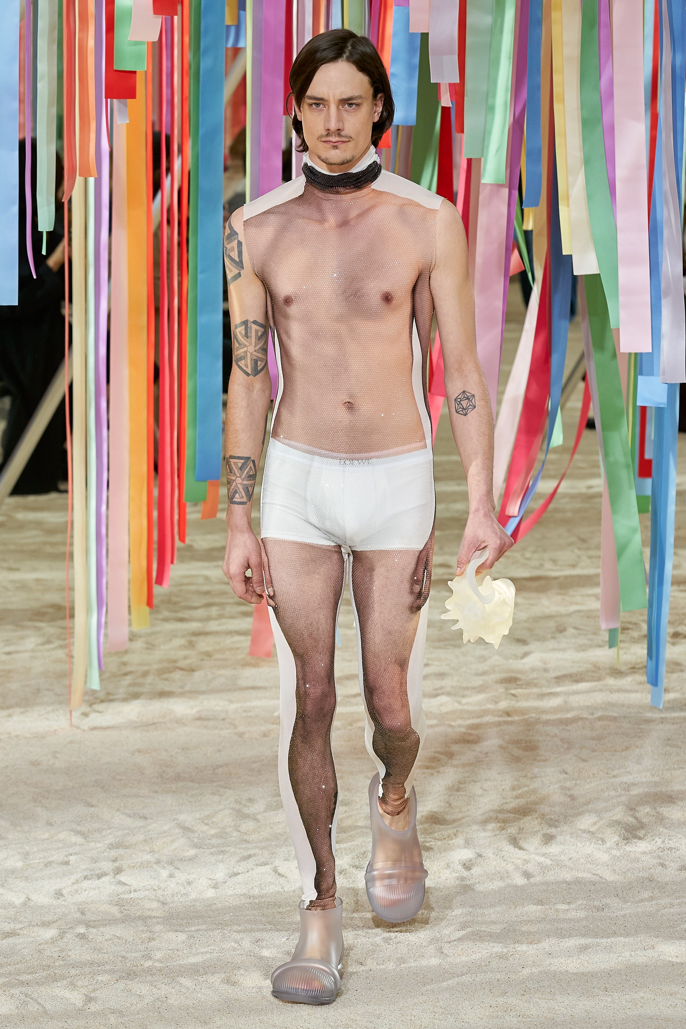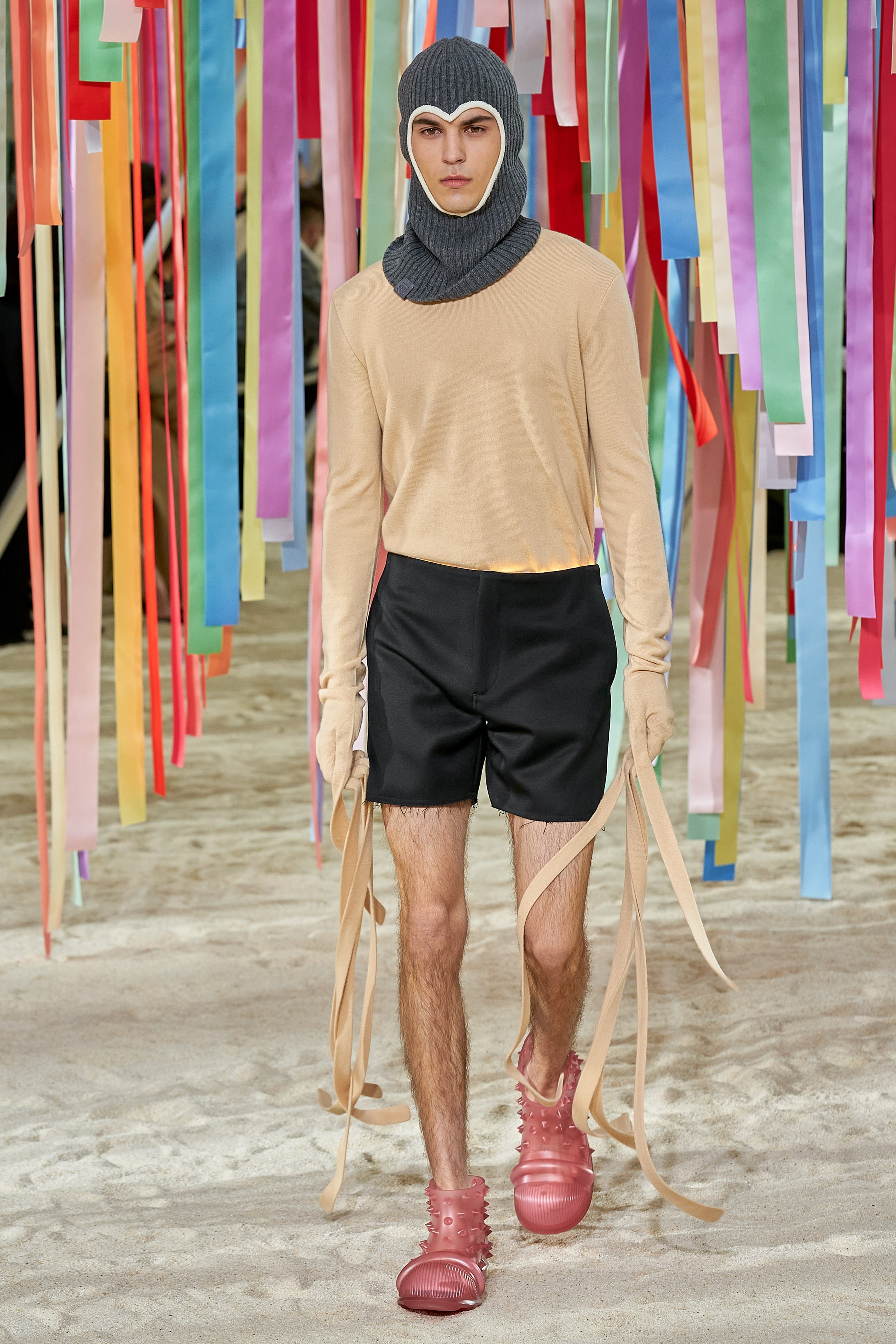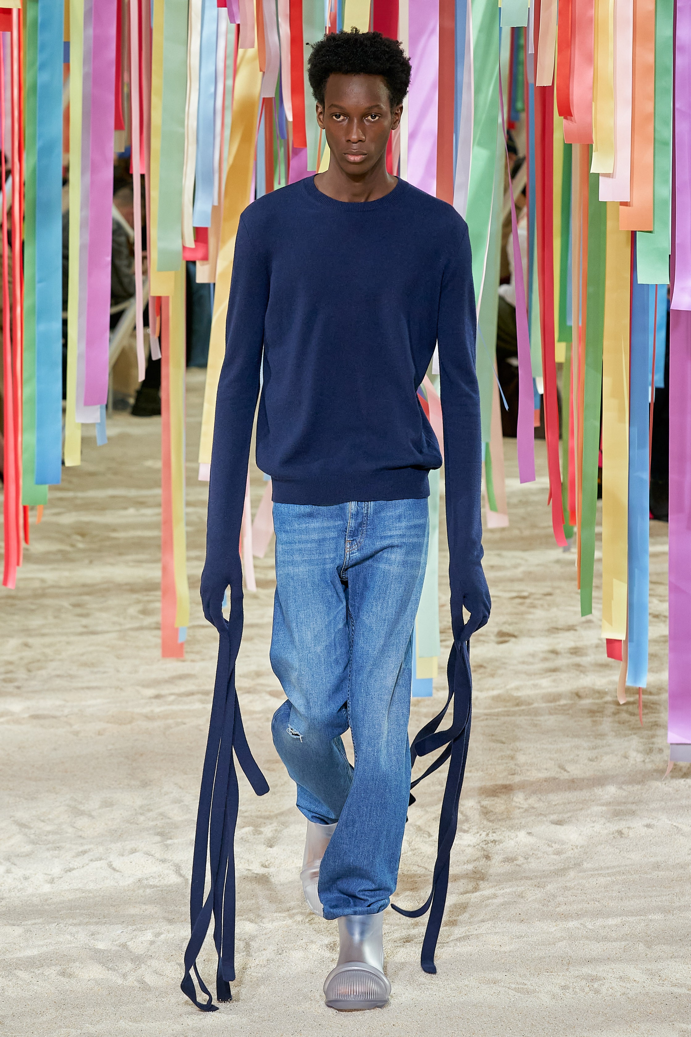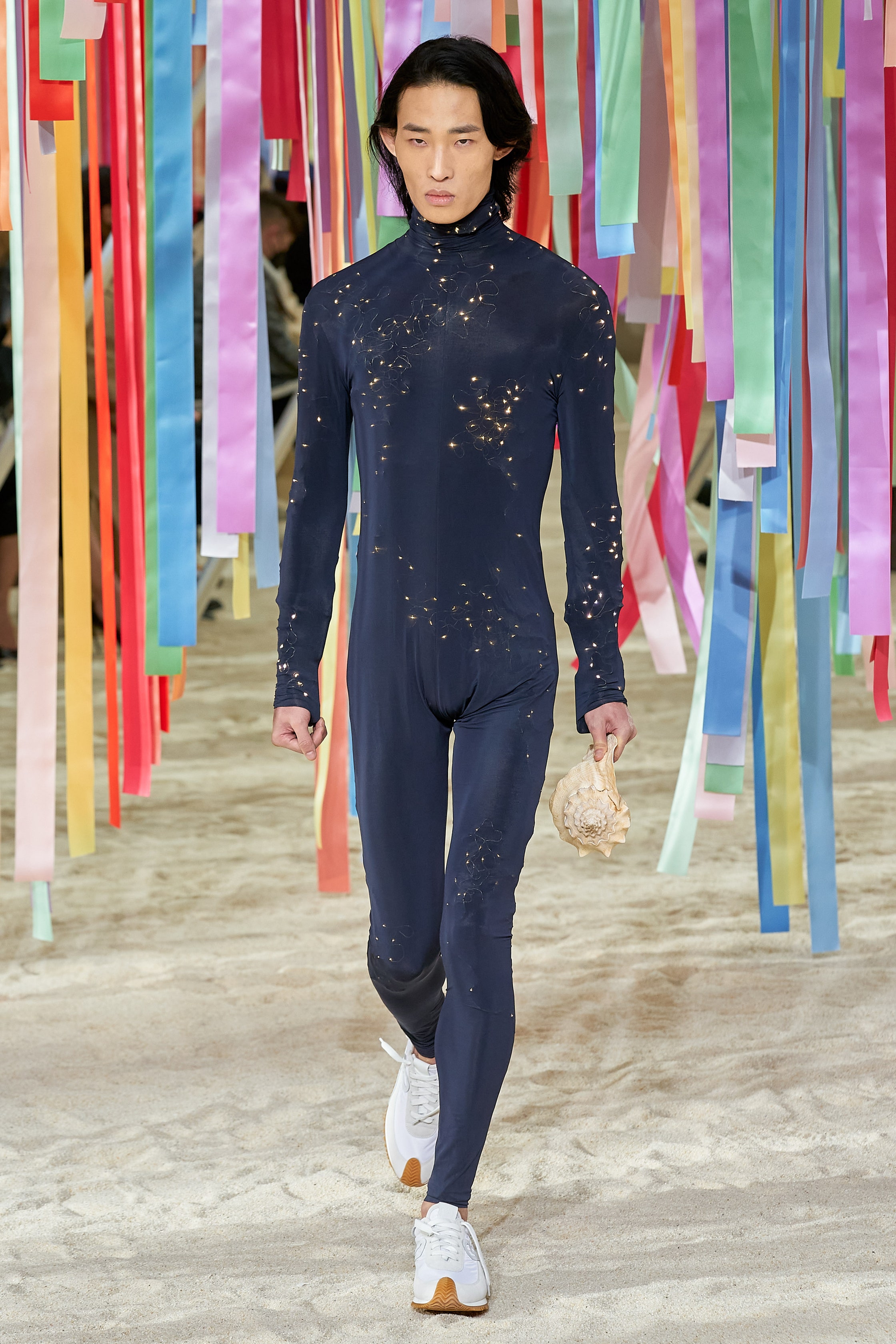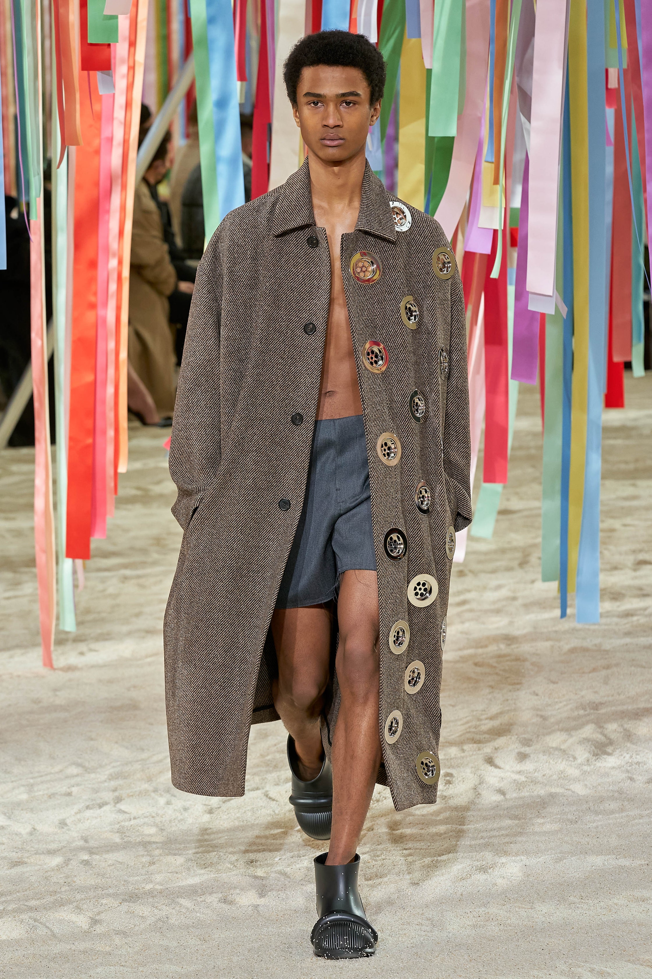 Серьезно ли он это все? Не думаем. В новом сезоне Джонатан Андерсон, тонко чувствуя момент, создал вирусную коллекцию (ее уже запостили все и даже те, кто явно не с первого раза смогут произнести название бренда) с тонким сарказмом на все наши метавселенные, диджитальность и прочие штуки с голубым светом. Дубленки, шорты, дождевики и меховые ботинки: коллекция Loewe получилась внесезонной, как подмечает сам дизайнер, по ту сторону экрана нет времен года. Светодиодная подсветка на одежде — отсылка к нашим лицам под светом смартфона, а принты фигуры и лица на одежде — аватарам, которые заменили нашу реальную внешность. Так Андерсон, который всегда слыл смелым дизайнером, деконструировал все, что попалось под руку, добавив сюрреализма в нашу слишком ровную вселенную. И намекнул: мета уже близко.