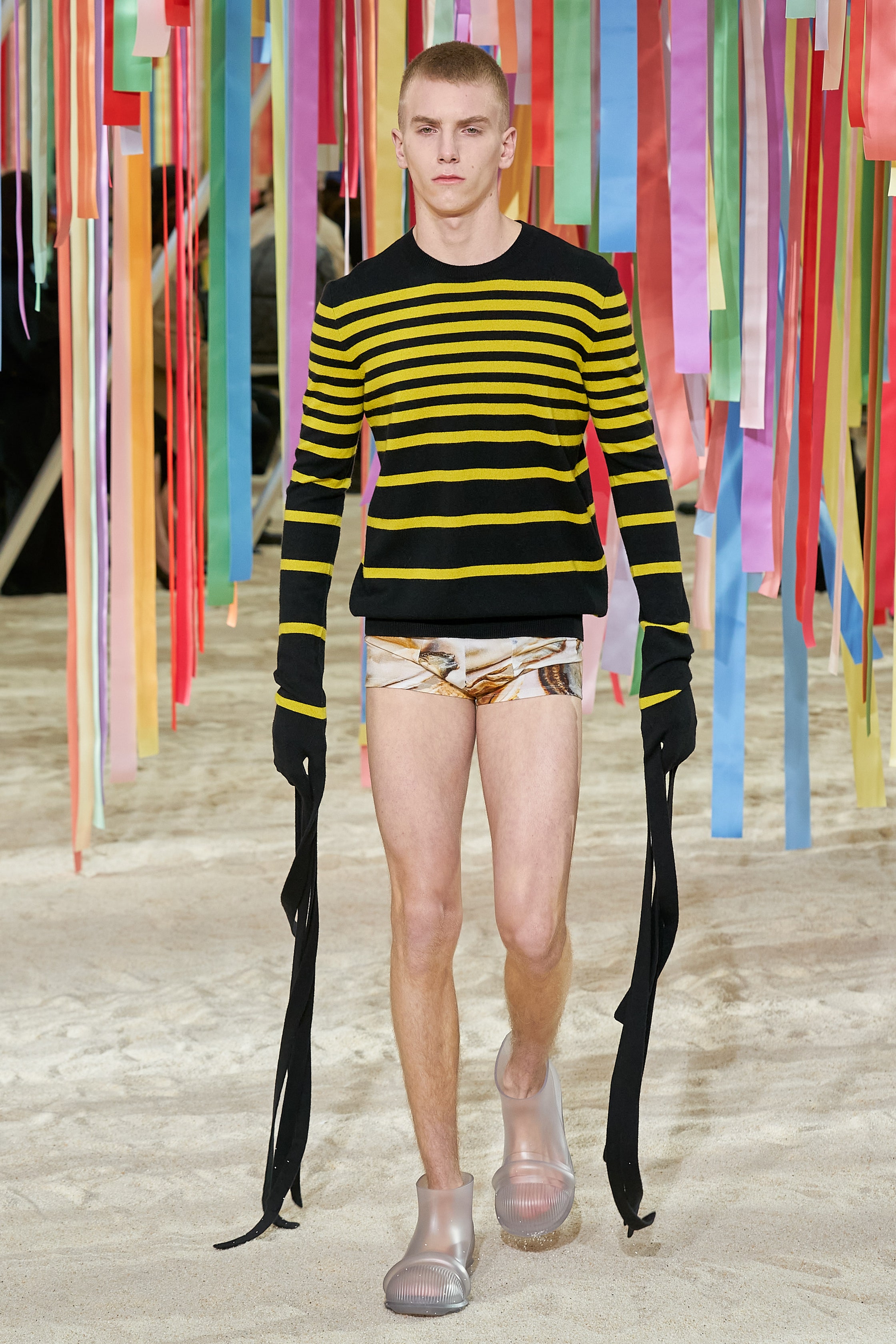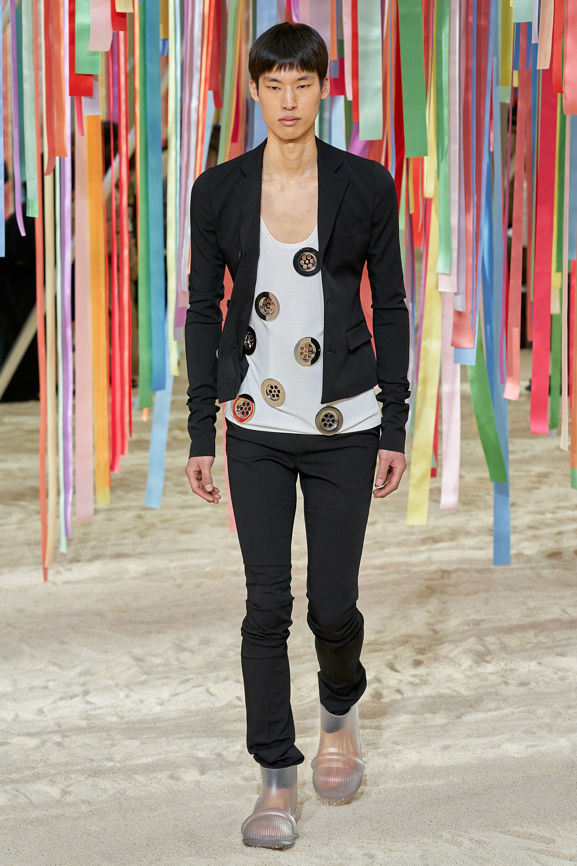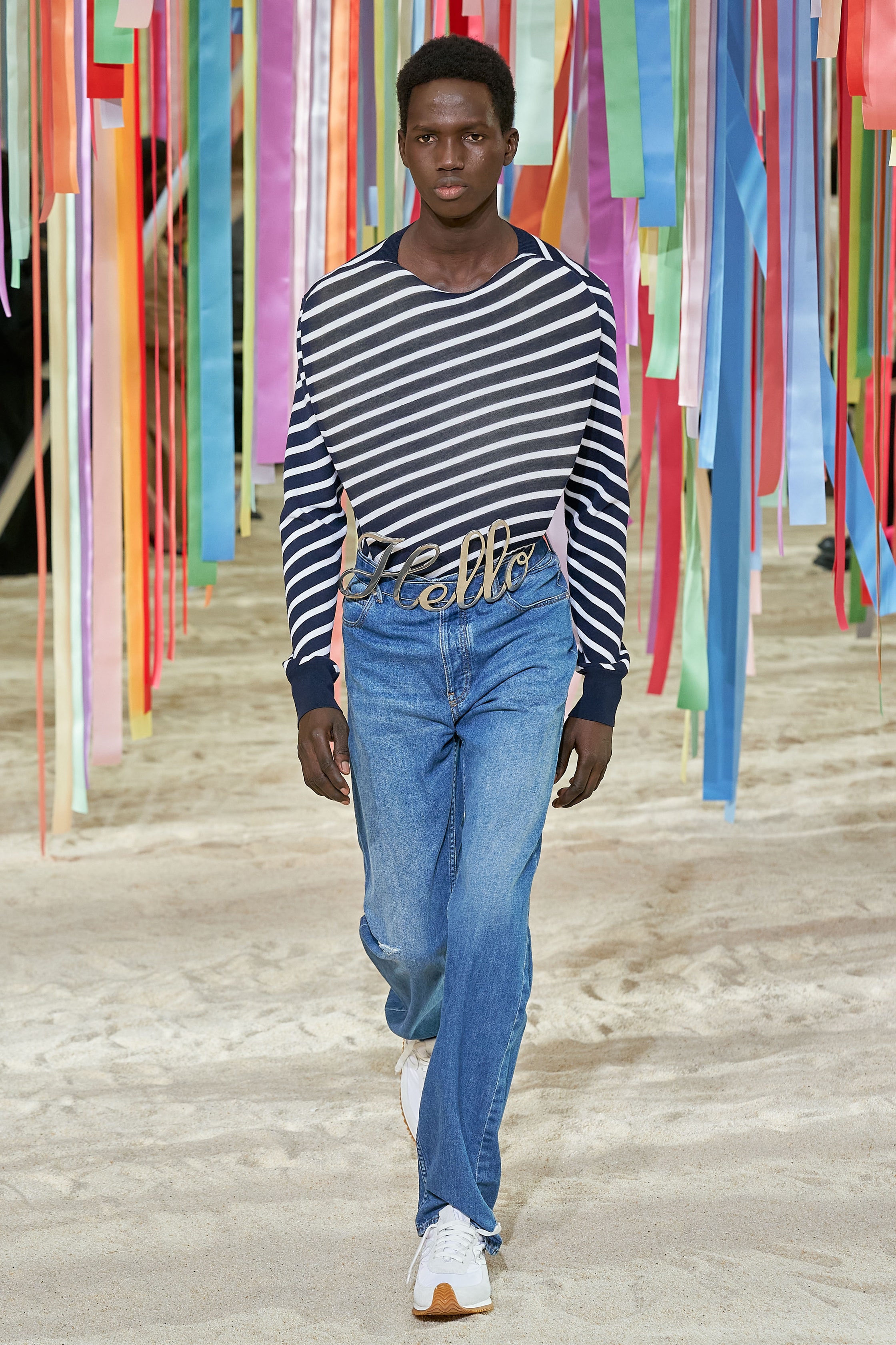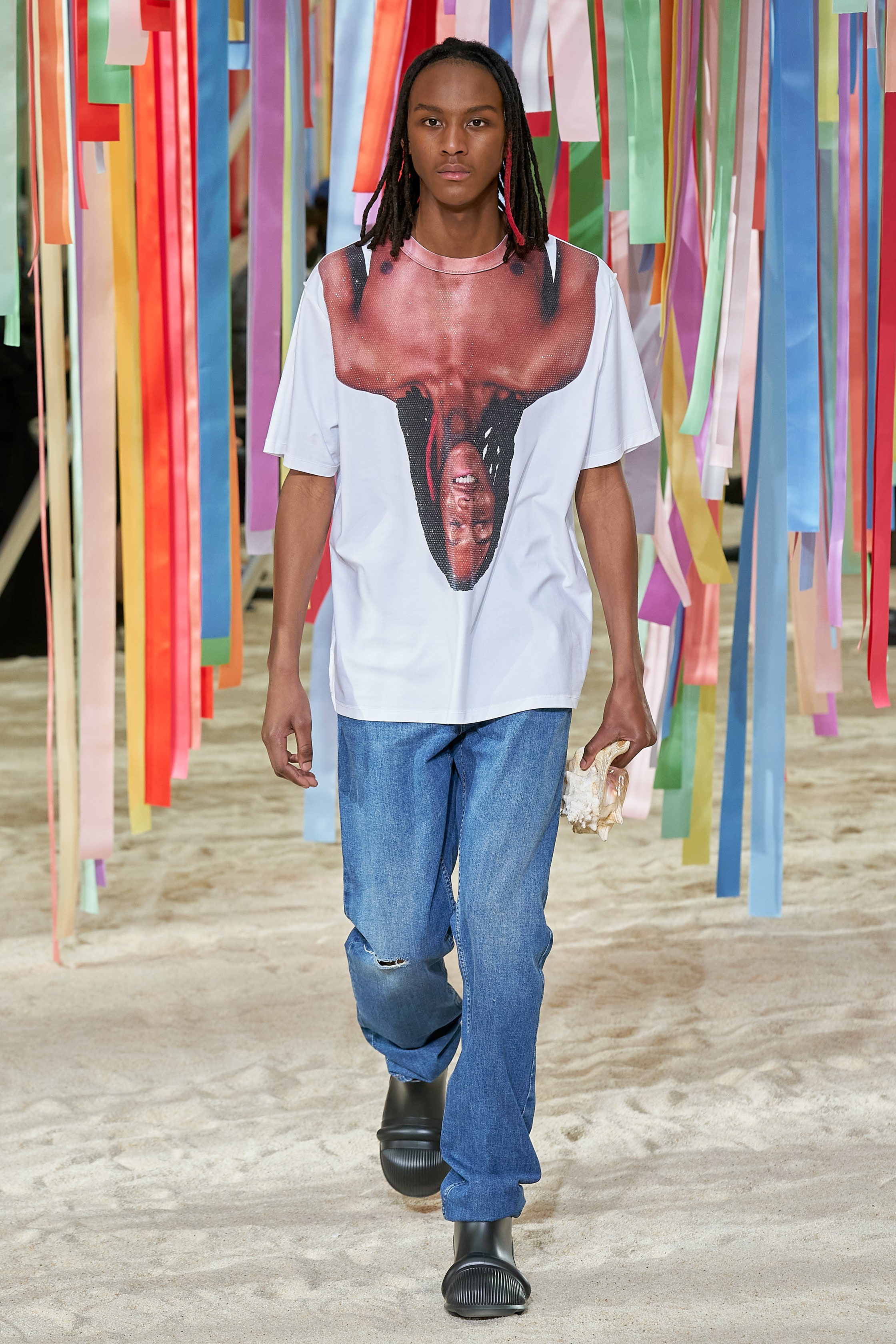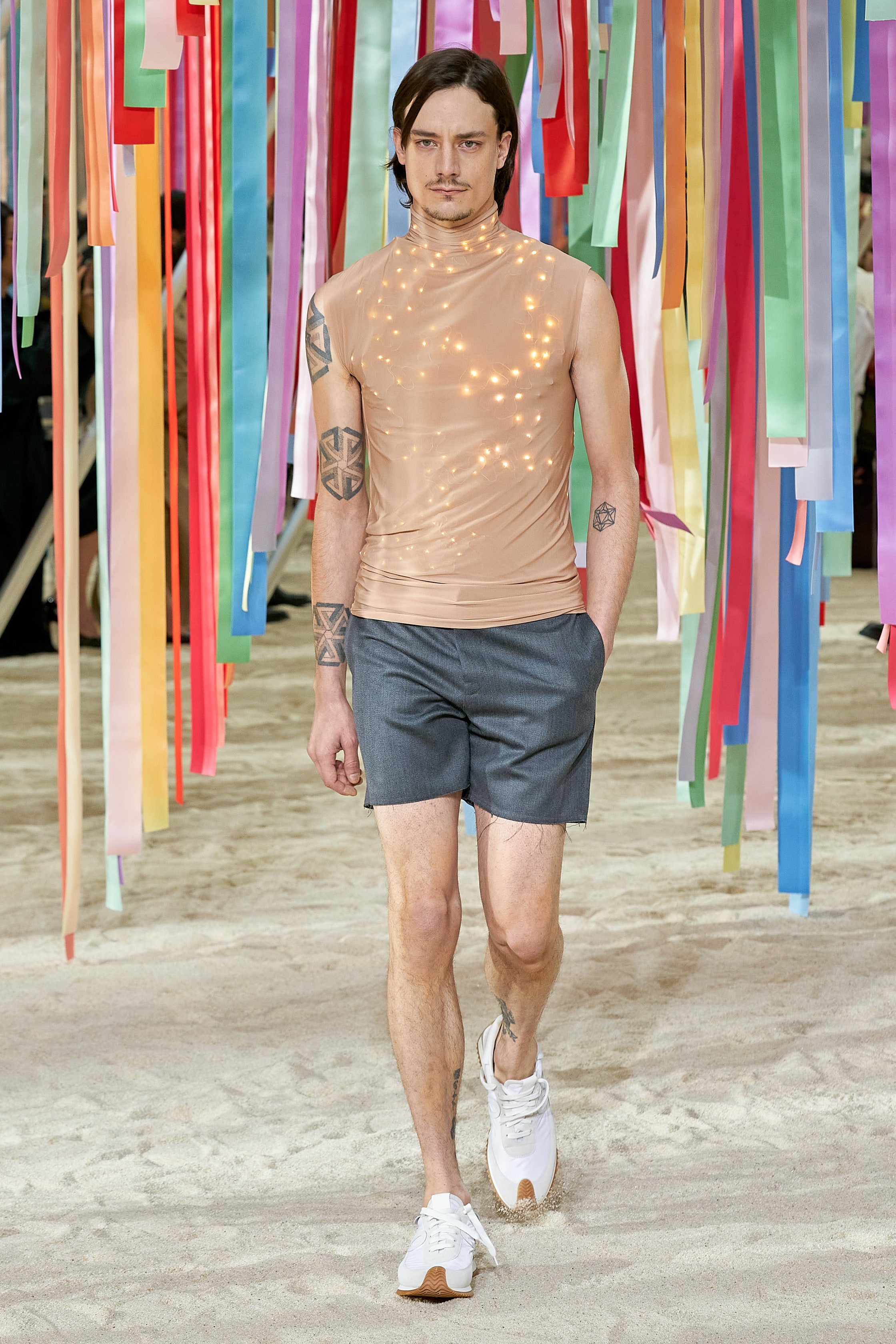 Серьезно ли он это все? Не думаем. В новом сезоне Джонатан Андерсон, тонко чувствуя момент, создал вирусную коллекцию (ее уже запостили все и даже те, кто явно не с первого раза смогут произнести название бренда) с тонким сарказмом на все наши метавселенные, диджитальность и прочие штуки с голубым светом. Дубленки, шорты, дождевики и меховые ботинки: коллекция Loewe получилась внесезонной, как подмечает сам дизайнер, по ту сторону экрана нет времен года. Светодиодная подсветка на одежде — отсылка к нашим лицам под светом смартфона, а принты фигуры и лица на одежде — аватарам, которые заменили нашу реальную внешность. Так Андерсон, который всегда слыл смелым дизайнером, деконструировал все, что попалось под руку, добавив сюрреализма в нашу слишком ровную вселенную. И намекнул: мета уже близко.