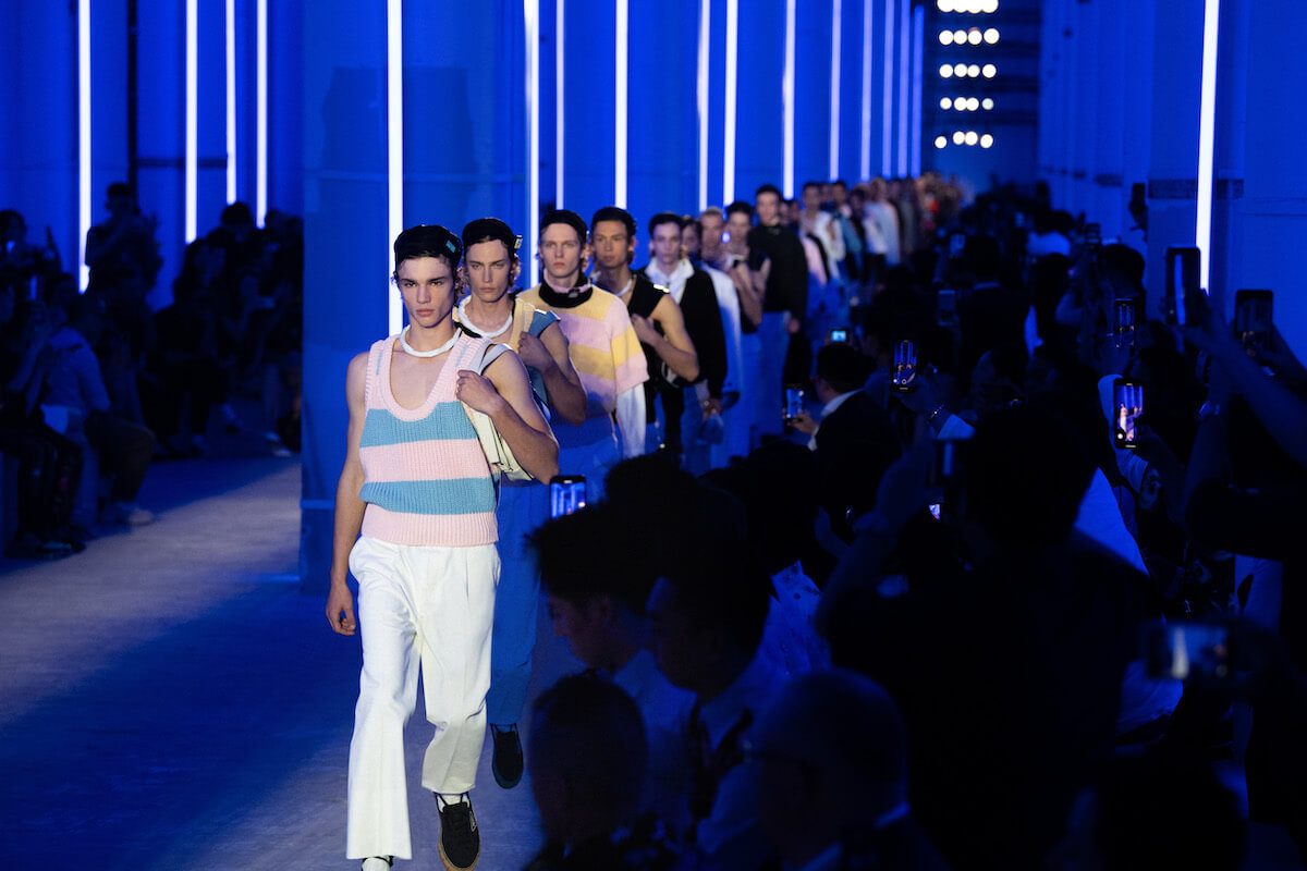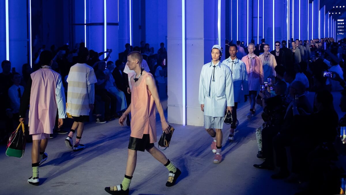 В этом сезоне итальянский бренд Prada решили не дожидаться начала Недели моды в Милане и провели показ новой весенне-летней коллекции в Шанхае. И вновь обратились к благодатной теме 80-х. Британская музыка новой волны, вездесущий неон и принты. Кроме этого Миучча показала любовь к рабочему стилю, добавив в коллекцию широкие накладные карманы, просторный крой и поясные сумки.