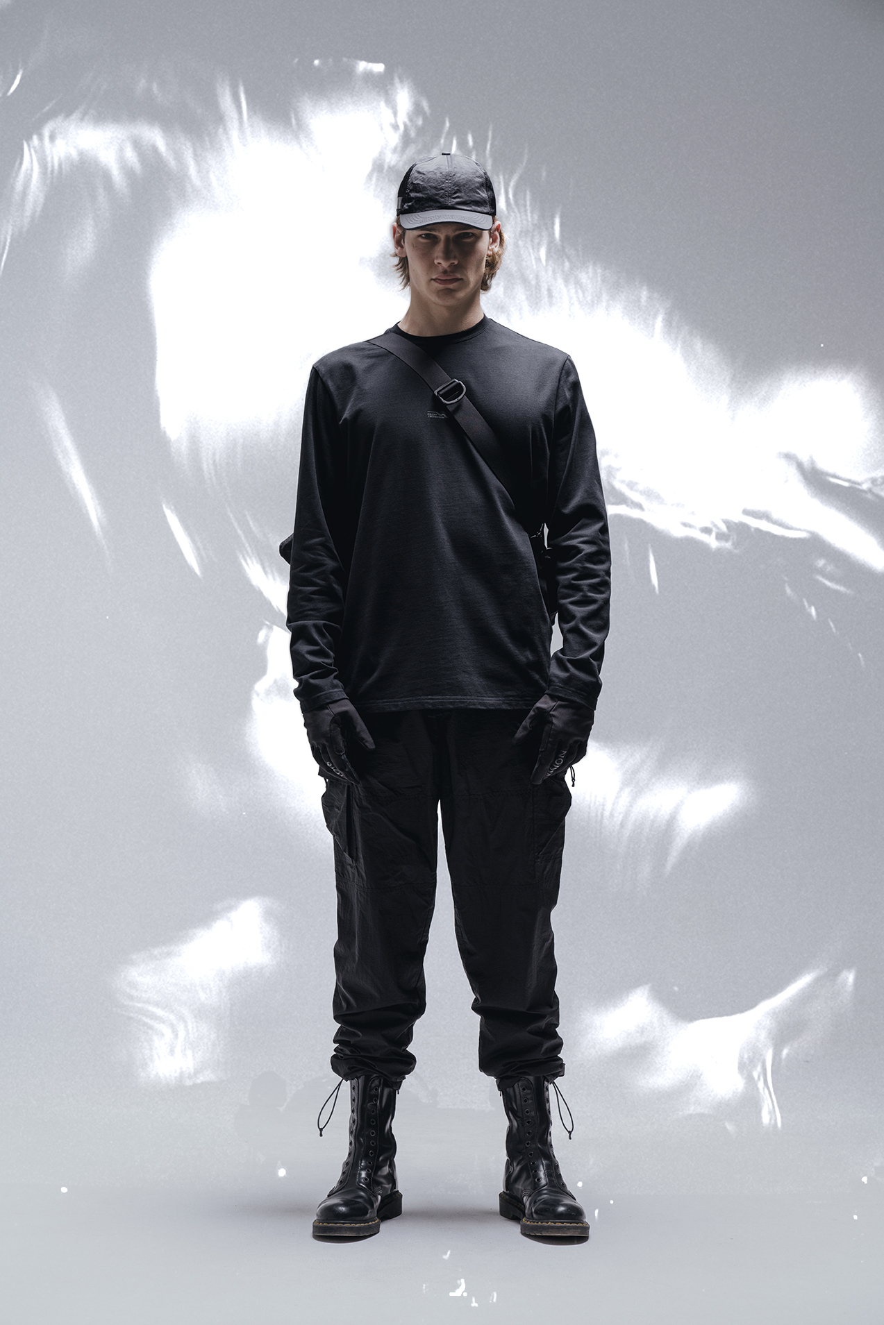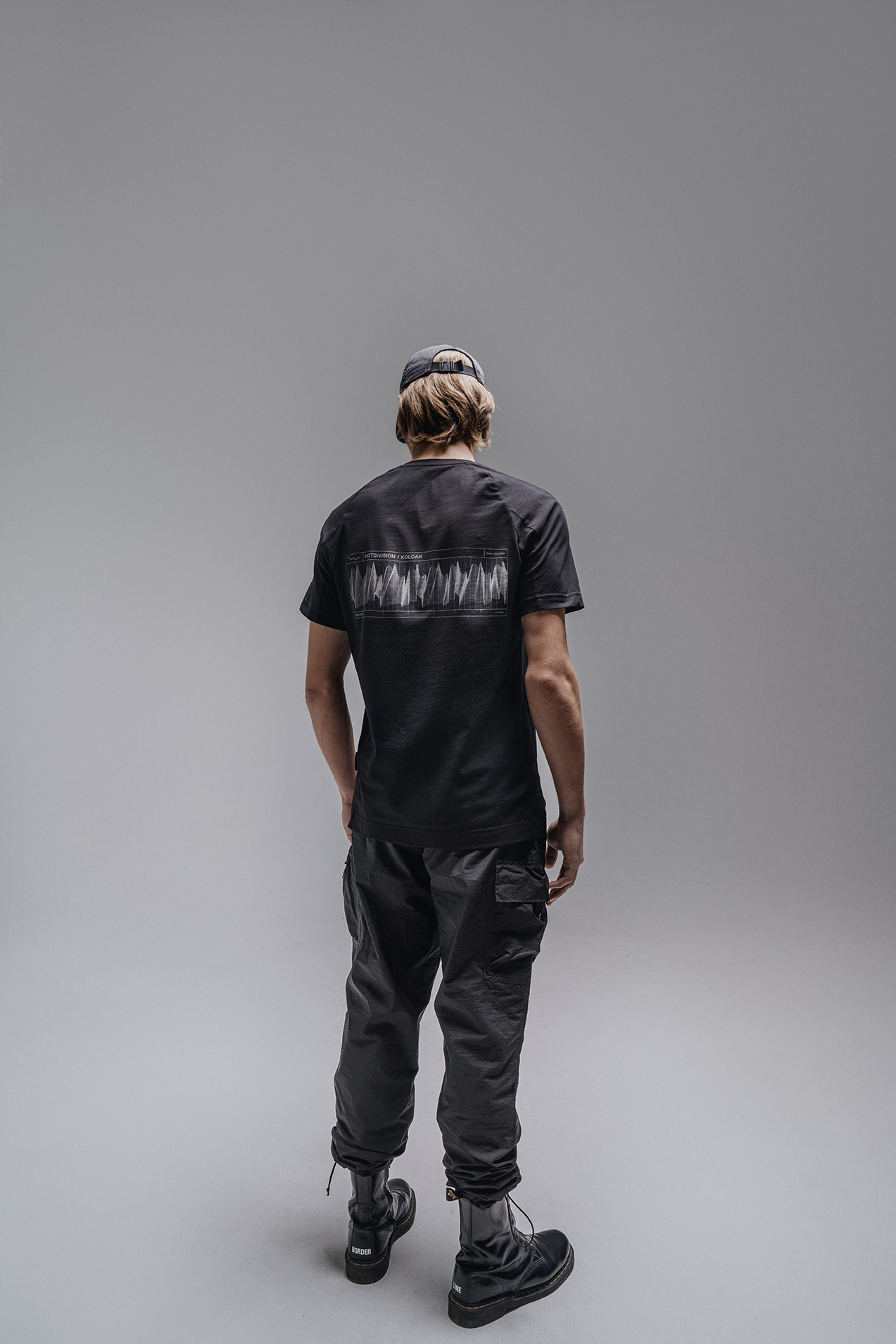 Коллекция Waveform — это простые вещи, без сложных решений из легких, нейлоновых тканей и 100% хлопка. В нее вошли брюки, футболка, лонгслив, сумка, кепка, панама. Все вещи из коллабораций выполнены в черном цвете, черный цвет — символ пространства в космосе. Принты в коллекции также были разработаны вместе с Koloah. Их основой стала звуковая волна баса, ставшая символом всего дропа.