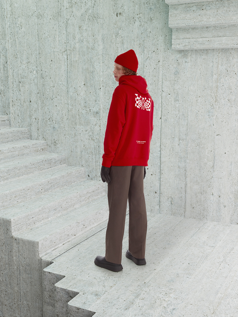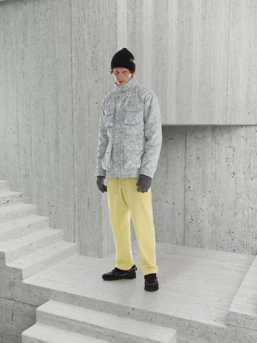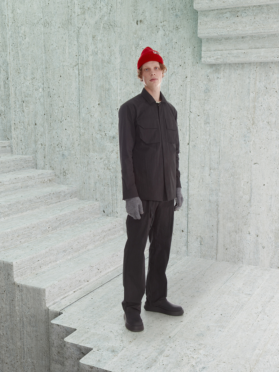 В новый дроп Act.1 вошли тяжелые худи из плотного хлопка со скрытым карманом для гаджетов и других мелочей. Переработанная в эстетике бренда классическая полевая куртка M65 со скрытым капюшоном, изготовленная из прочной черной и камуфляжной ткани с рипстопном. А также костюм, состоящий из оверсайза свитшота со скрытым передним карманом и новой итерацией брюк линейки Angle из мягкого хлопка. Расширяя ассортимент, Act.1 уже второй раз сотрудничает с VNU Wear.