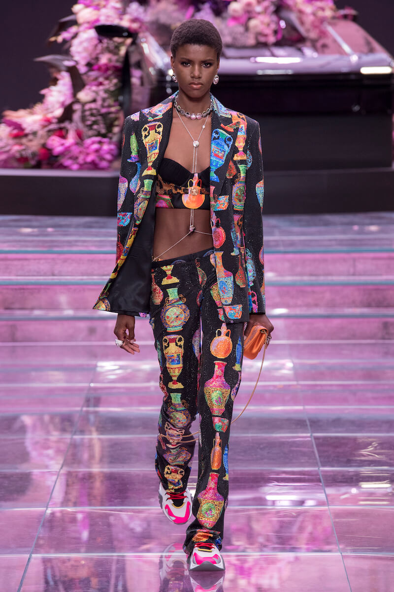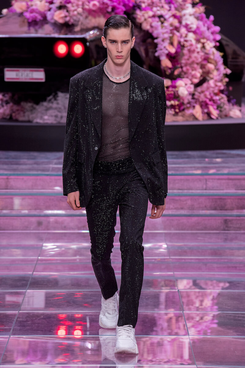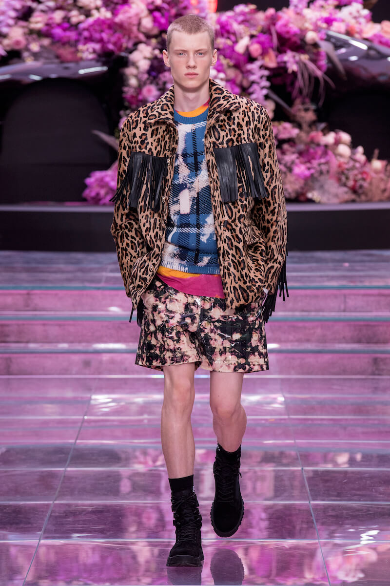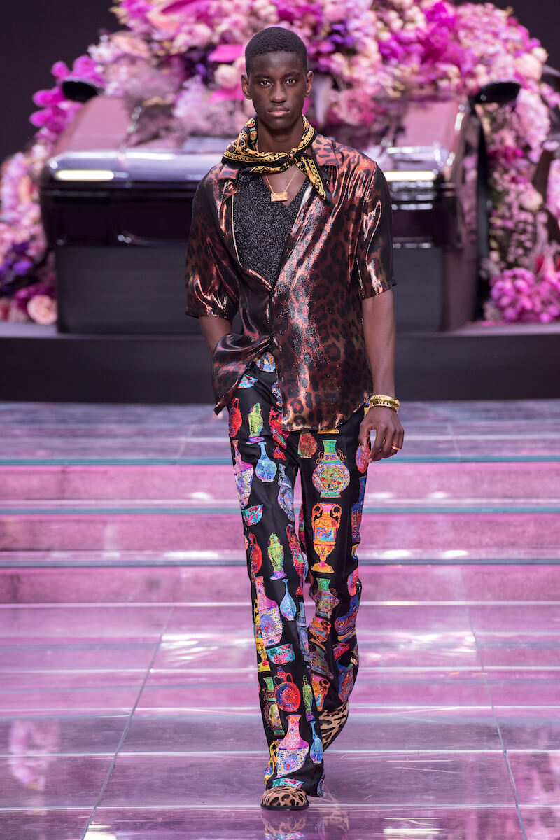 По сложившейся семейной традиции Донателла Версаче вновь представила новую мужскую коллекцию Versace во внутреннем дворе главного офиса бренда на Via Gesù. В этом сезоне Донателла увлеклась стилем и творчеством вокалиста The Prodigy Кита Флинта, который покончил с собой в марте 2019 года. Модели с разноцветными волосами, обилие кожаных вещей, анималистичные принты и треки The Prodigy символизируют для синьоры Версаче путь взросления мужчины и достижения настоящей мужественности (даже если этот путь иногда приводит к весьма трагическому пункту назначения).